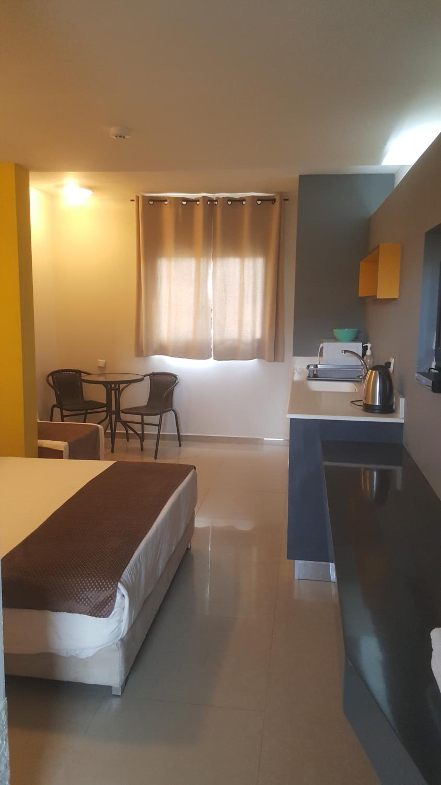 Classic Inn in Eilat offers modern, air-conditioned studios with a flat-screen TV and an open-plan layout. Each studio includes a dining area with a microwave, sink, and fridge, perfect for a comfortable stay.