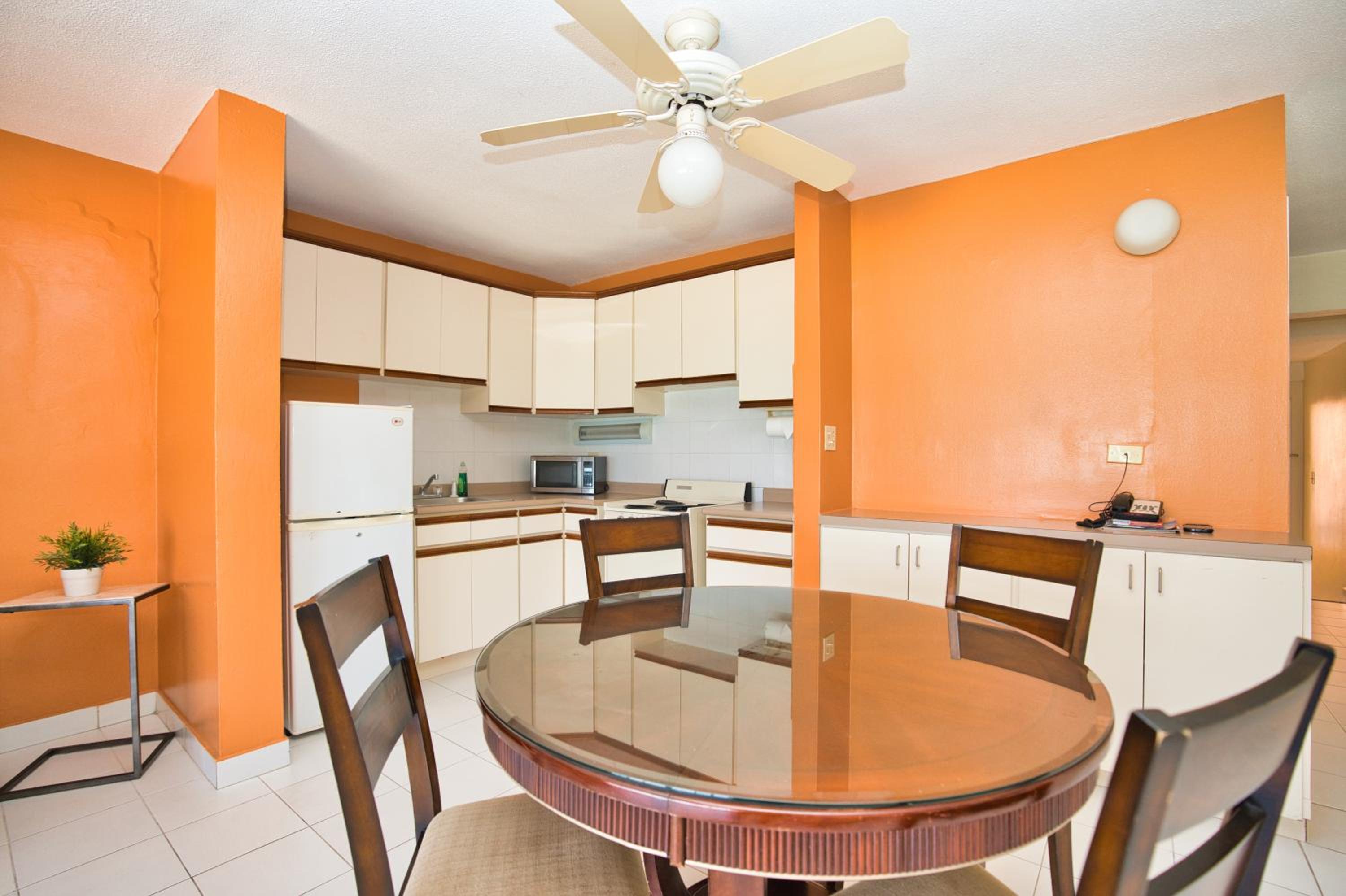 Clean spacious a bit outdated but we came for the beach and shopping although if we wanted to fry anything we couldn’t as the electric wrings were crooked and so tended useless but great view onto the beach great shopping but the the best restaurants are on the French side for dinner