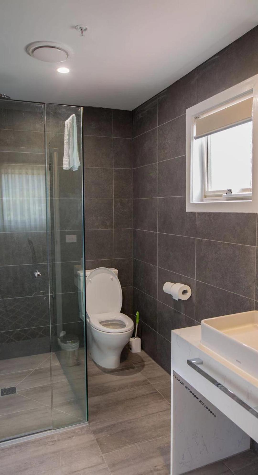 We had no shower screen just two rolled up towels on the floor so water didn't flood the whole room. Very average