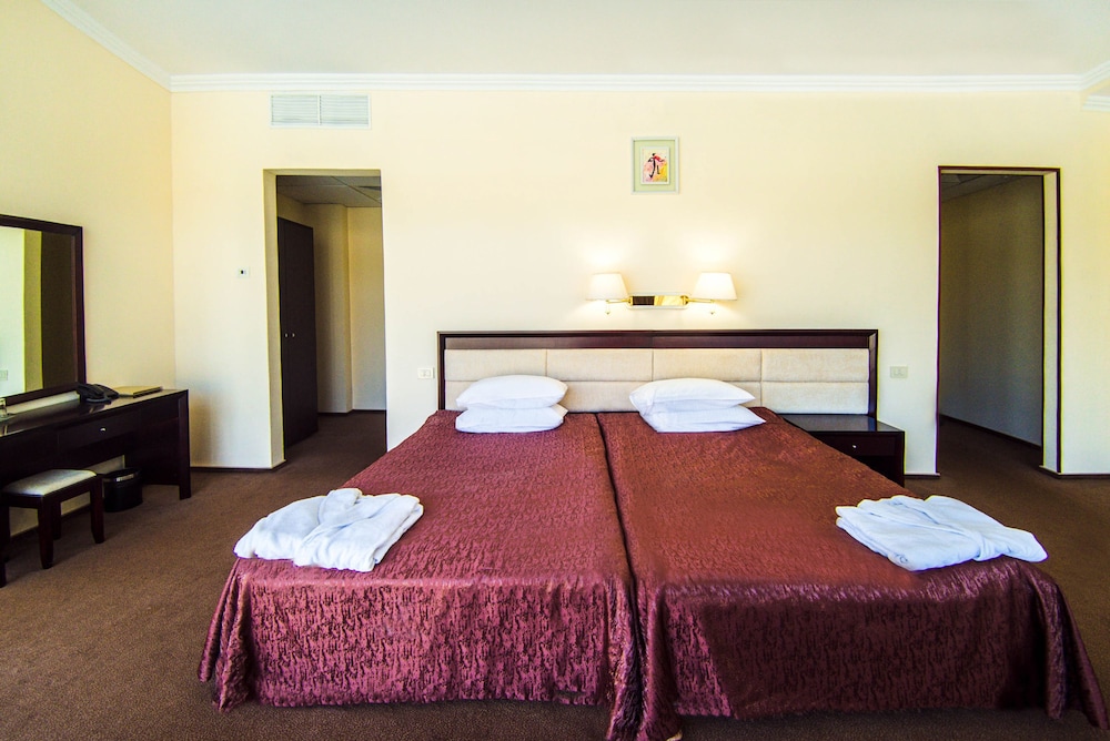 З метою конструктивної критики скажу, що готель на 3+ за такі гроші. Персонал дуже старається і це круто. Номер доволі просторий проте при заїзді був затхлий запах в номері, що вивітрювався 2 дні. Також в номері були двері до сусіднього номера, через які чути всі звуки сусідів. Дуже напрягає кількість комах з вечора до ранку, двері відчинити і не запустити якусь комашню нереально Я вперше на морі в Україні, проте якщо порівнювати з готелями такої цінової категорії закордоном, то вважаю готель переоціненим. Проте сподобався пляж та смачна їжа в ресторані.