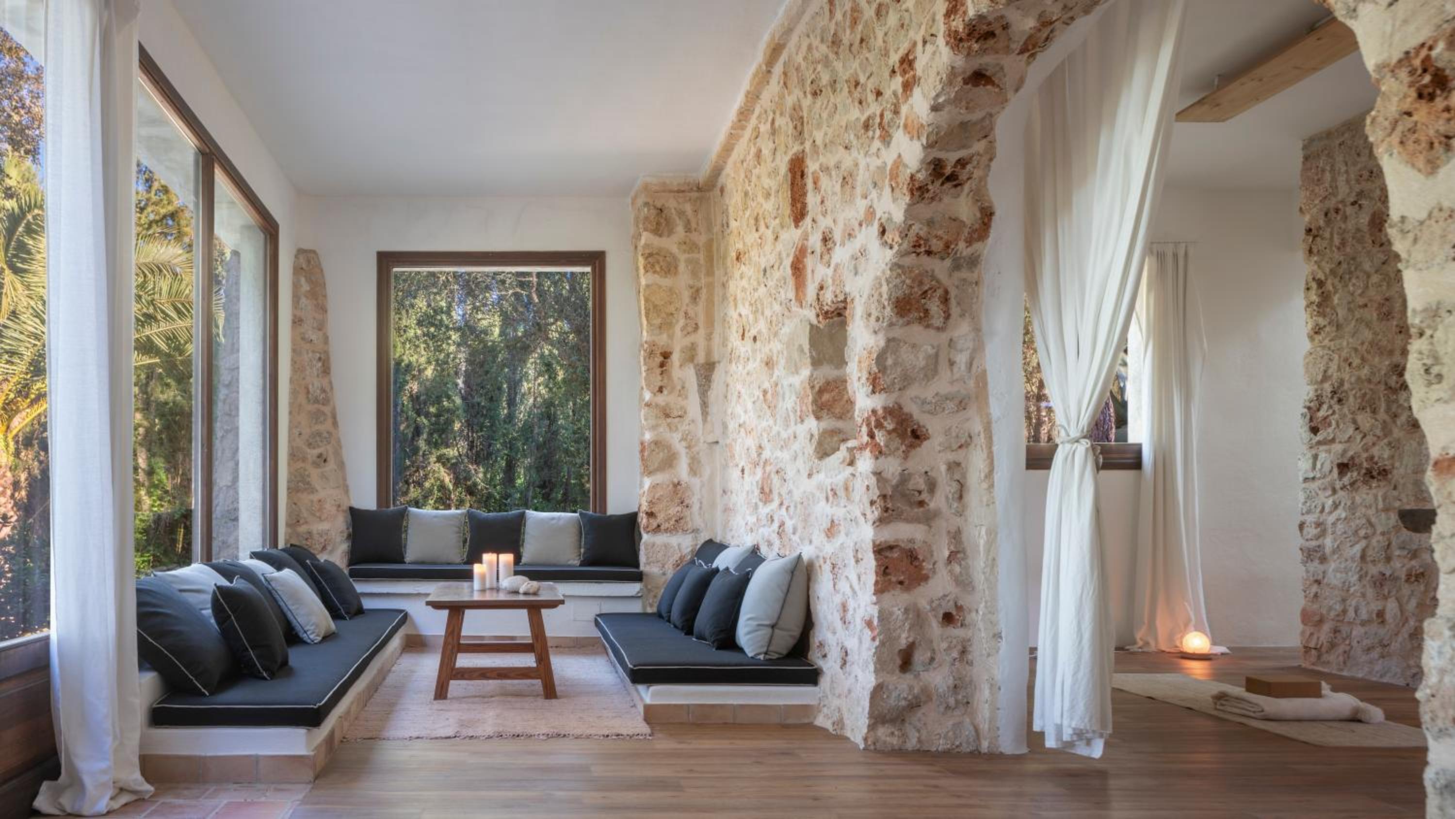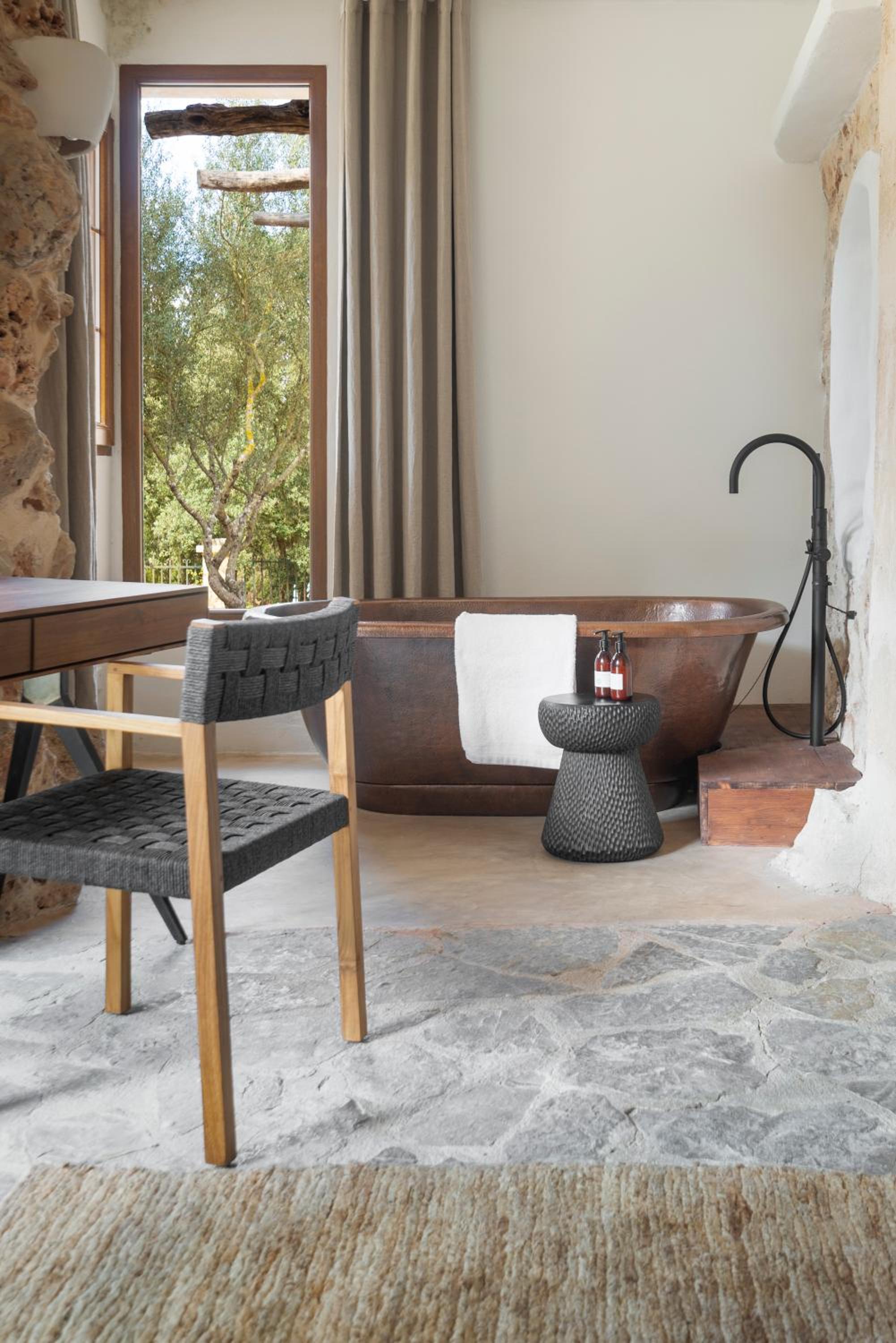 Indulge in the charm of Mallorca with our suites boasting traditional furniture, stone walls, and private balconies. Enjoy breathtaking views of both sunrise and sunset from the comfort of your room.
