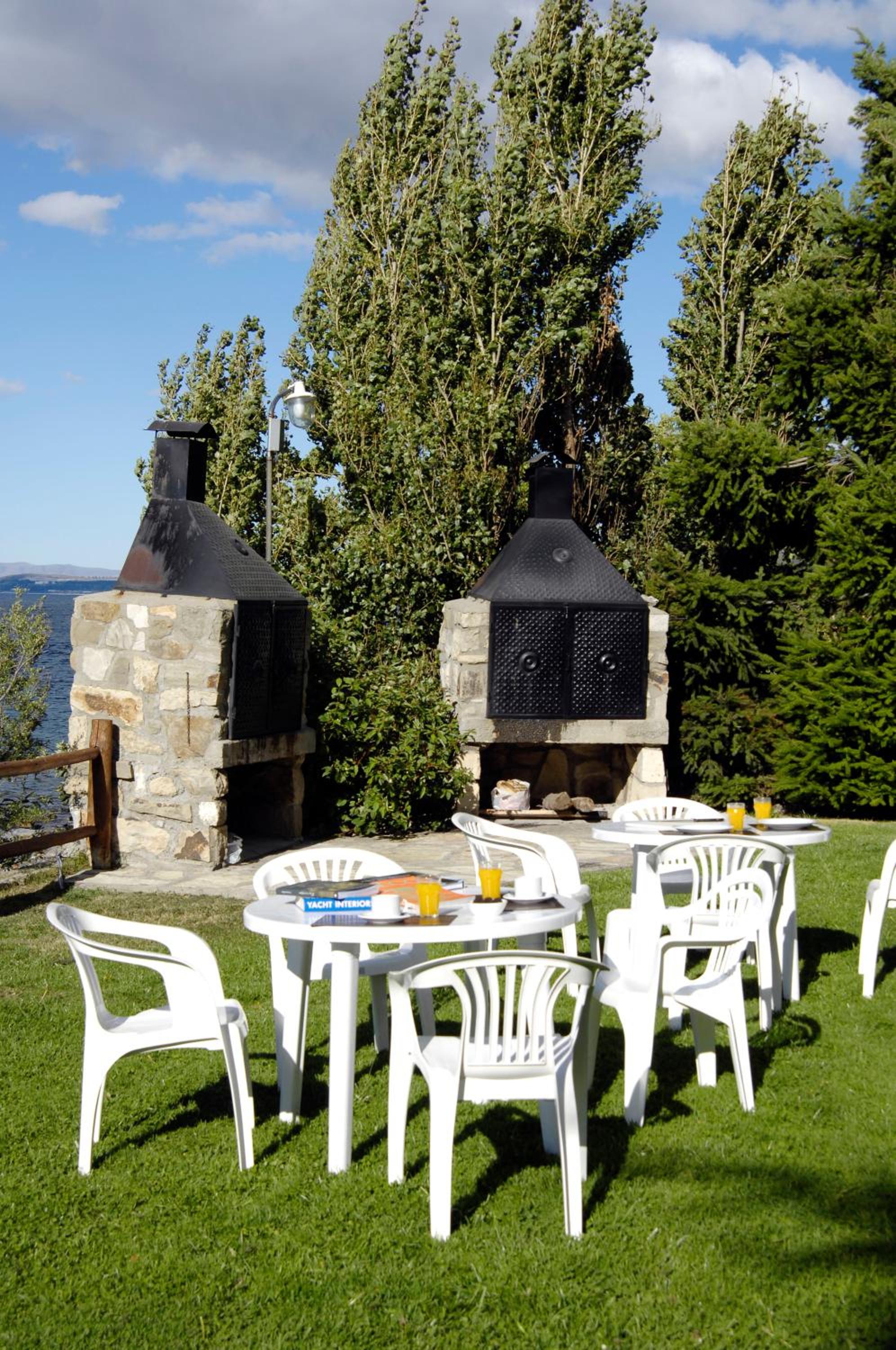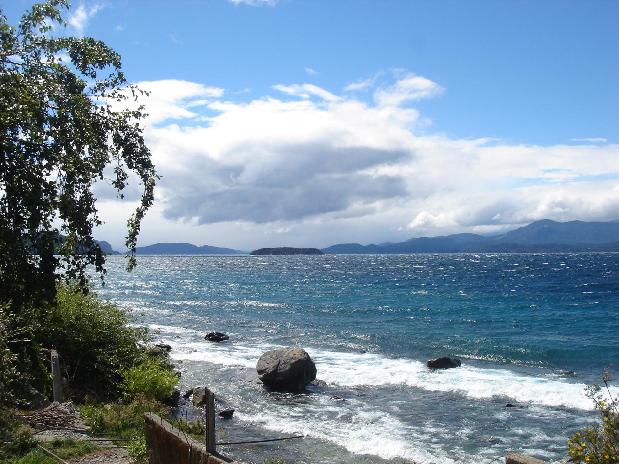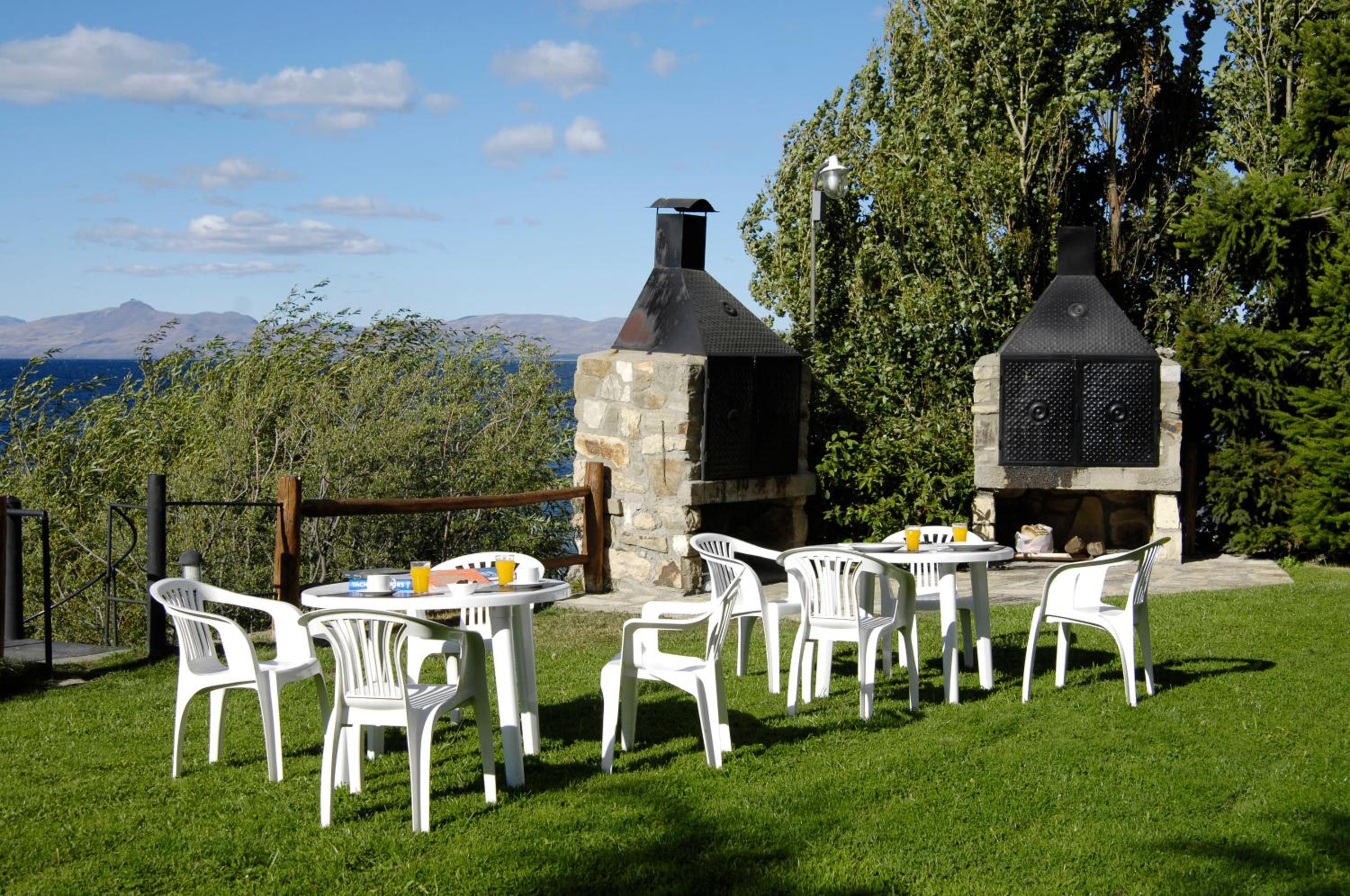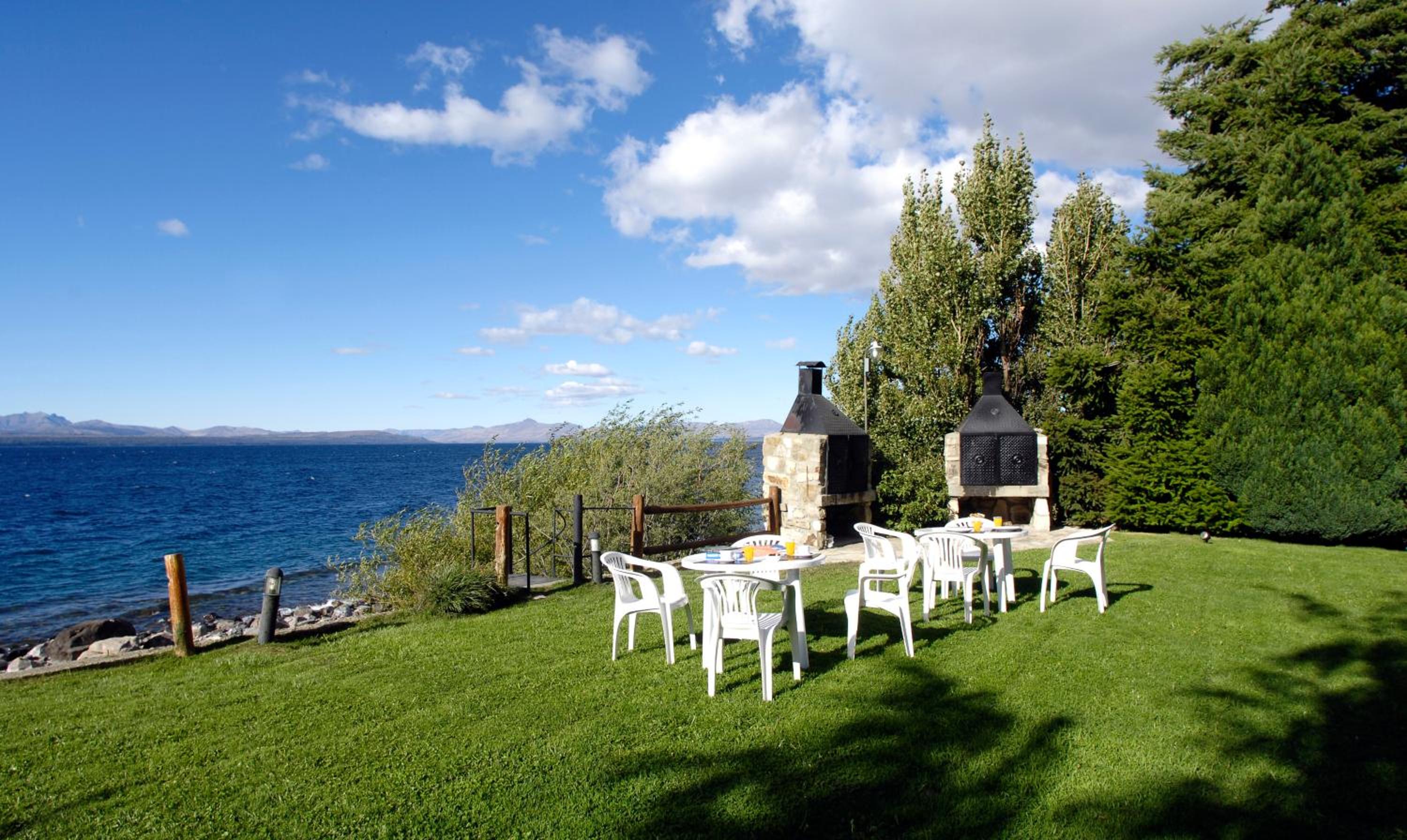 Tiene una vista hermosa al lago Nahue huapi! Y un jardín con parrilleros que dan al lago. Eso me pareció increíble!