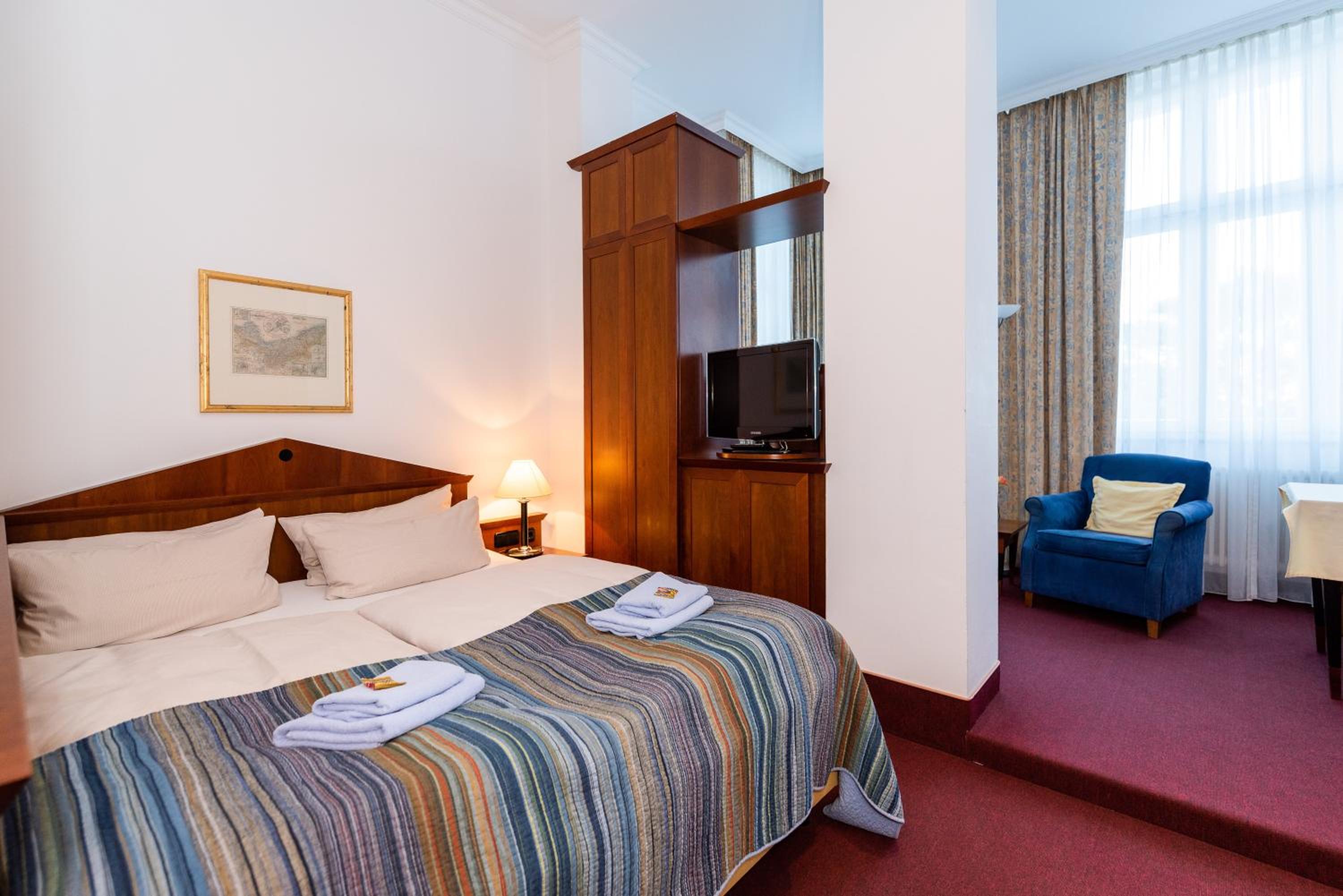 Das Hotel liegt zentral und ist auch für Rollstuhl Fahrer gut geeignet. Frühstück war sehr gut.