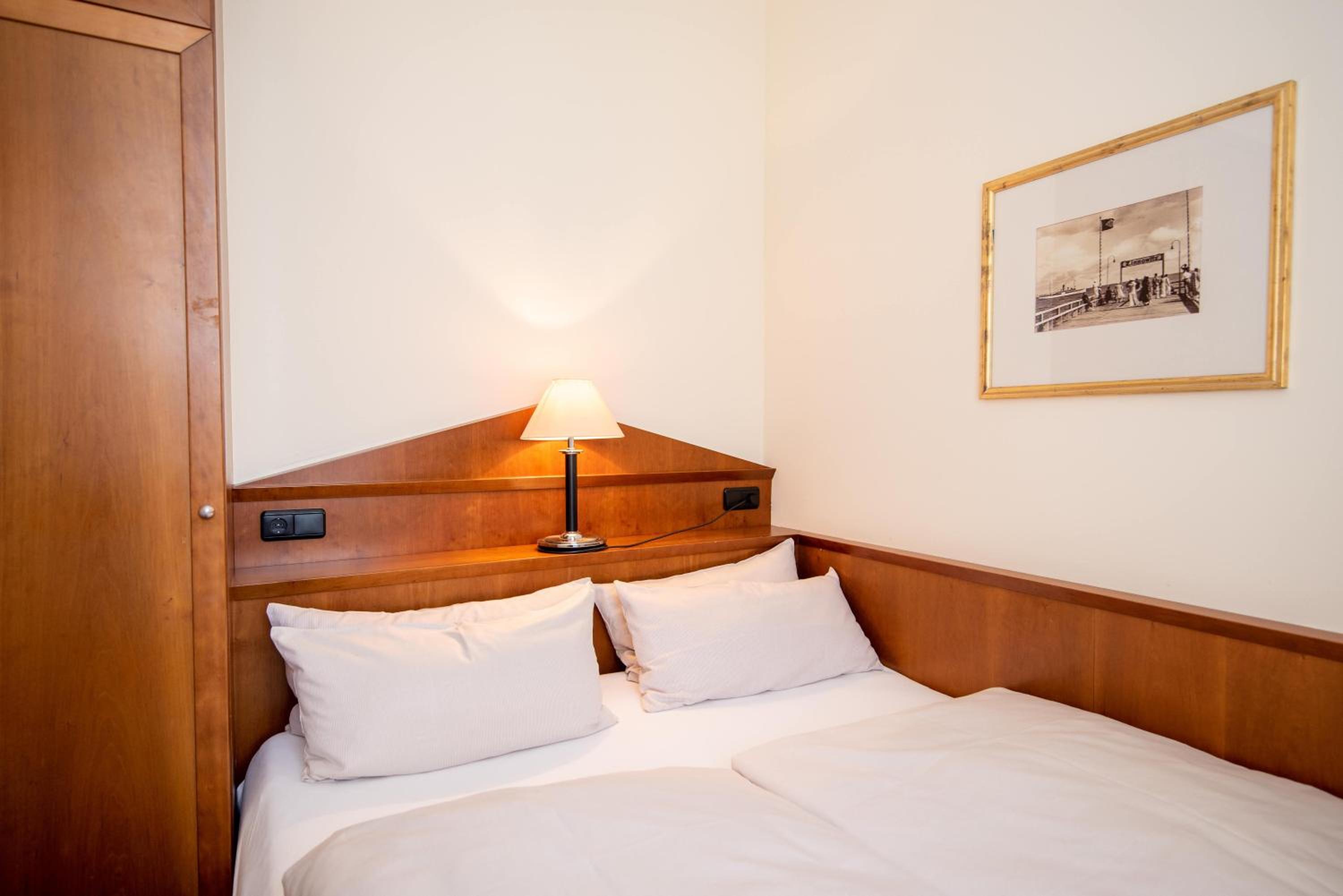 Direkt an der Promenade gelegen - raus aus dem Hotel und raus auf die Ostsee (waren im Februar da und die war zugefroren). Das Hotel hatte außergewöhnlich geräumige Zimmer, das Frühstück war gut. Das Personal freundlich.