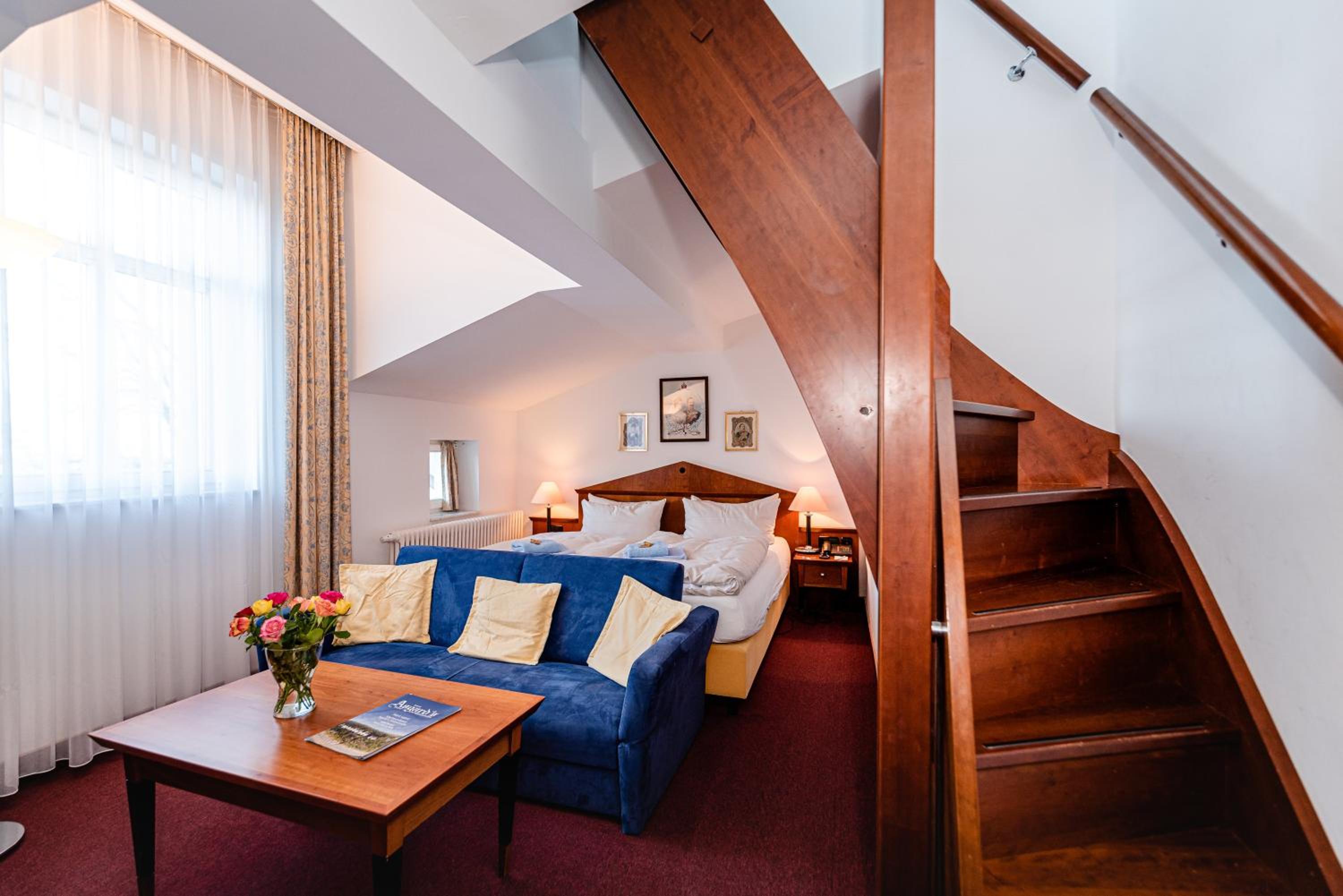 Rich Interiors and Original Antiques: Built in 1897, Aparthotel Seeschlösschen boasts elegant wooden, marble, and granite interiors adorned with original antiques and oil paintings, creating a luxurious and historic ambiance.