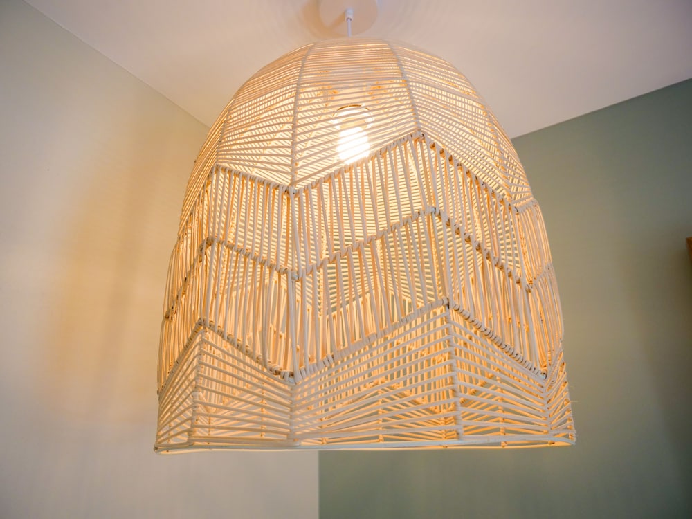 Low hanging light beside bed not great for tall people.