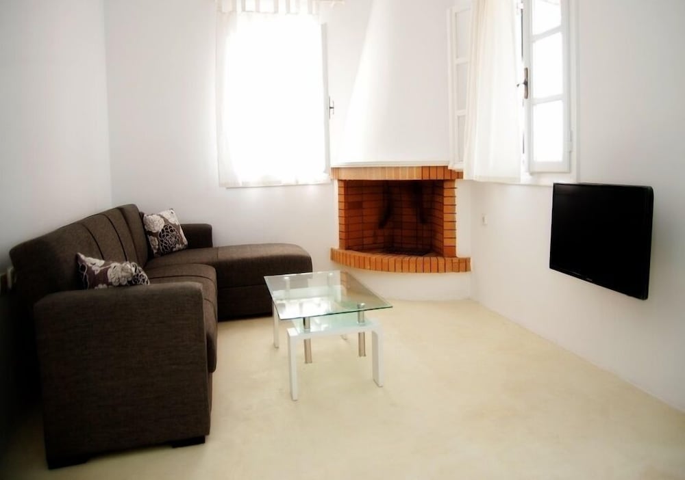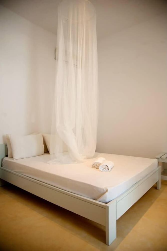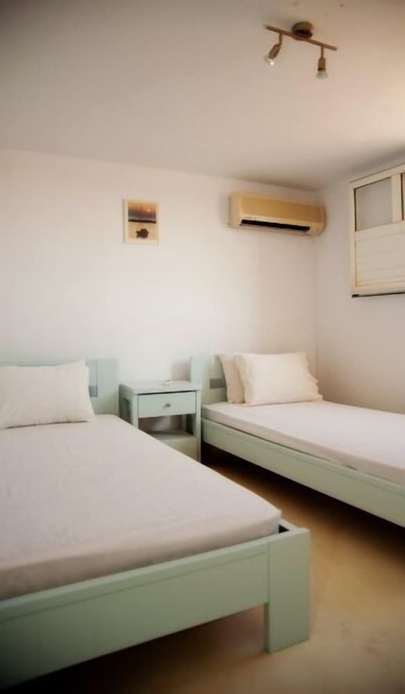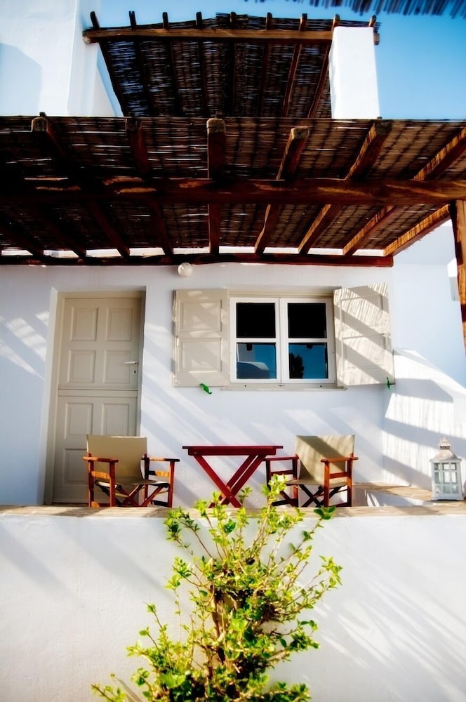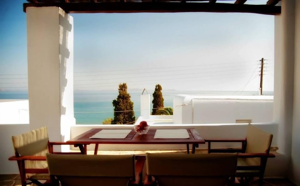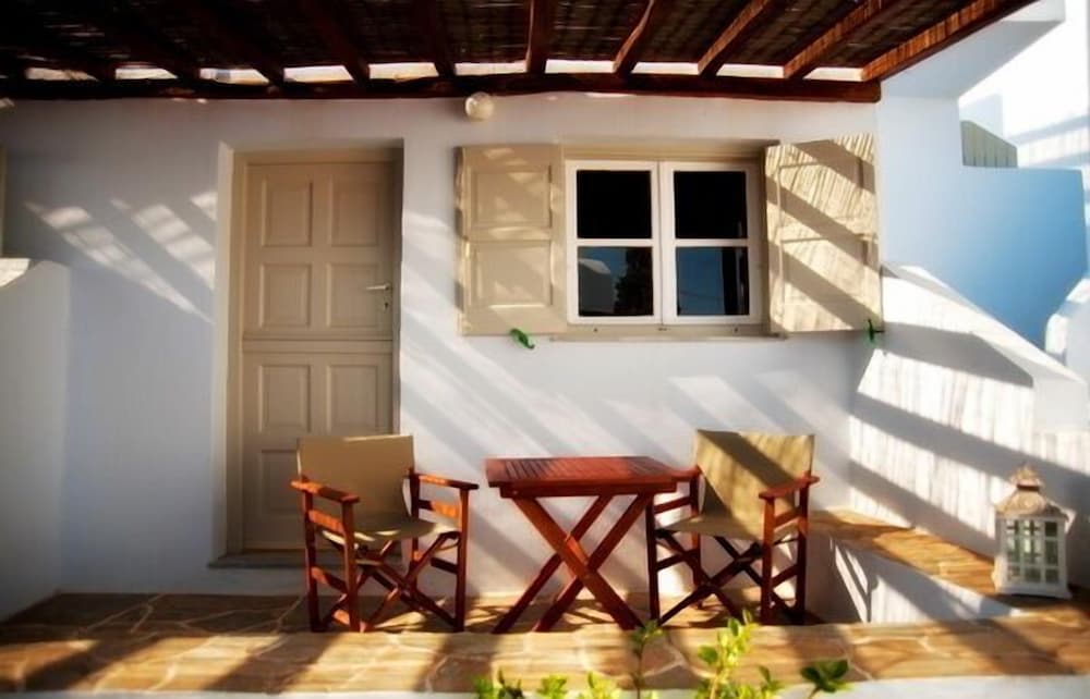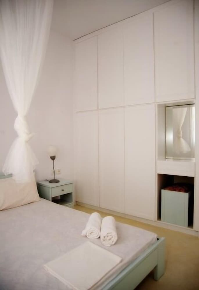Located 10min taxi-ride from Tinos, you find yourself in a very calm little village with beautiful houses, and a pretty beach with few people. The rooms of the appartment was beautiful and especially the nicely designed bedroom with aircondition. Some small resturants and minimarkets are on walking distance. The location is perfect for couples that want a relaxing vaccation together on a calm and beautiful place with gentle people that answer your questions. Walk to the sea is about 1min away and if you rent car or (as we did) motorbike, you find yourself on a beautiful location far away from stress but still close to all.