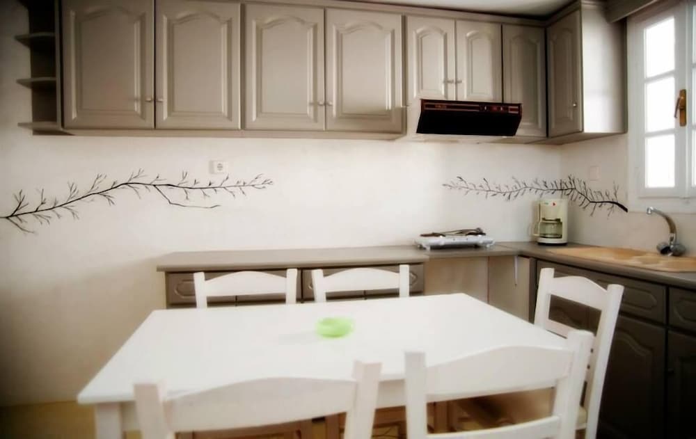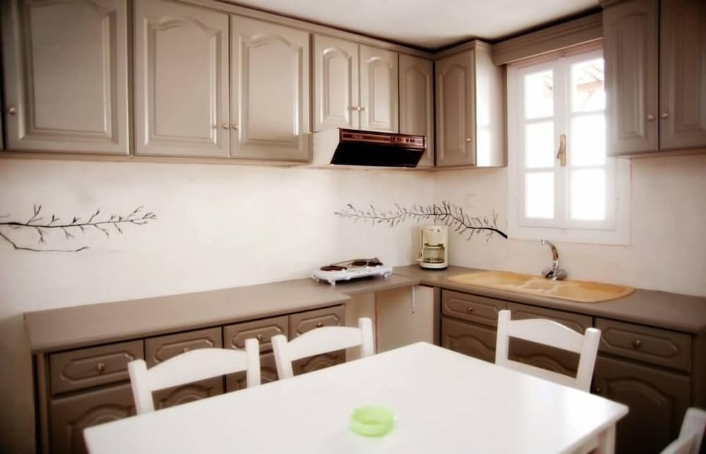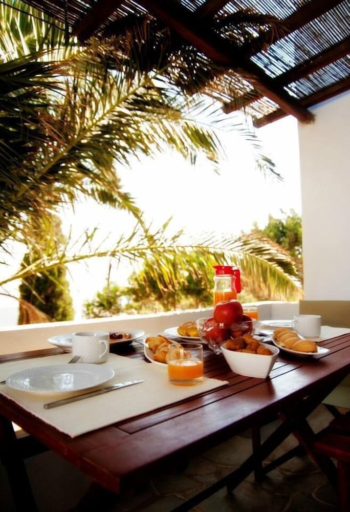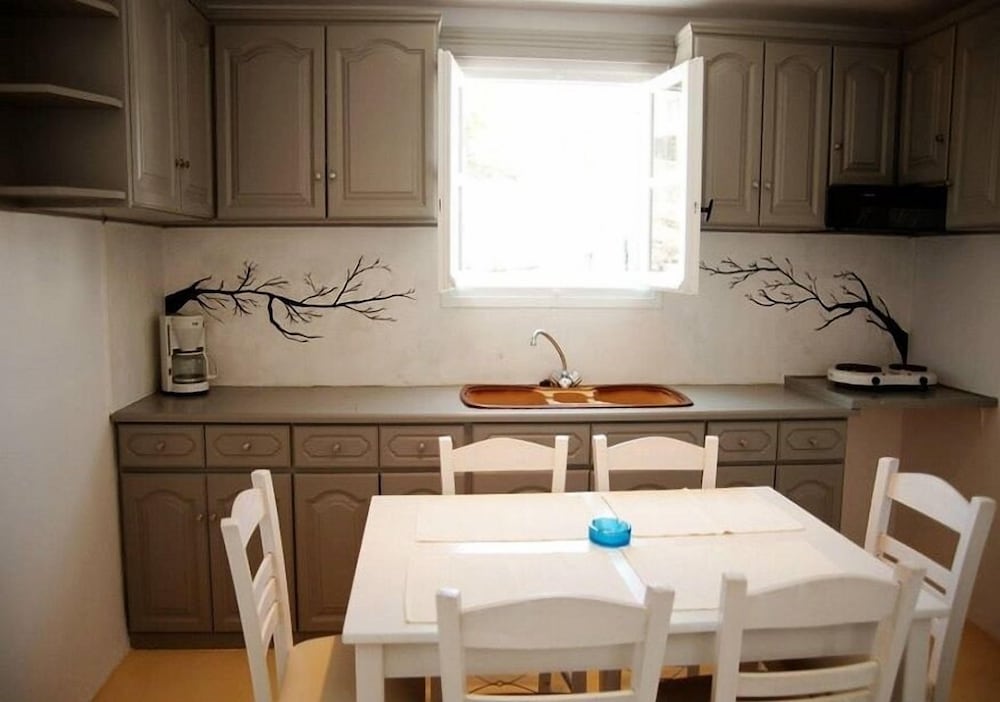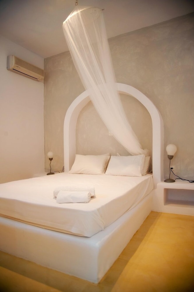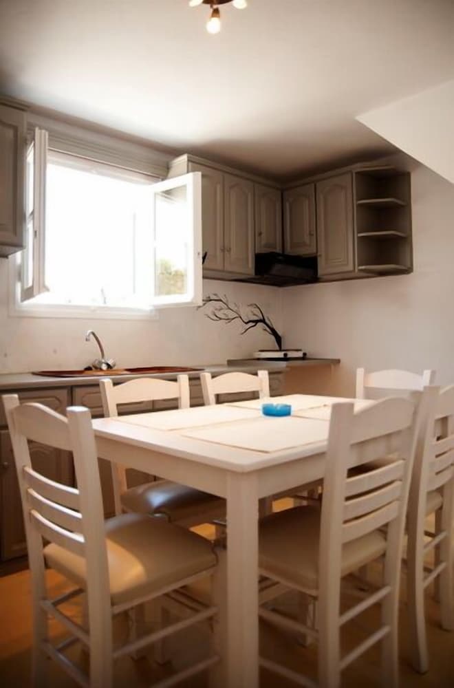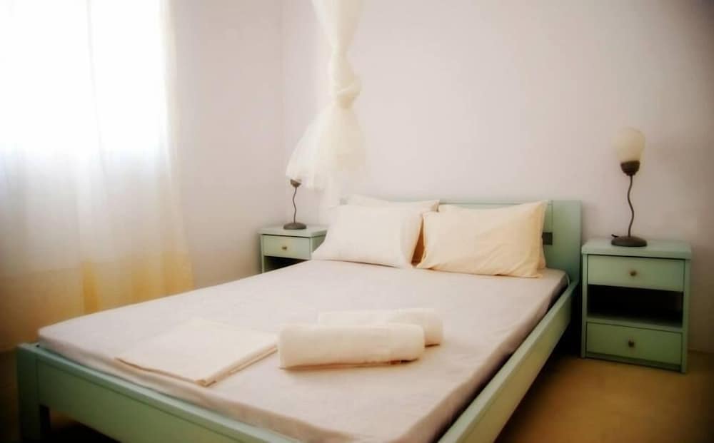 Located 10min taxi-ride from Tinos, you find yourself in a very calm little village with beautiful houses, and a pretty beach with few people. The rooms of the appartment was beautiful and especially the nicely designed bedroom with aircondition. Some small resturants and minimarkets are on walking distance. The location is perfect for couples that want a relaxing vaccation together on a calm and beautiful place with gentle people that answer your questions. Walk to the sea is about 1min away and if you rent car or (as we did) motorbike, you find yourself on a beautiful location far away from stress but still close to all.