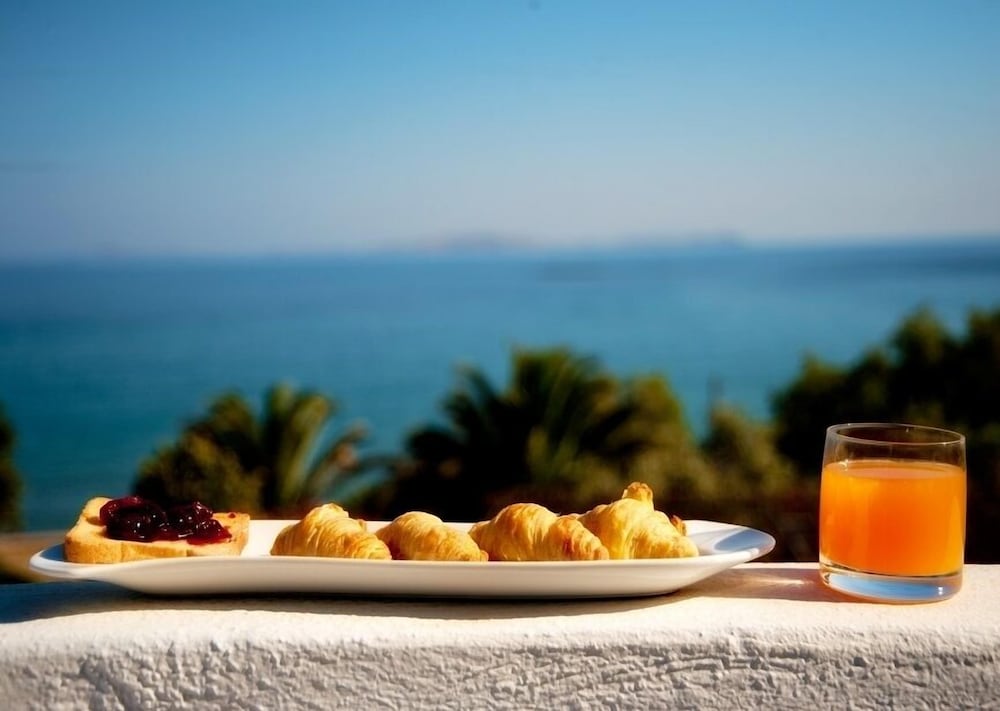 Wir hatten ein sehr schönes Zimmer mit Meerblick. Am Strand ist man in 3 Min. Die Anlage und Zimmer sind sehr sauber! Vielen Dank an Giorgos den Manager!