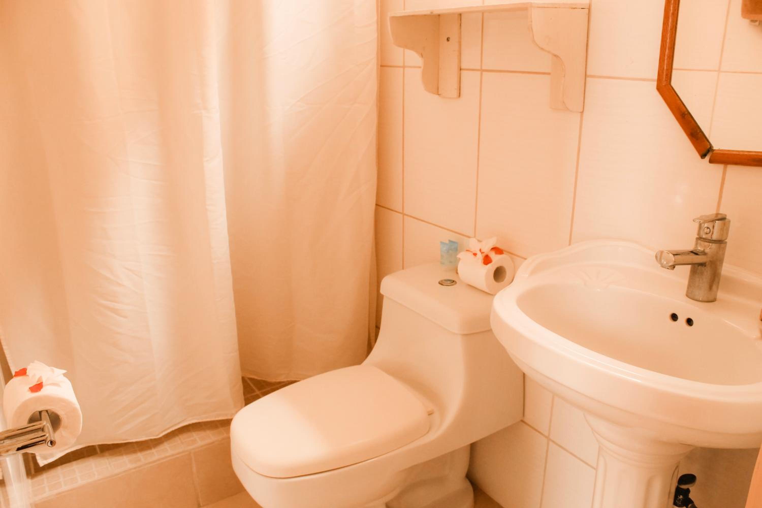 La notte si sentivano delle vibrazioni forti come di un frigorifero, di un generatore , non all’interno della camera. Le lenzuola marroni non erano molto invitanti.