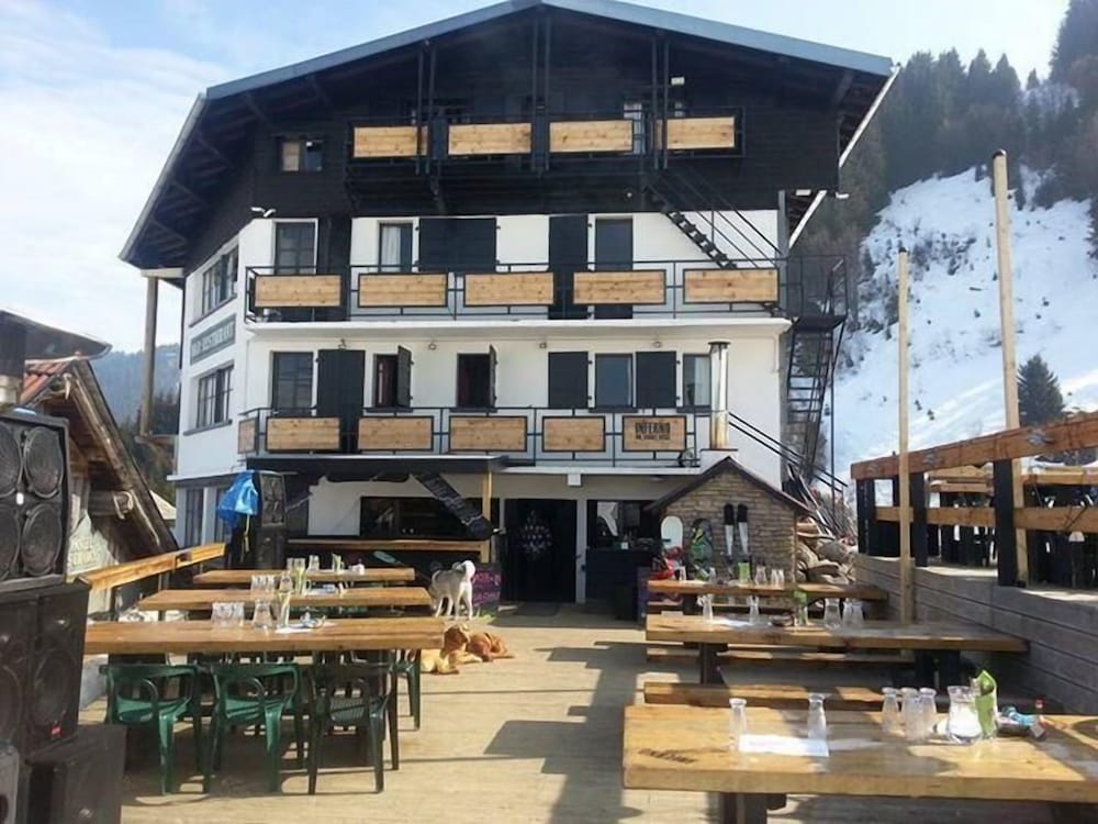 En haut d'un téléphérique donc très isolé ce qui est amusant mais nécessite d'être de retour au téléphérique avant 17H. Le jour musique partout. Soirée tranquille, ambiance anglaise : bière, jacusi en plein air), française : belote au coin du feu, excellent dîner, déjeuner : pizza cuite au feu de bois, hamburger, le tout délicieux et fait maison. Sur les pistes de Morzine, accès à Avoriaz relativement facile avec 2 navettes gratuites.Très bonne adresse.