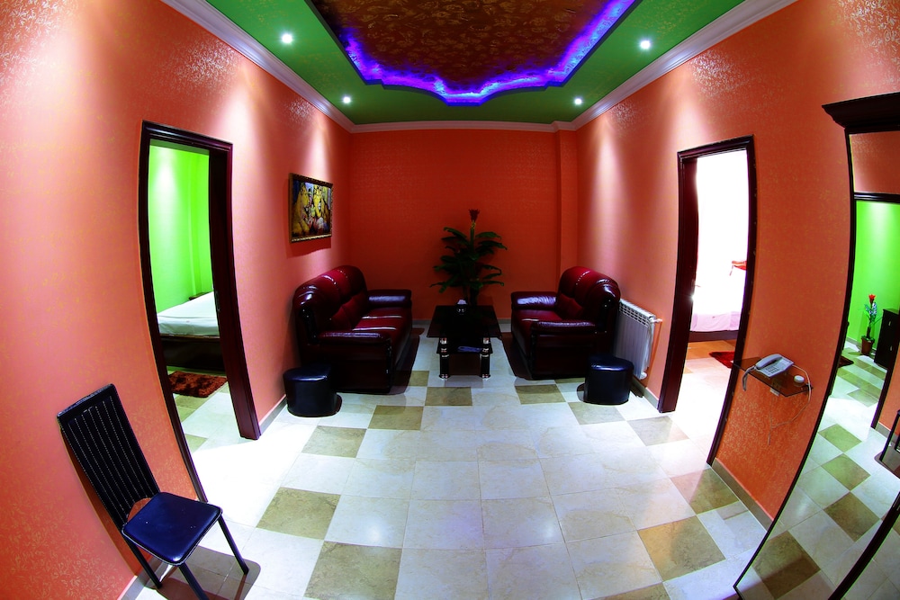 Das Hotel liegt im Hinterland einer großen Ausfallstraße.Es ist umgeben von einer Investruiene und liegt auf einer staubigen,vermüllten Brachfläche.In das Stadtzentrum zu gelangen ist ein längerer Prozeß,eigentlich nur mit dem Taxi zu machen.Der Flughafen liegt ganz am entgegengesetzten Außenbezirk von Yerevan.Die Zimmer sind groß,Betten von ordentlicher Qualität.Zimmer sind oft schmutzig,in einem der Zimmer befanden sich auf der Matratze Flöhe.Zimmerreinigung nur auf Nachfrage,Toilettenpapier nur auf Nachfrage aufgefüllt.Frühstück lieblos und eintönig.Getränke oft nur auf Nachfrage.Bis auf wenige Ausnahmen wirkt das Personal unproffessionell und desinteressiert.Das Hotel wird unter Anderem auch als Stundenhotel genutzt,entsprechende Störgeräusche waren jede 2.Nacht zu hören.Wenn ich vorher nur die leiseste Ahnung von der"Qualität" des Hauses gehabt hätte,hätte ich einen großen Bogen um das Hotel gemacht.Mit Sicherheit nie wieder!