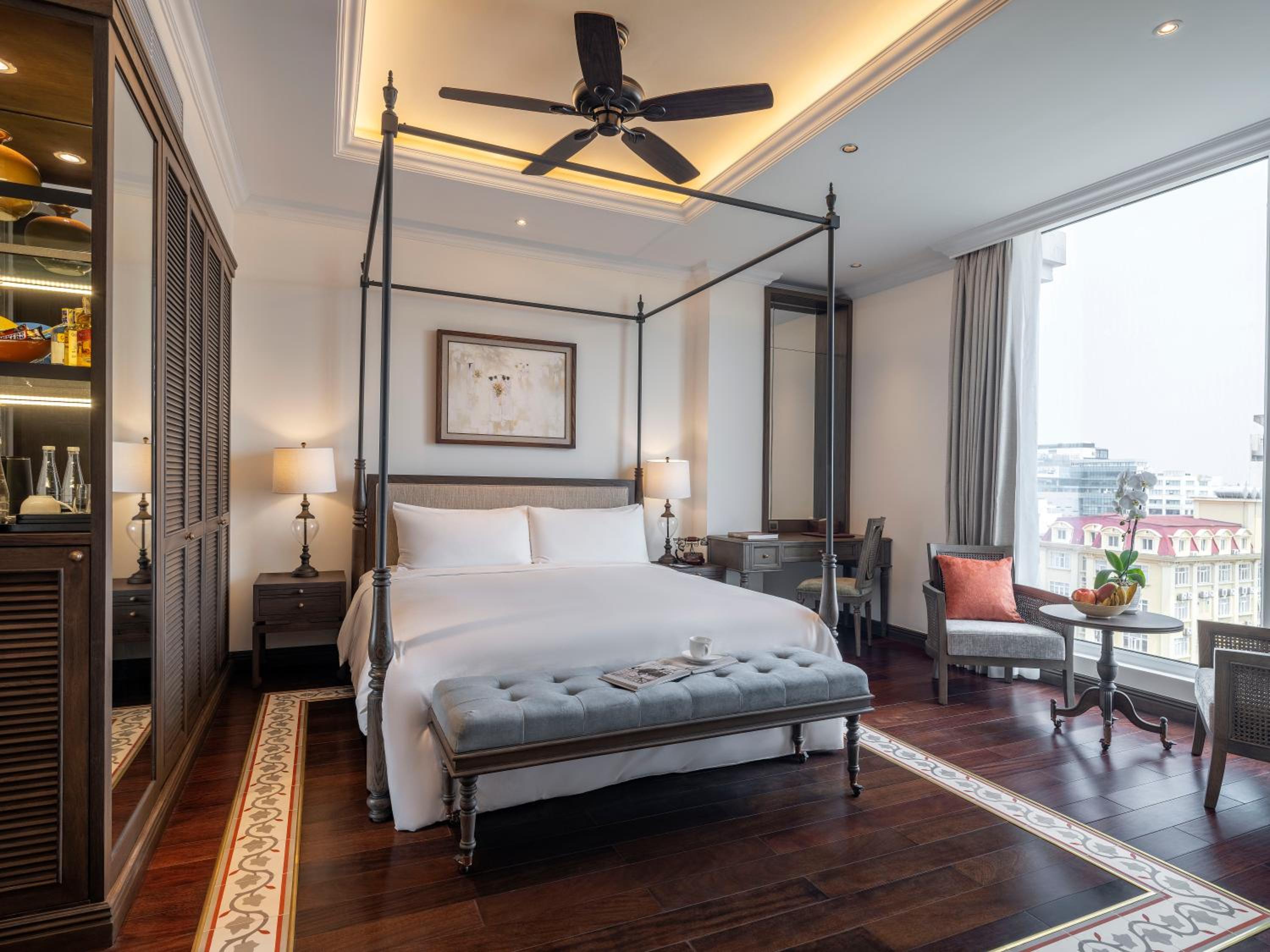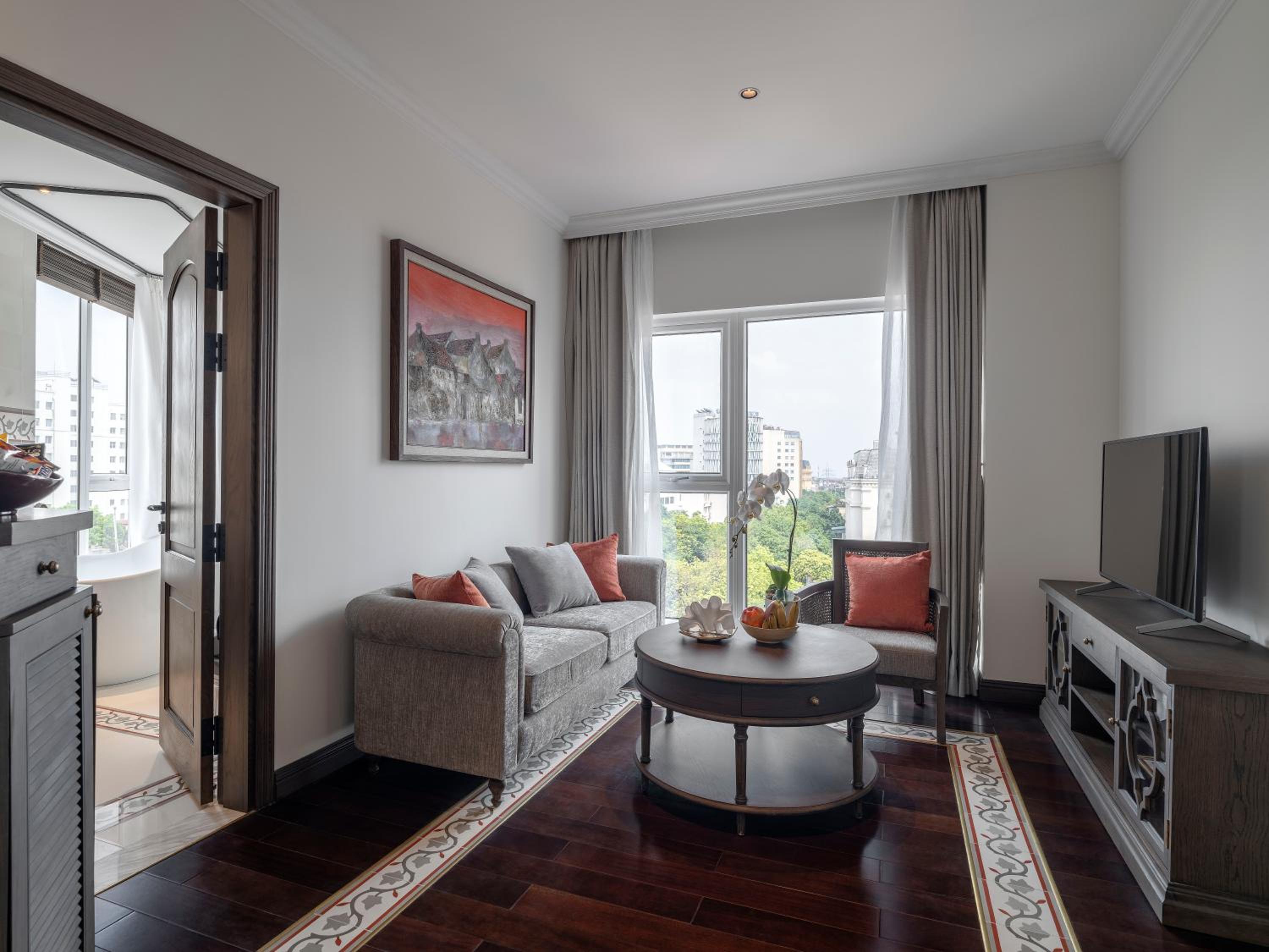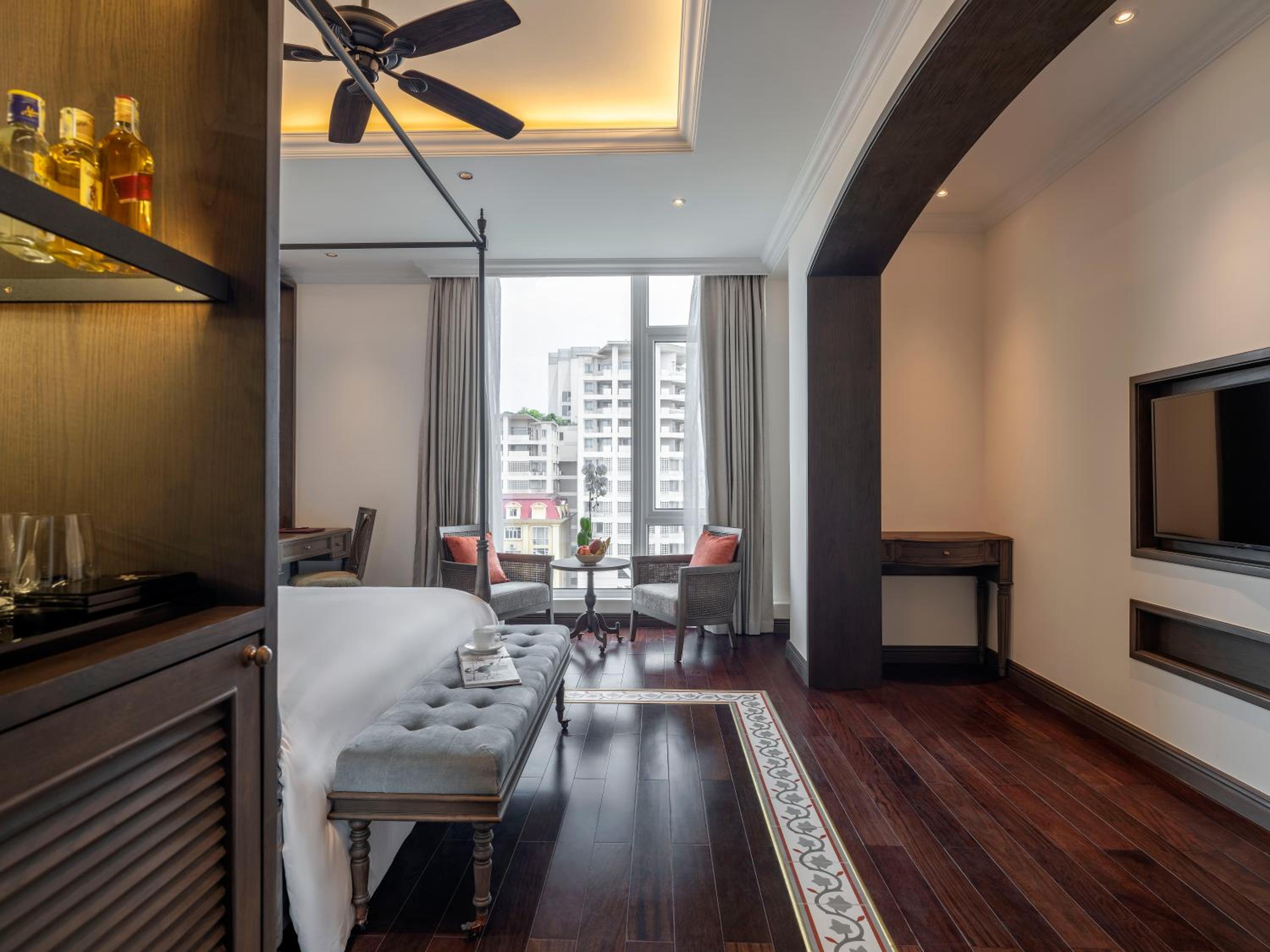 The staff was wonderful from greeting to checkout especially Lucy and Dung. The rooms were spacious and well furnished with a bedroom tv and a separate room for lounging with a tv. The breakfast was filled with a variety of food, breads, cereals and fruits. You can also have eggs, pancakes, and waffles specially ordered. The sky bar was a nice setting to relax and enjoy a cocktail of your choice. There were many brands available.