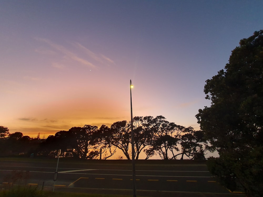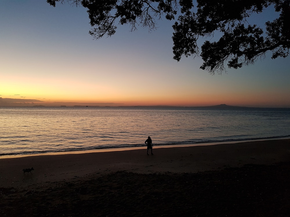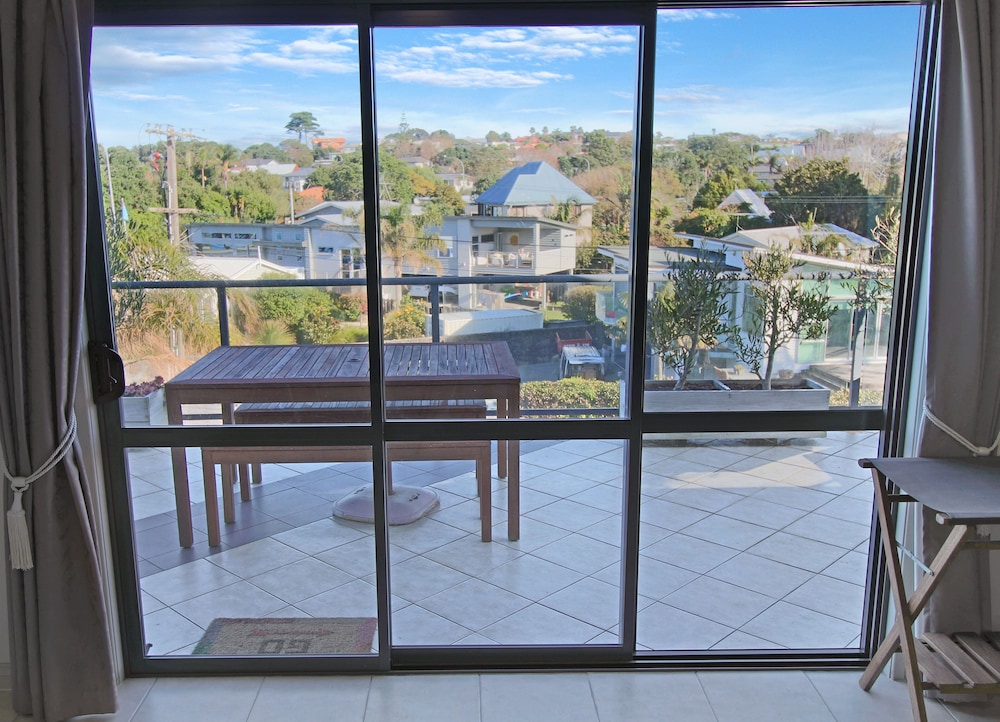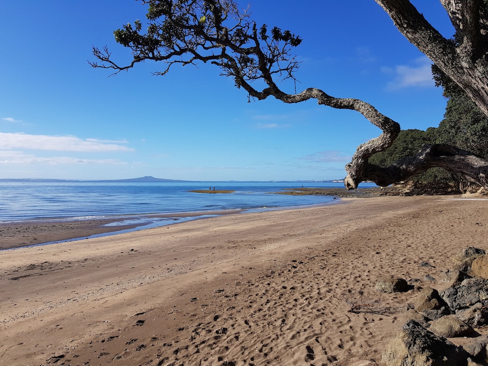 Comfortable, spacious room with a balcony and a great view of the Hauraki Gulf and islands. Across the street from a small, pretty beach. Very friendly hosts and great amenities in the room.