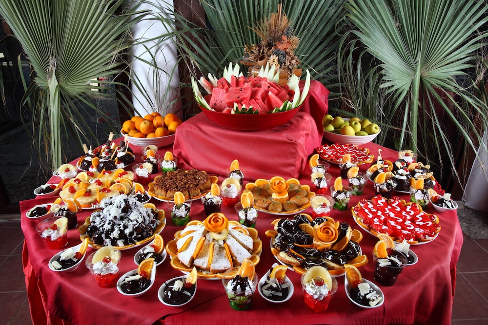 Check in as a nightmare as I do not think the hotel as expecting us. Waited over an hour for a key only to find the maid as still cleaning the room. Receptionist was not helpful. Food as not labeled and lukewarm to cold. Breakfast was eggs and salad Hard boiled eggs, hard fried eggs or on two days omeletes. The Bar closed at 11pm on the dot, drinks were low alcohol and cold not accommodate the amount of clients. There was no room information I.e Meal times, telephone numbers or local attractions. Booked a garden room but got one overlooking the road outside. Pool area was good and clean and plenty of sun beds. I would not stay in this hotel again.