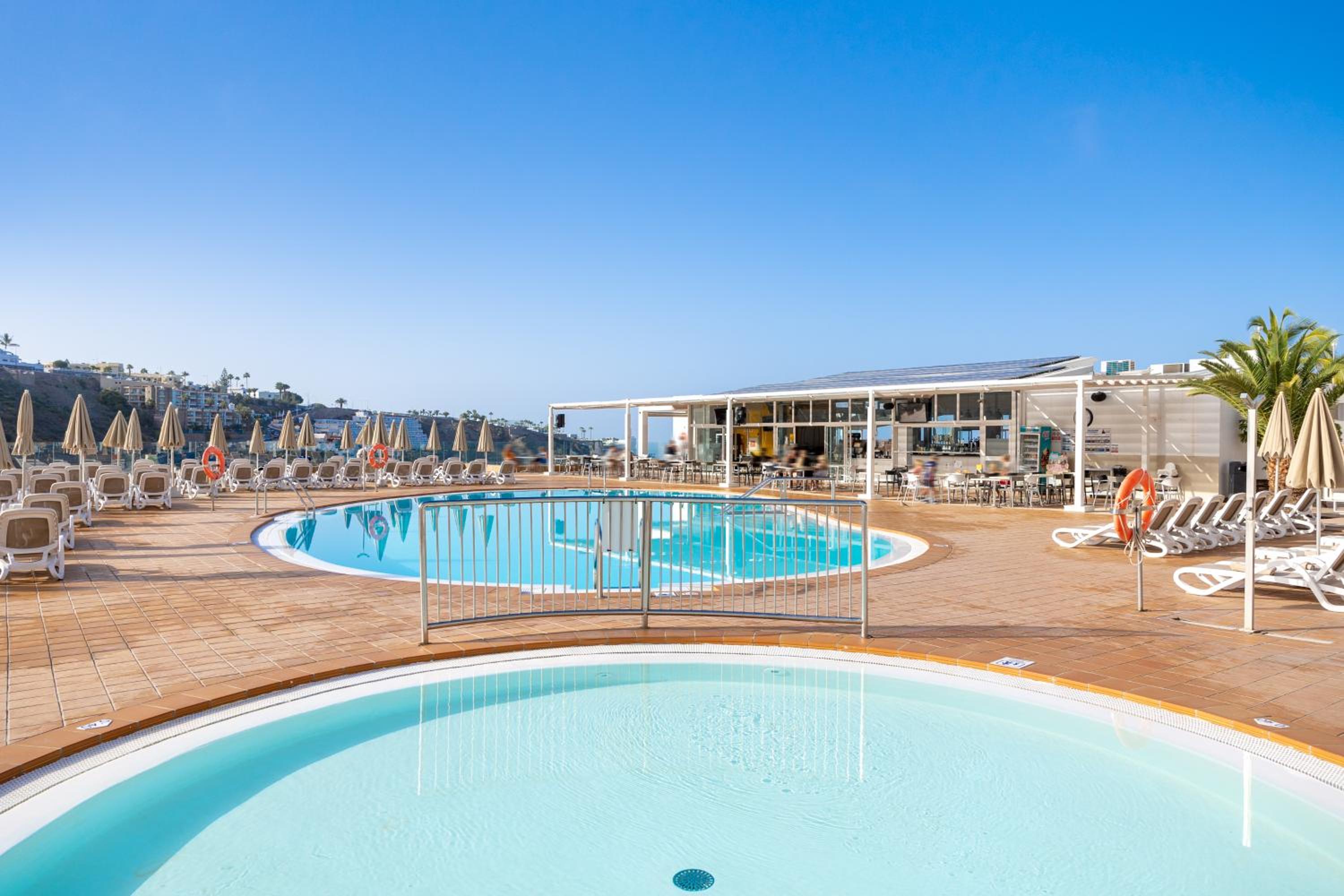 Swimming Pools and Entertainment: Enjoy access to multiple swimming pools, including a heated one, and relax on sun terraces with free loungers. Children can have fun at the mini club while you unwind.