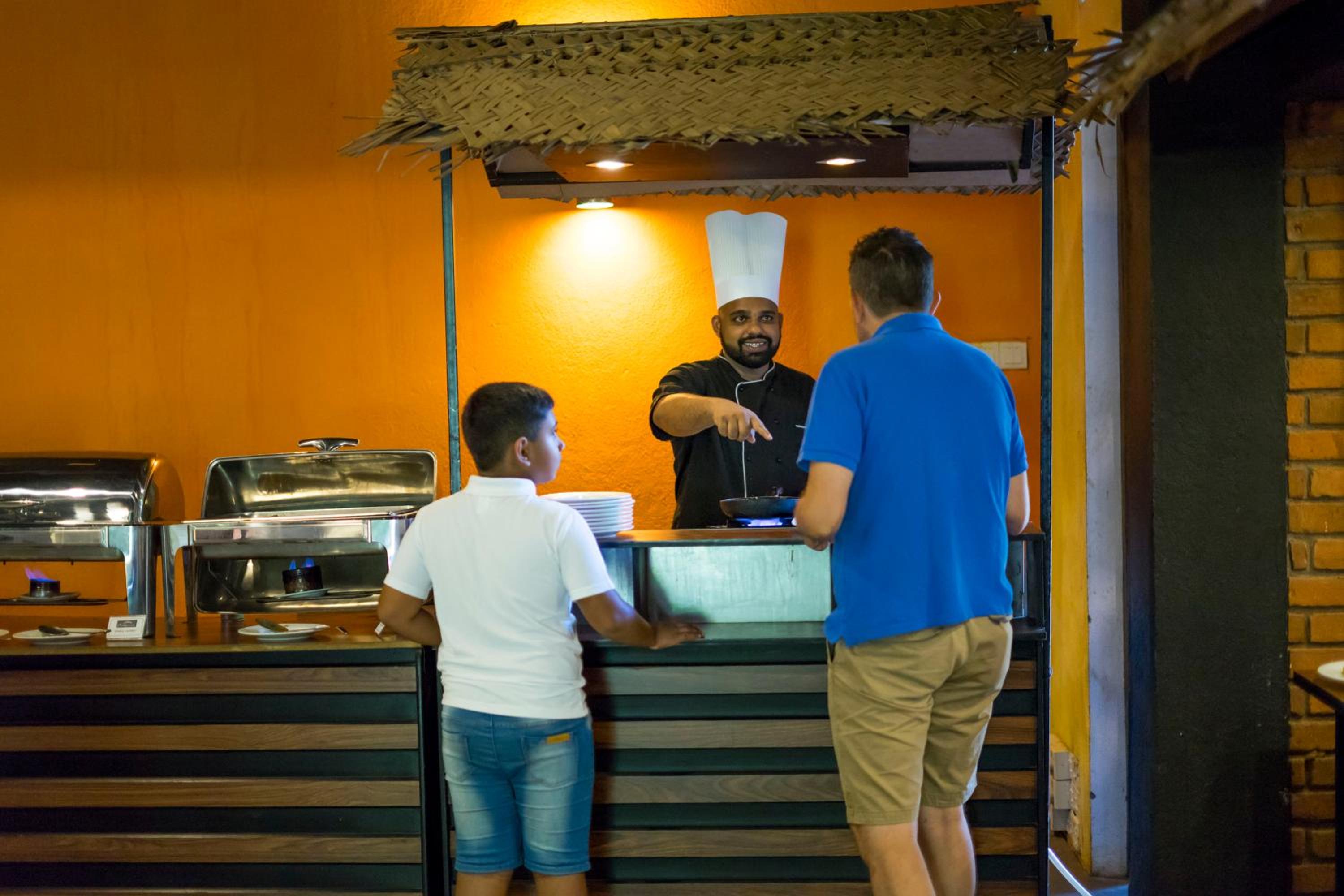 Das Essen im Restaurant war Durschnitt, vor allem die Sri Lankischen Gerichte ließen zu wünschen übrig (so das Urteil unserer Sri Lankische Freunde, die mit uns unterwegs waren). Mit anderen Worten: 3 Sterne ausgewiesen, 4-Sterne Preise und die Leistung lag eher bei 2 Sternen