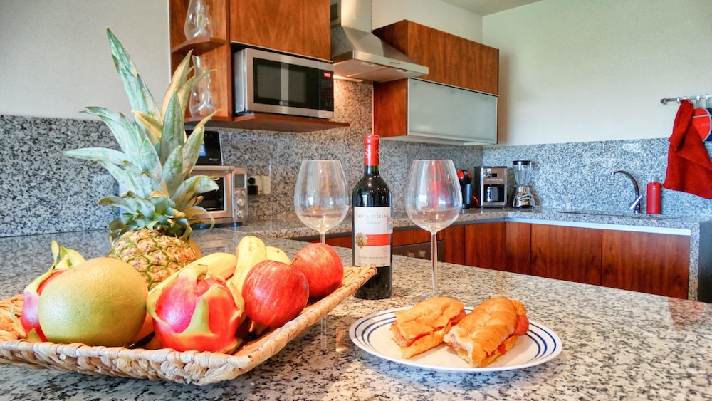 The condo itself was larger than expected with a full-sized kitchen. There’s a 7-11 near the entrance to get a few essentials, like water. We would walk to the Mega Soriana supermarket every couple of days for groceries on Av. Constituentes and Av. 30 Norte. It’s about 1km away. There is a Super Aki close by too. For fresh fruit and vegetables, there’s a shop on Avenida CTM, (El Eden I think), next door to LUA.