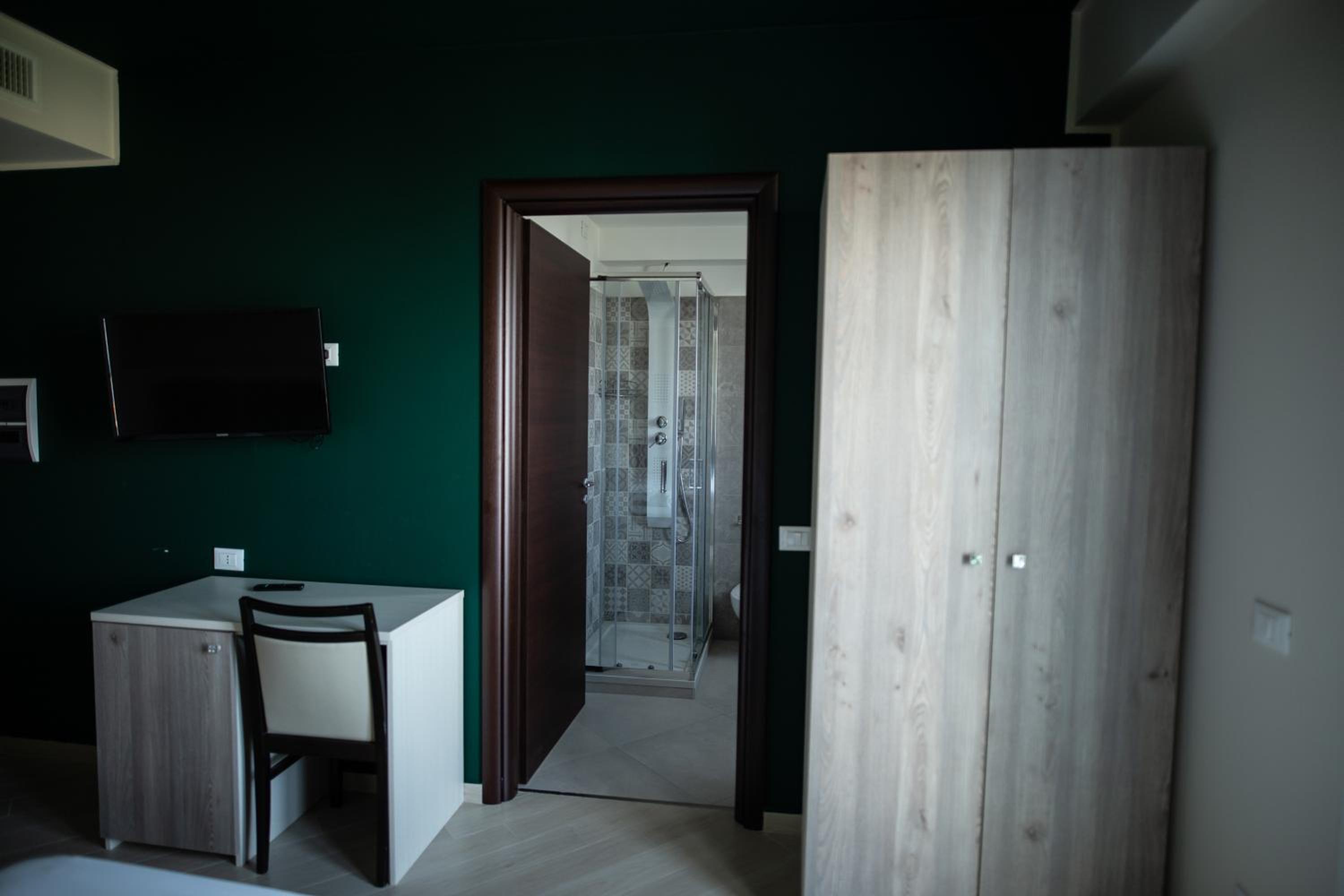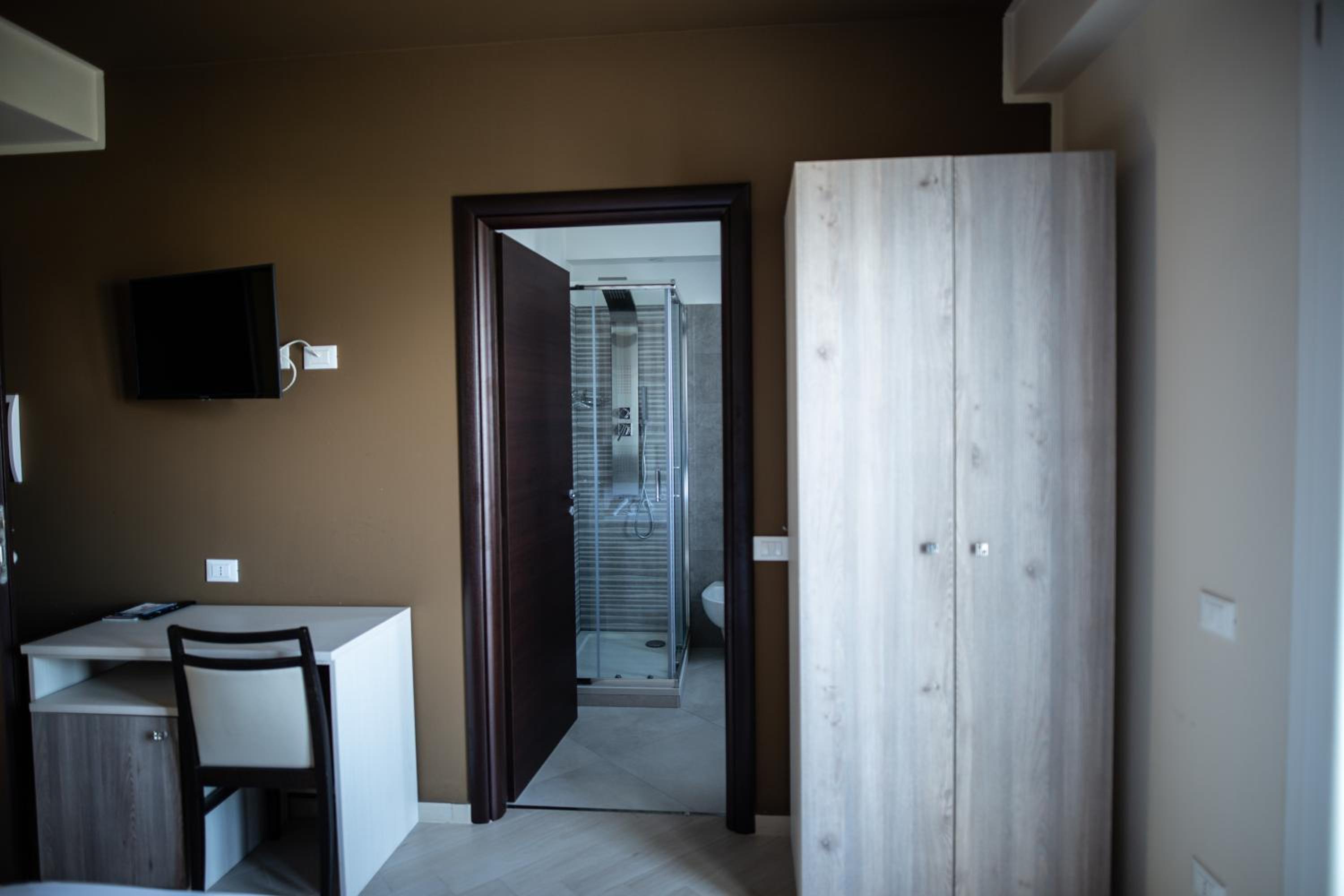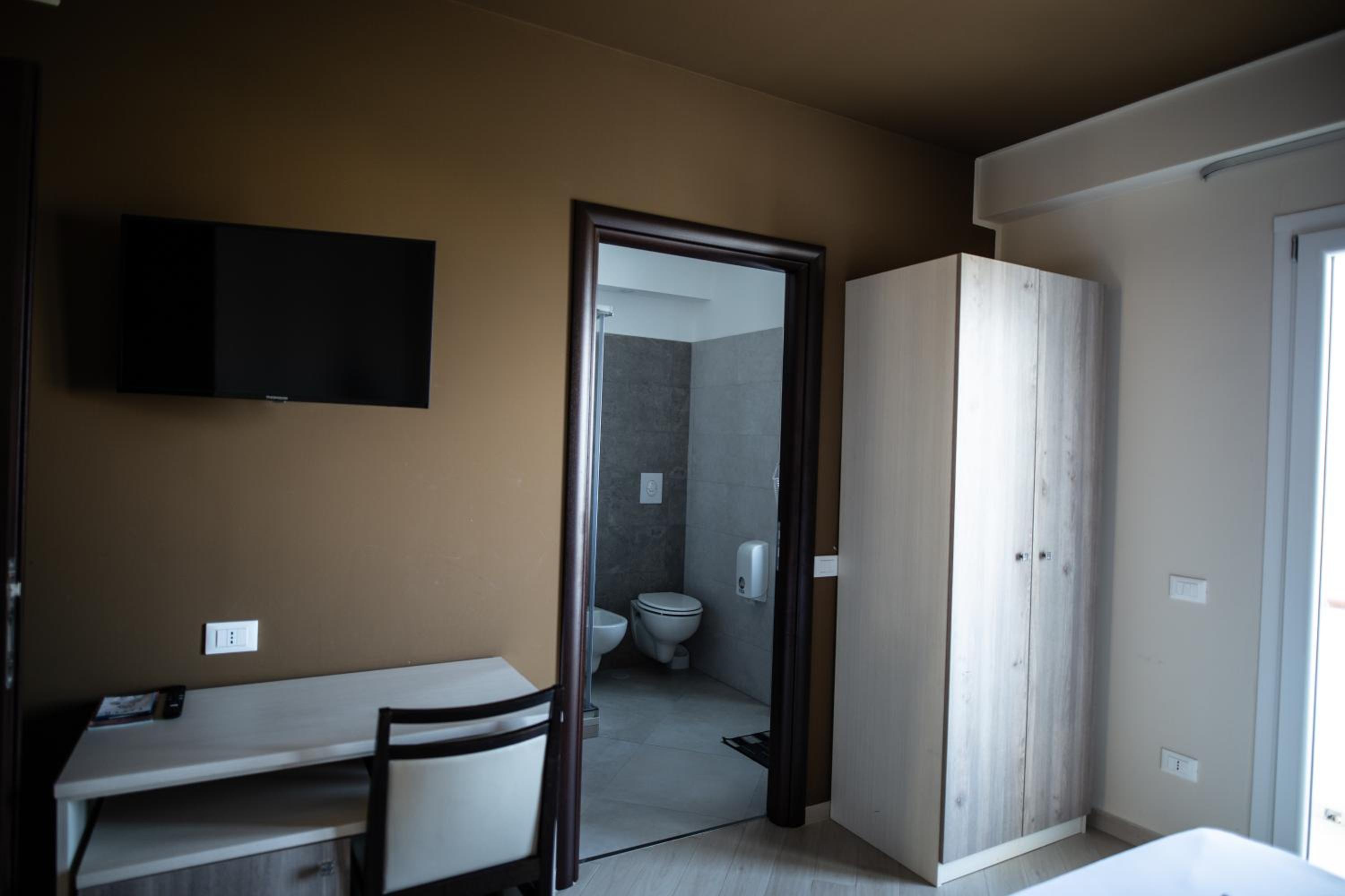 camere recentemente ristrutturate. arredamento moderno e con tutti i servizi. Non molto chiara la divisione tra bar hotel all'ingresso. Si entra in un bar pasticceria e in un angolo c'è la reception con la relativa confusione che si crea. molto utile il parcheggio anche se non comodissimo essendo dalla parte opposta della strada che è molto trafficata