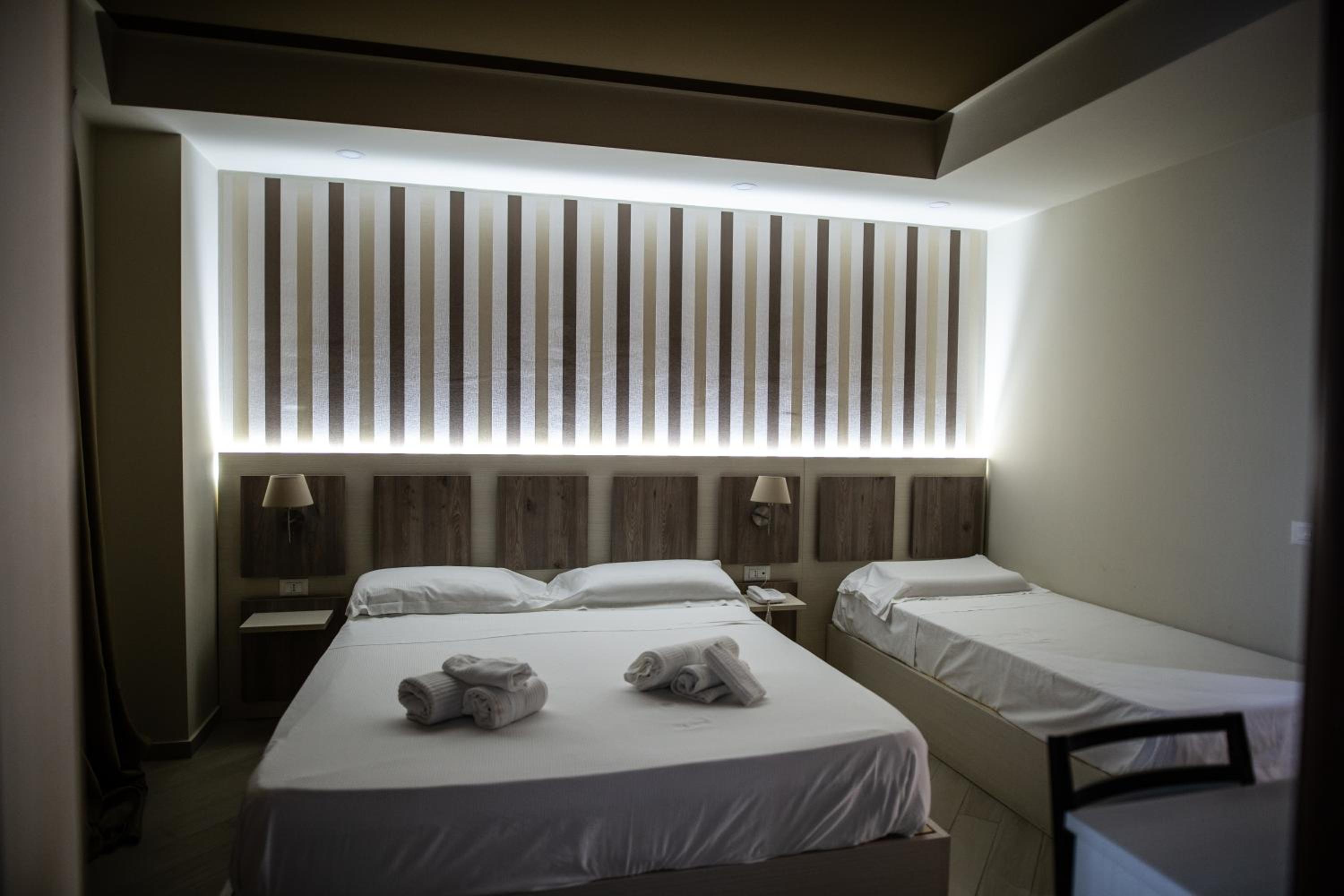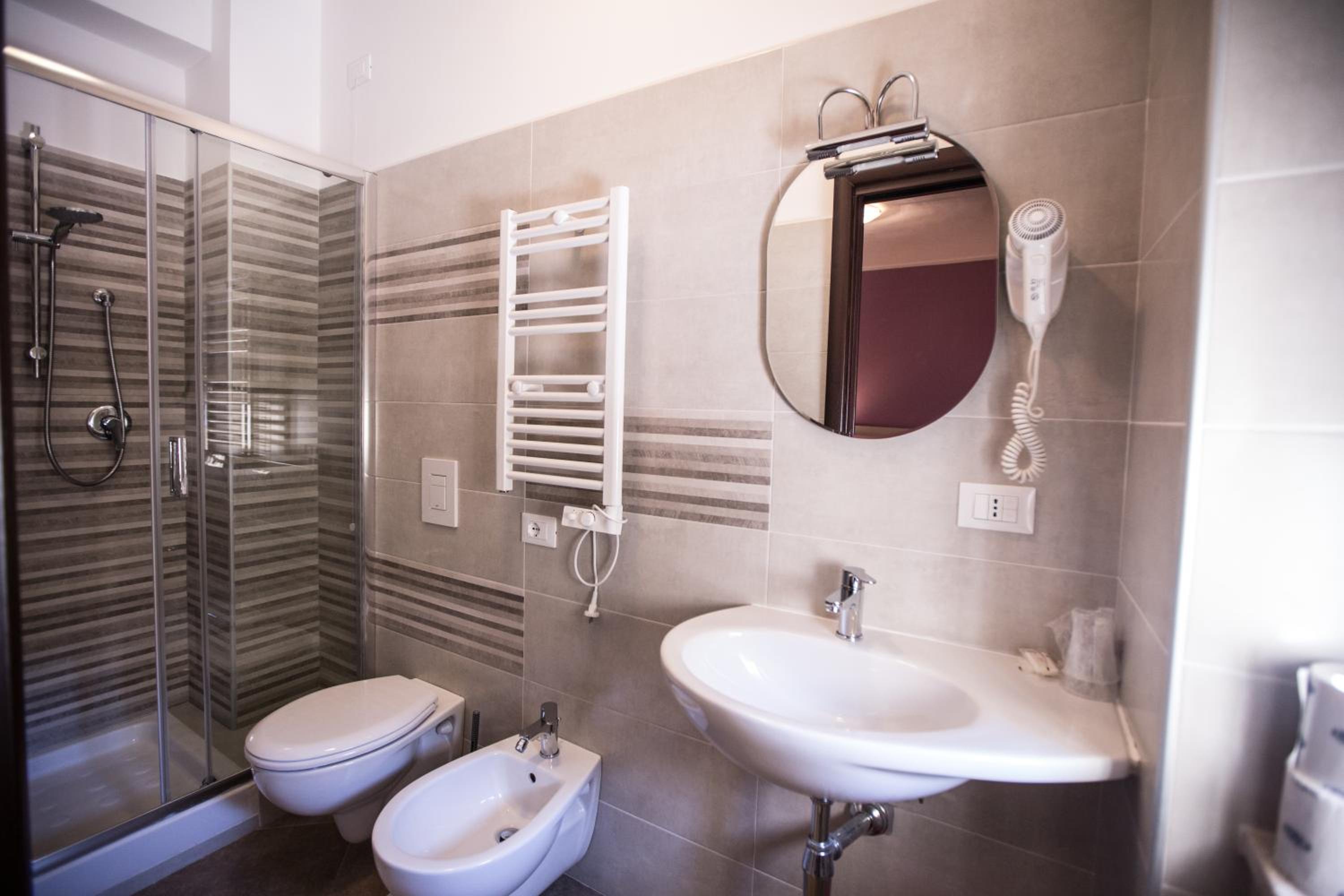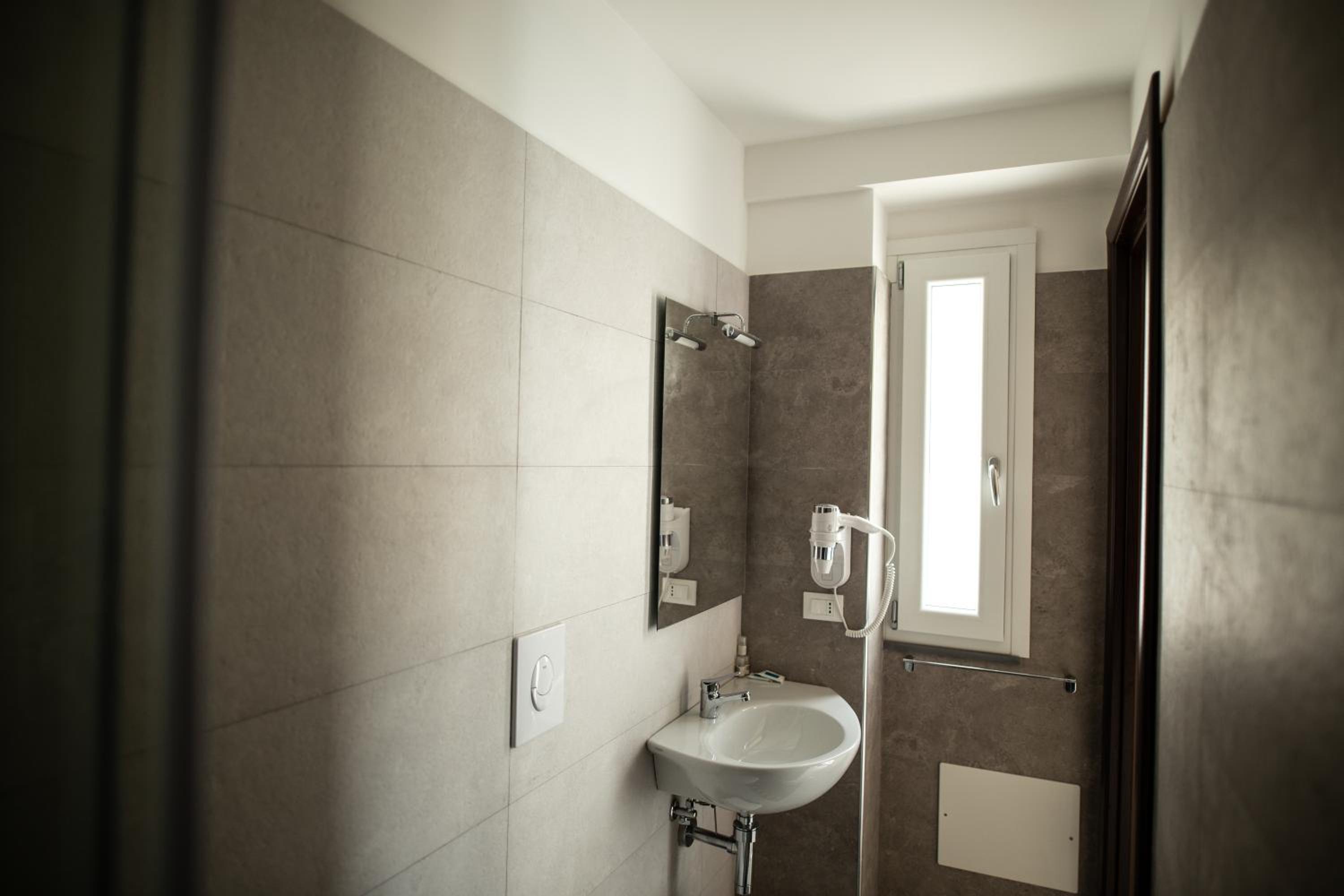 camere recentemente ristrutturate. arredamento moderno e con tutti i servizi. Non molto chiara la divisione tra bar hotel all'ingresso. Si entra in un bar pasticceria e in un angolo c'è la reception con la relativa confusione che si crea. molto utile il parcheggio anche se non comodissimo essendo dalla parte opposta della strada che è molto trafficata
