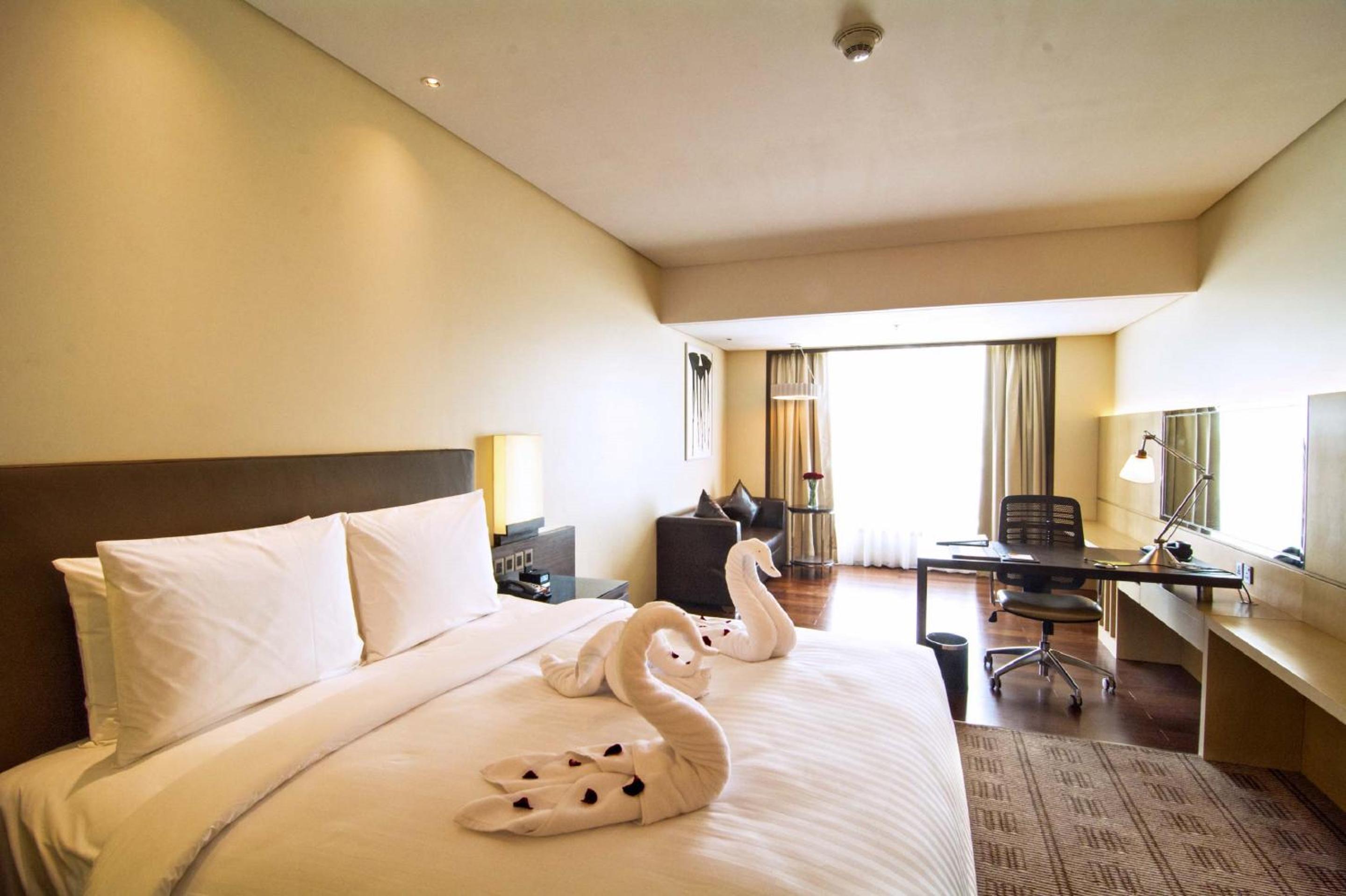 Experience modern air-conditioned rooms with flat-screen TVs, comfortable seating areas, and minibars. The private bathrooms are equipped with premium amenities for your comfort.