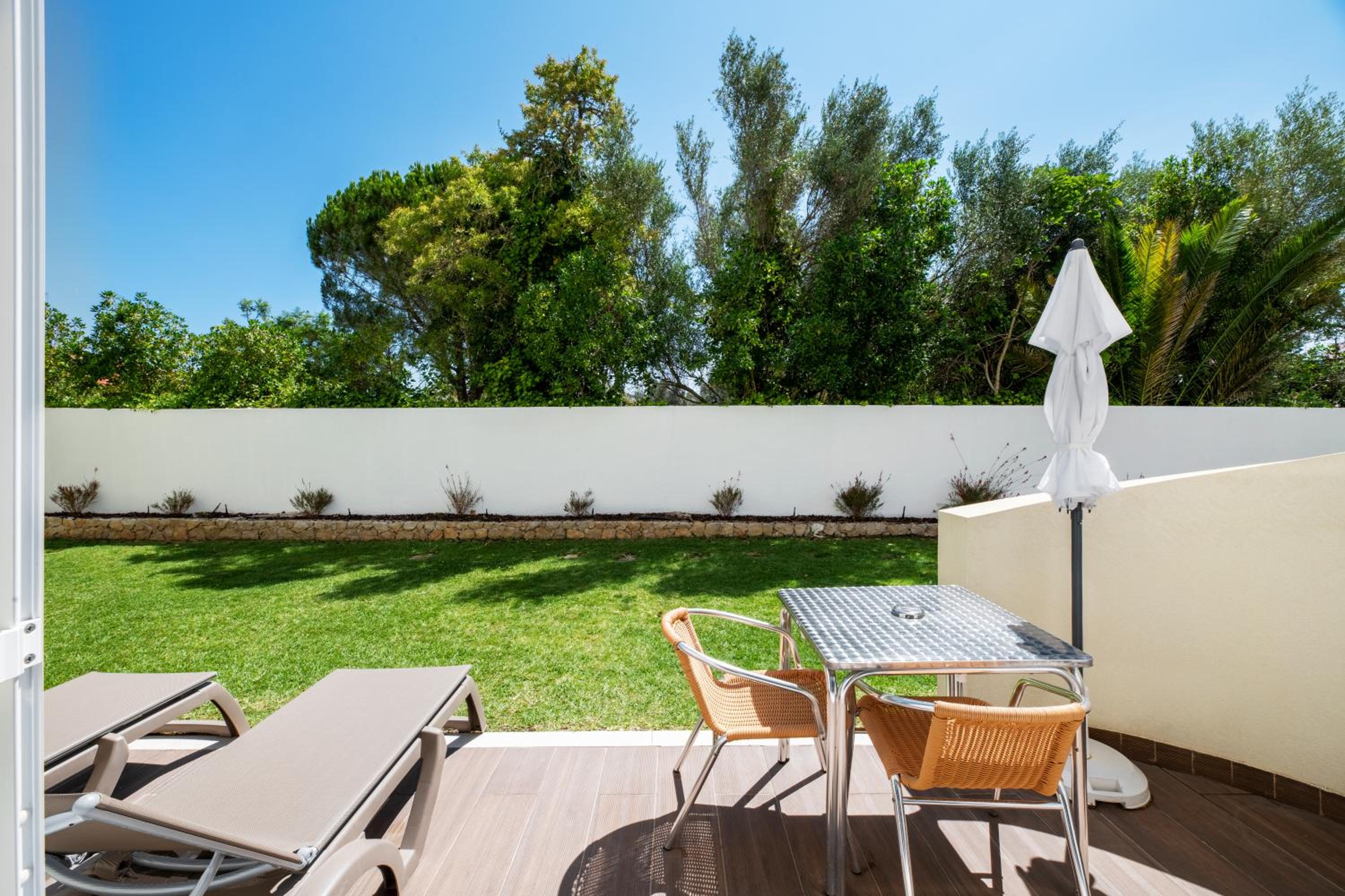 Indulge in snacks and beverages at the poolside bar or explore nearby restaurants and bars within a short walk. The small garden with sun loungers and a children’s play area provide additional leisure options.