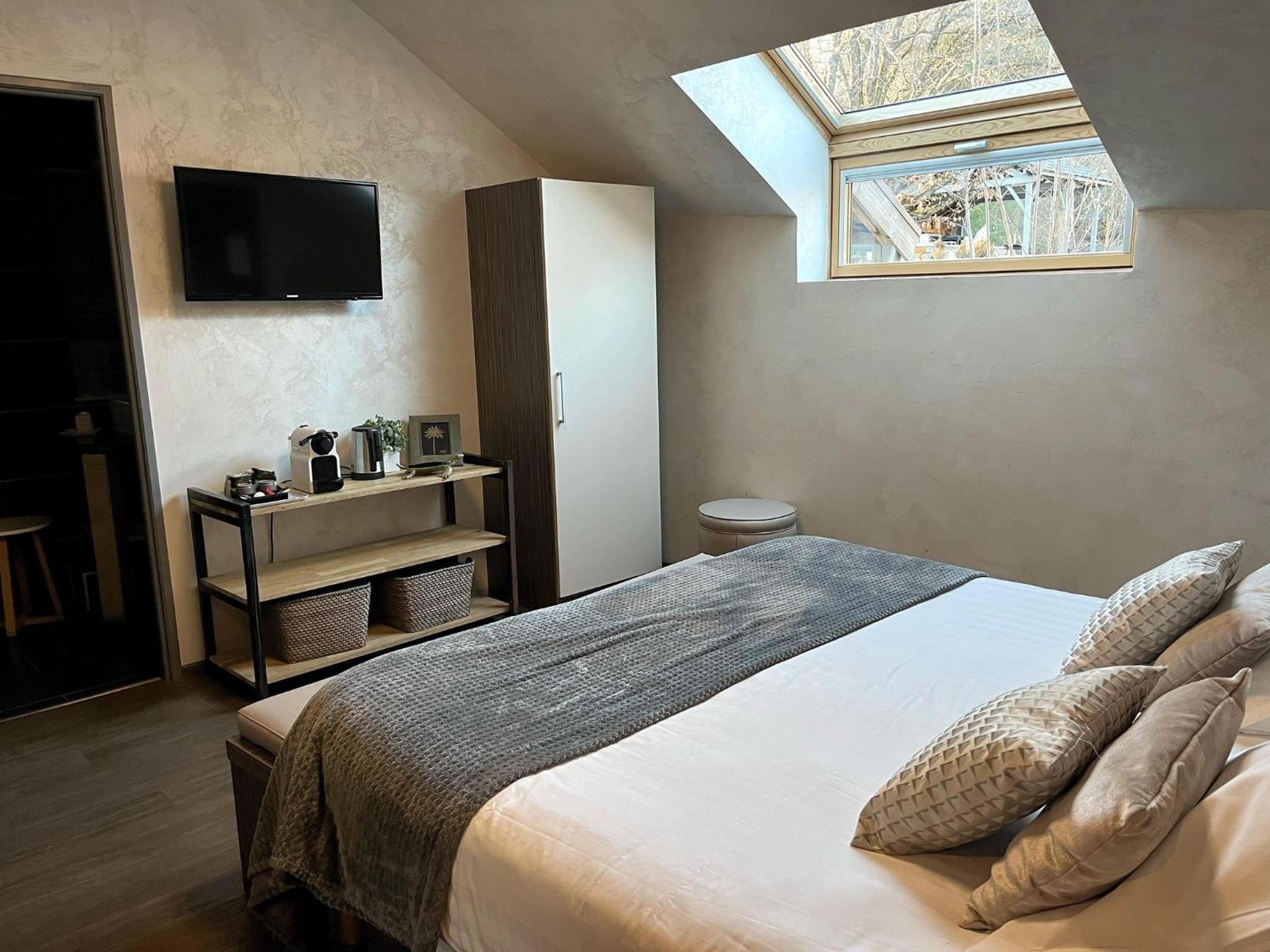 Indulge in the contemporary styled rooms at Les Olivades, complete with LCD TV, air-conditioning, and complimentary minibar.