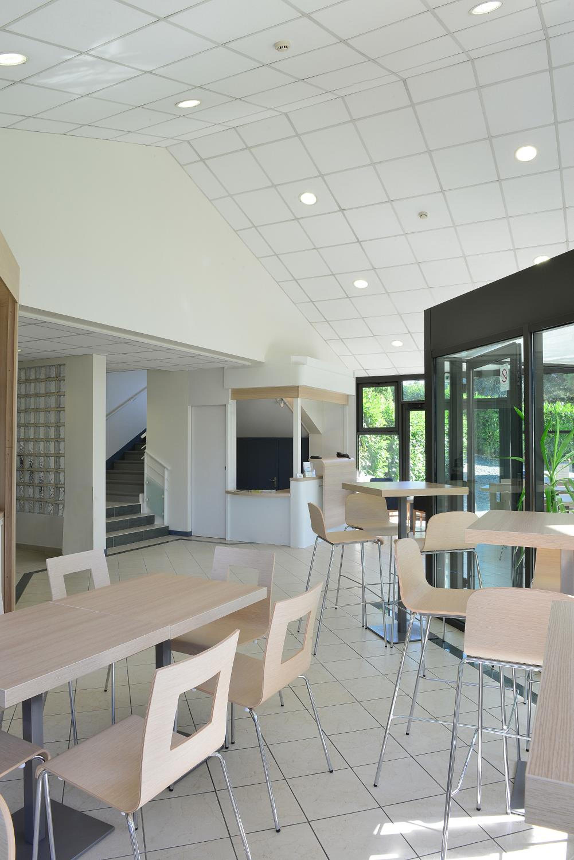 Un confort et un ameublement d'un autre age, faux plafond en dalle avec lumière intégrée, une salle d'eau digne du camping des flots bleus, la moquette design et le coup de peinture ne suffisent pas à masquer une conception datée.