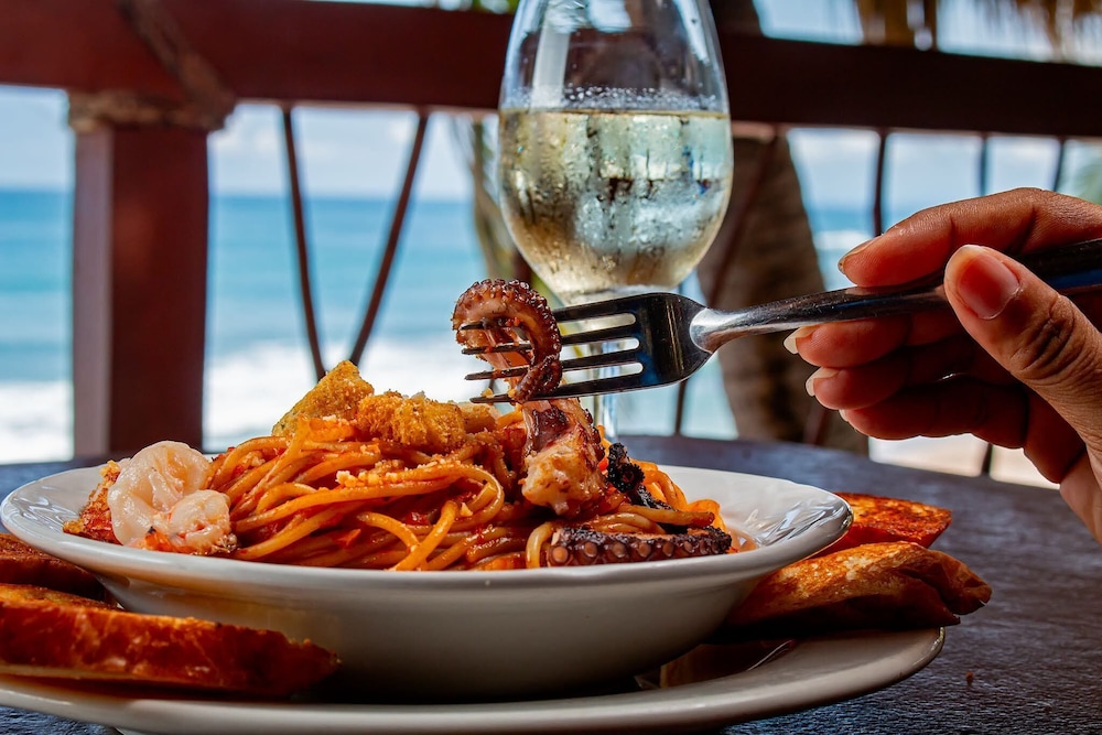 Indulge in ocean-view dining at the beachfront restaurant, or enjoy the convenience of room service available during limited hours.