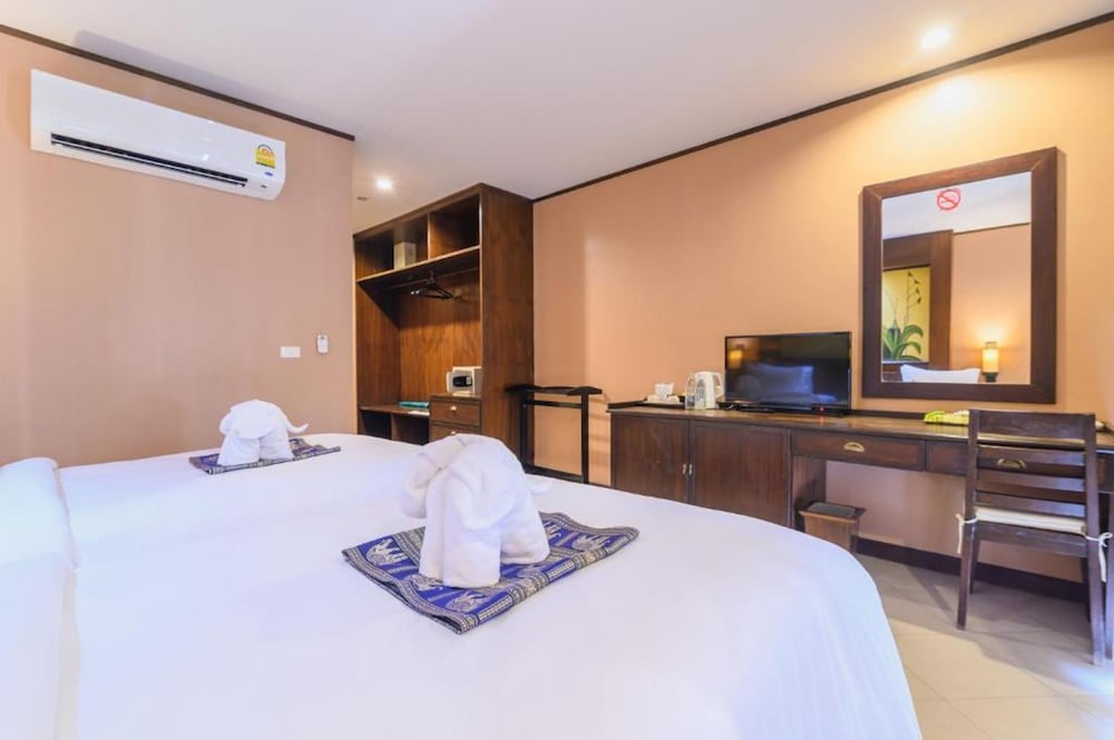 Vi var en familie på 7. Fra 12 år til 74 år. Greit hotell og sentralt. Ok, hotellfrokost. Hotellet ligger 4 min fra Katastranden. Foran hotellet er det et matmarked hvor du får kjøpt Thaimat. God mat og ingen ble syke. Stranden er fin, men lite med solsenger.
