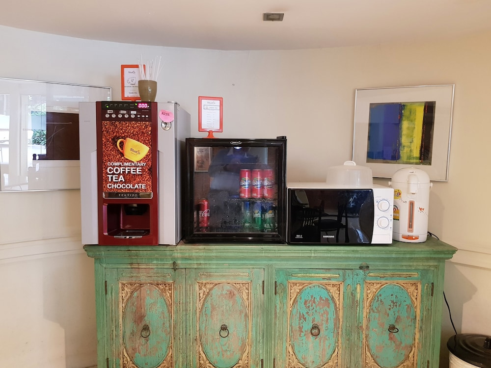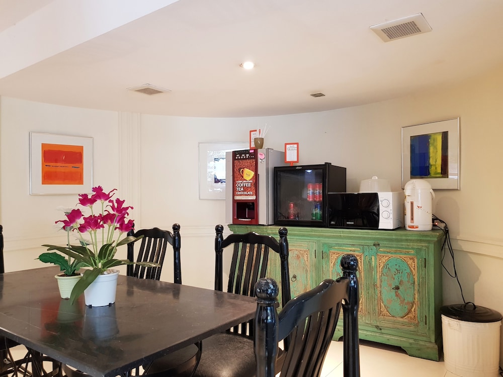 Basic room. Quite dated and ageing. Clean enough but falling apart a bit and the bathroom is a bit grimey. For the price it'll do for a night. Lowest price I found in the area so I can't complain but did find much nicer budget hotels in the area priced fractionally higher. Far from the main road and SkyTrain. A good 15min walk. There's free instant coffee in the lobby and a microwave to use. Helpful and friendly staff.