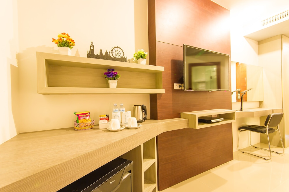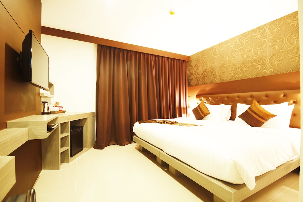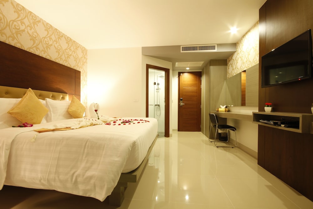 This hotel is in a great central position but if you are a beach lover it is about a eight to ten minute walk to patong beach. Close to Jungceylon shopping centre and very close to the Banzaan market where it is a seafood lovers paradise at night time. The hotel is spotlessly clean and the rooms are quite large and very quiet at night time. There is a rooftop bar and swimming pool and a restaurant on the grand floor. The staff are just wonderful. I will definitley stay here again.