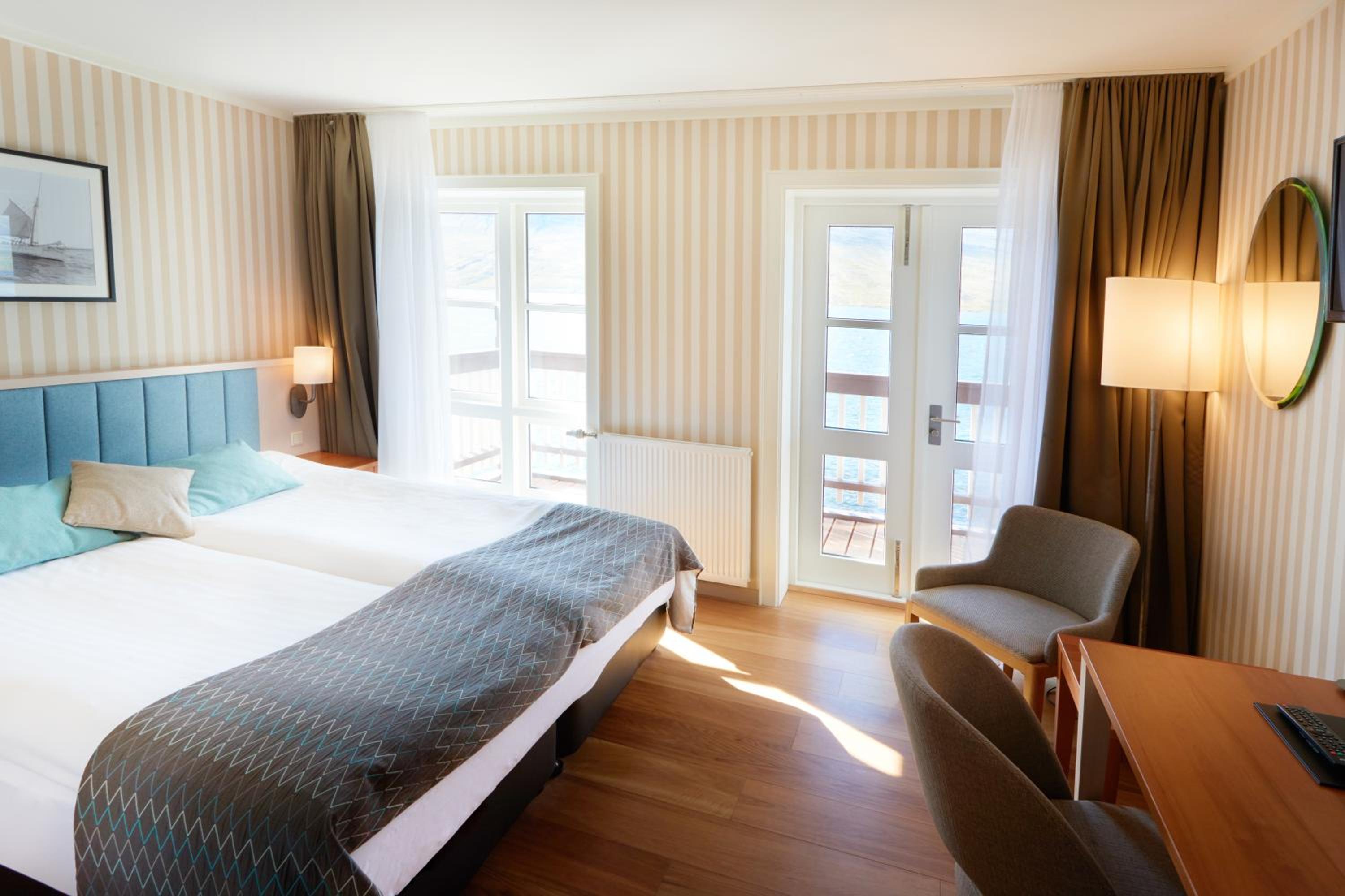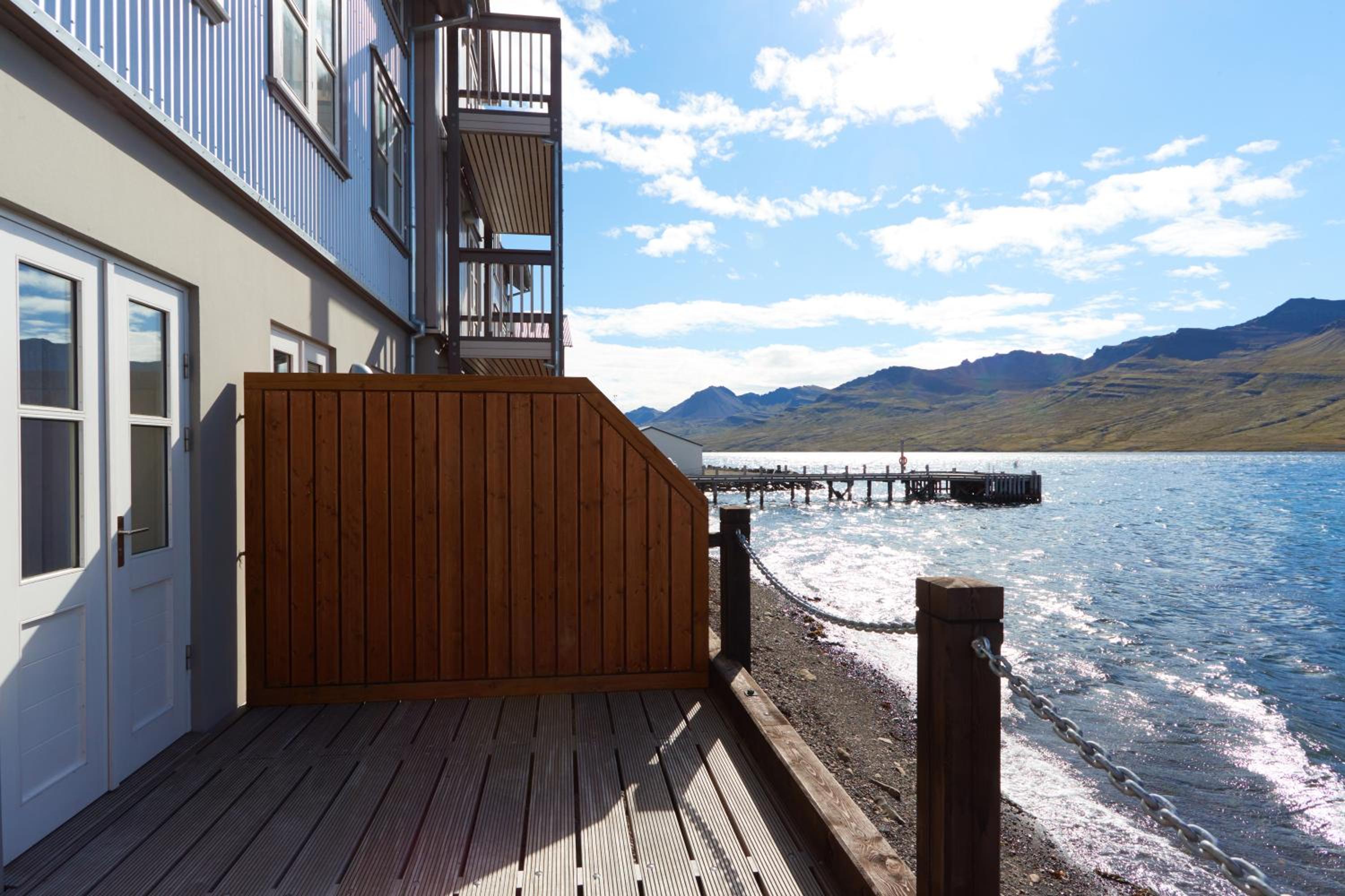 Ci hanno fatto gratuitamente un upgrade e ci hanno dato una camera splendida con terrazzino sulla spiaggia a pochi metri dall'acqua del fiordo. L'albergo ha al suo interno il French Museum che abbiamo potuto visitare gratuitamente anche se avrebbe dovuto essere chiuso in questo periodo in quanto ospiti dell'hotel. Il personale, gentilissimo, ci ha fornito consigli utili su che cosa vedere nei giorni successivi. La cena è stata molto soddisfacente anche se un po' caruccia (ma è il primo posto in Islanda dove ho visto servire pane a volontà di accompagnamento al pasto). Colazione molto buona, ottimi i croissant.