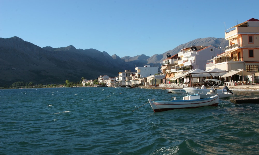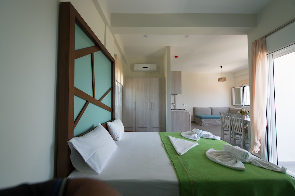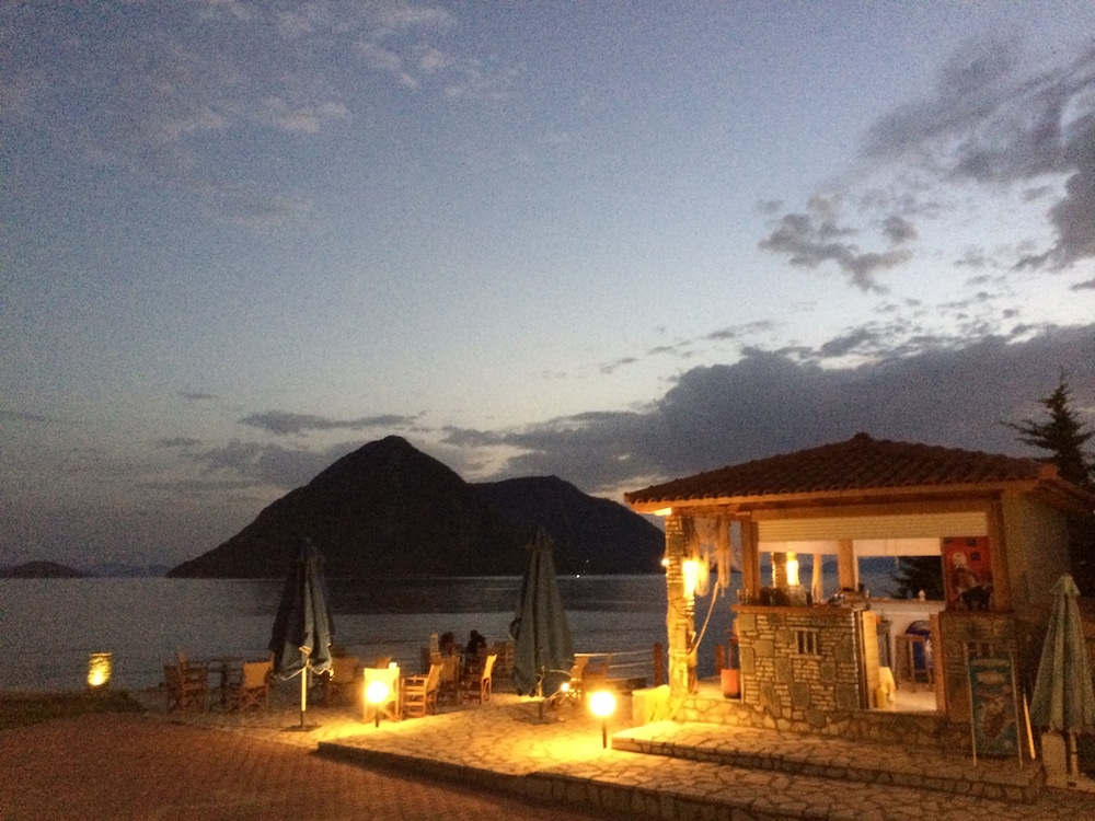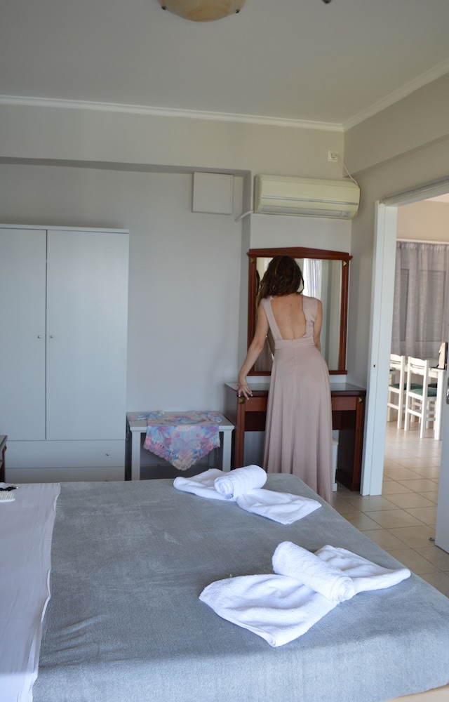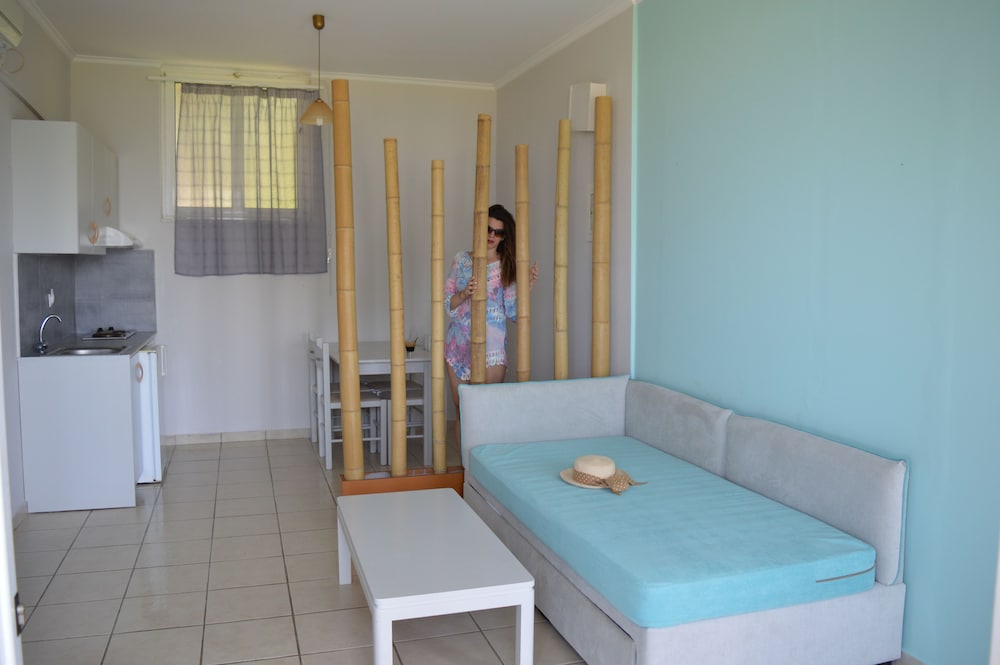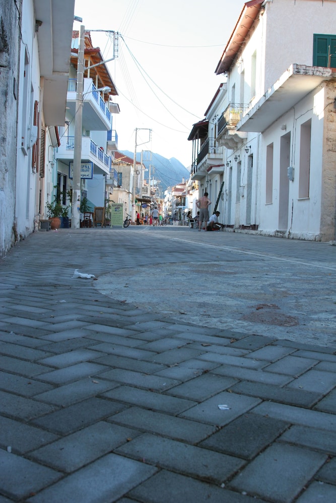 Nice place, 2-3km out from Mytikas, beach only a few meters away, the hotels care-taker/cleaner Honey, speaks great English he was very helpful otherwise communicating with hotel staff a problem... if one wants a more remote apartment near the beach and very little else around its a great place to unwind, quiet and clean...! would be great if sign on the road was also in English.. for the non Greek tourists, a challenge to locate.... We would return