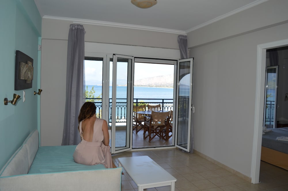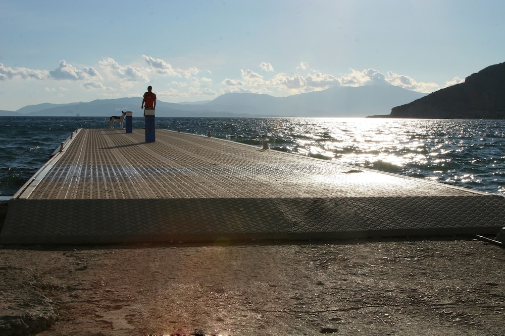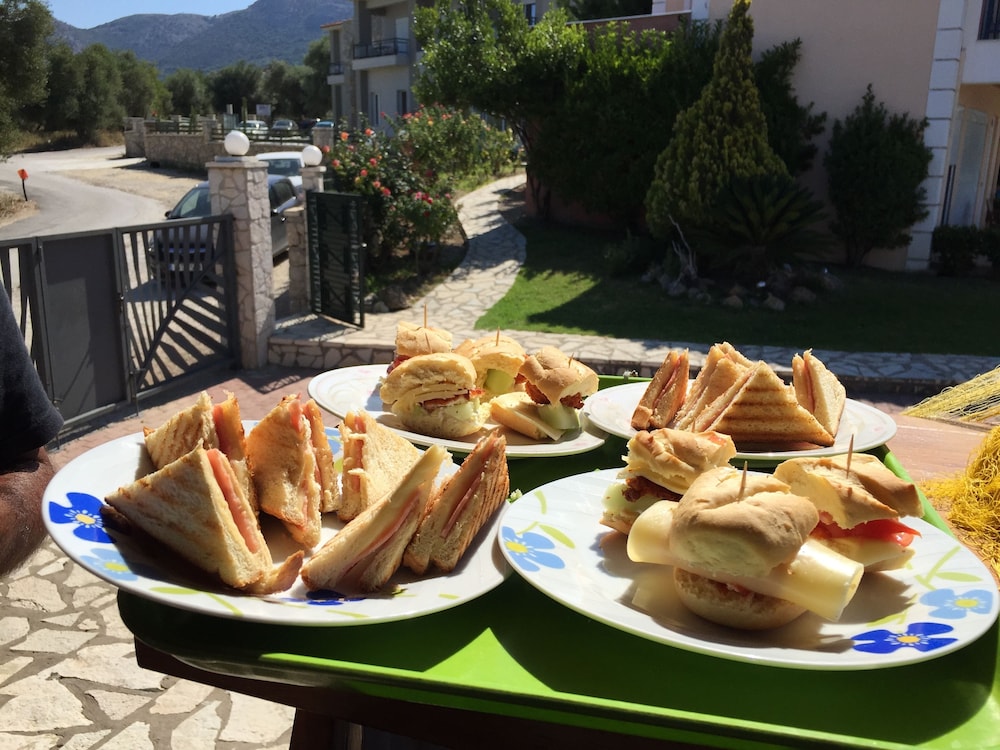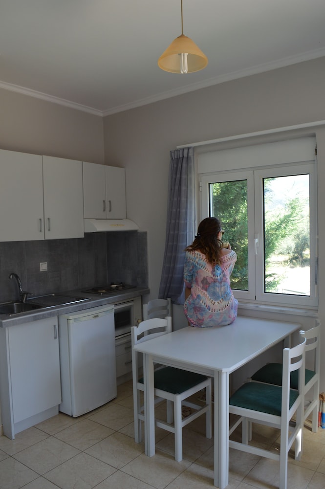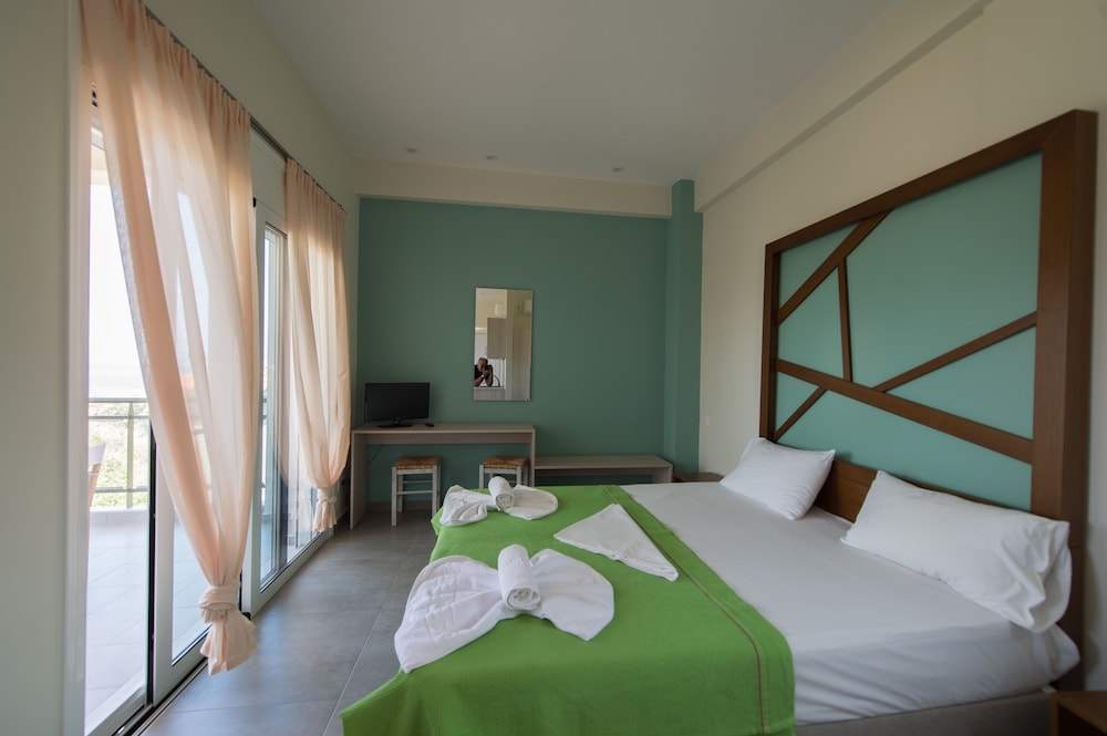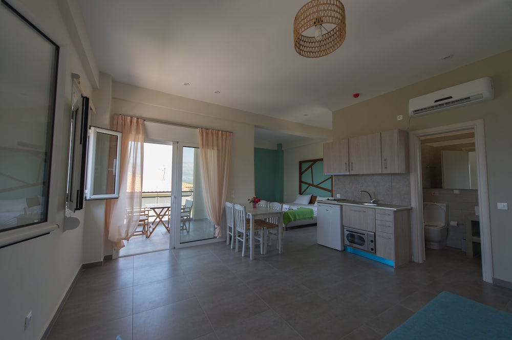Nice place, 2-3km out from Mytikas, beach only a few meters away, the hotels care-taker/cleaner Honey, speaks great English he was very helpful otherwise communicating with hotel staff a problem... if one wants a more remote apartment near the beach and very little else around its a great place to unwind, quiet and clean...! would be great if sign on the road was also in English.. for the non Greek tourists, a challenge to locate.... We would return