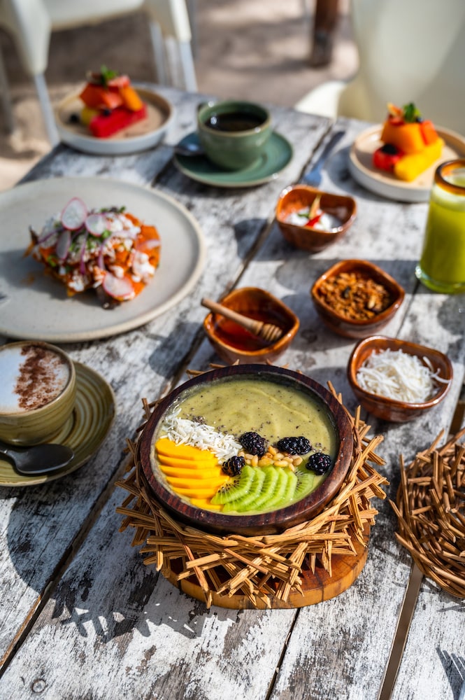 Savor international cuisine at our beachfront restaurant, Lido, or indulge in room service during limited hours. Don't forget to enjoy a refreshing drink at our vibrant bar/lounge or beach bar as you relax by the shore.