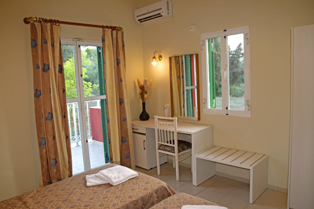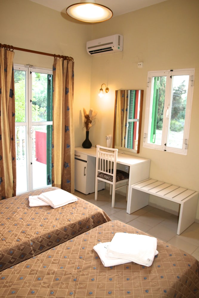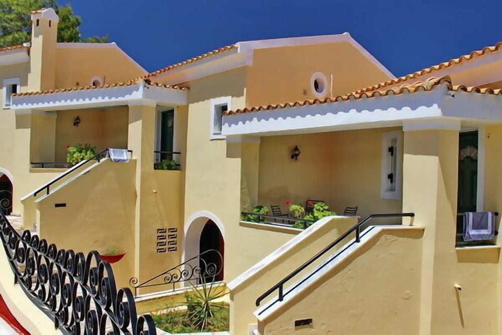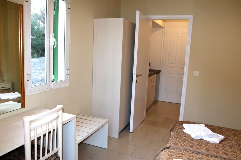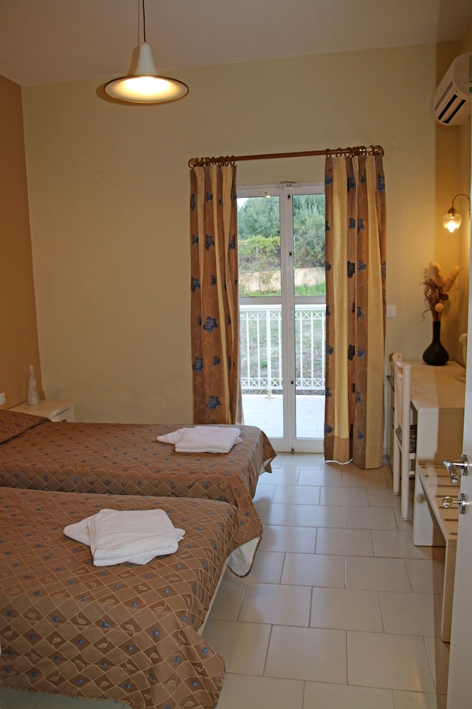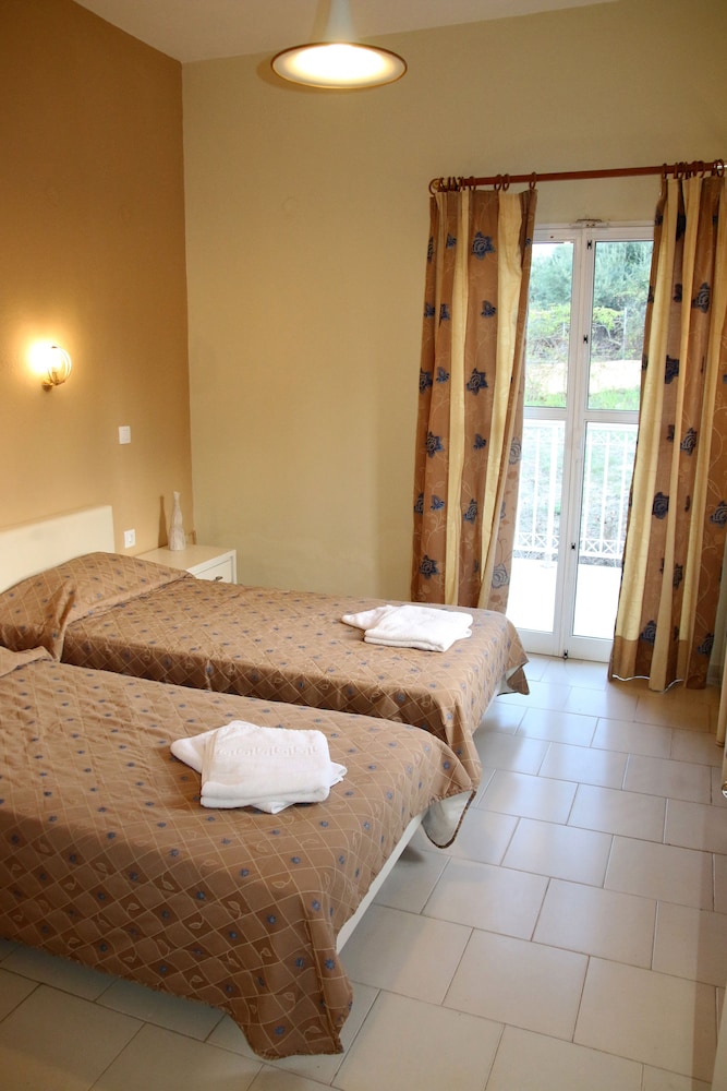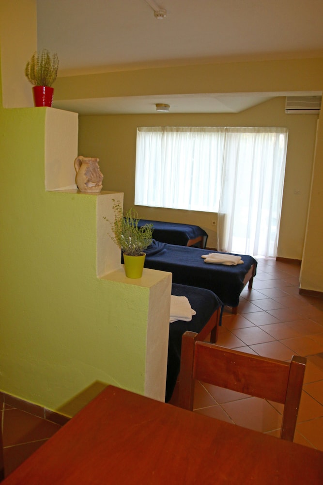 Il residence si trova sulla punta dell'isola, vicino al vivace paesino di Kavos, ma abbastanza lontano per godere la tranquillità e il riposo. È un struttura ben organizzata di appartamenti compresi di piccola cucina frigo microonde e piastre, un patio davanti e un giardino dietro dove fare colazione e se si vuole pranzare e cenare. Il giardino è ben curato e le stradine interne sono di pietra e portano nei vari appartamenti e si snodano tra le due piscine. Il ristorante è il bar (un lungo bancone che da sulla piscina all'entrata) sono sempre aperti e il cibo è ottimo, anche i cocktail sono ben fatti. Il personale è esattamente carino e gentile. Lo consiglio vivamente.