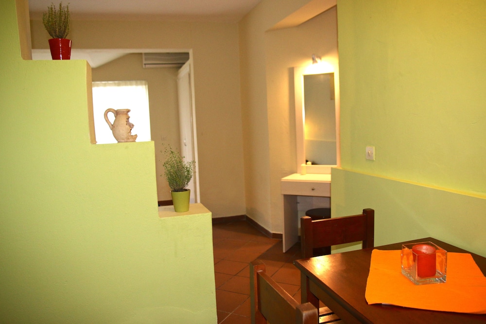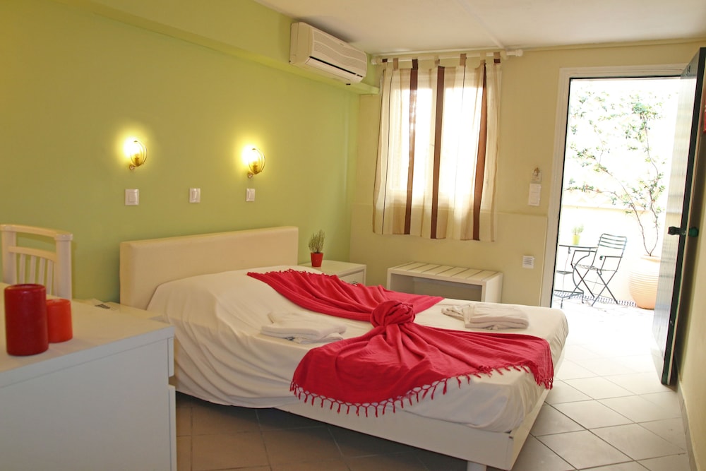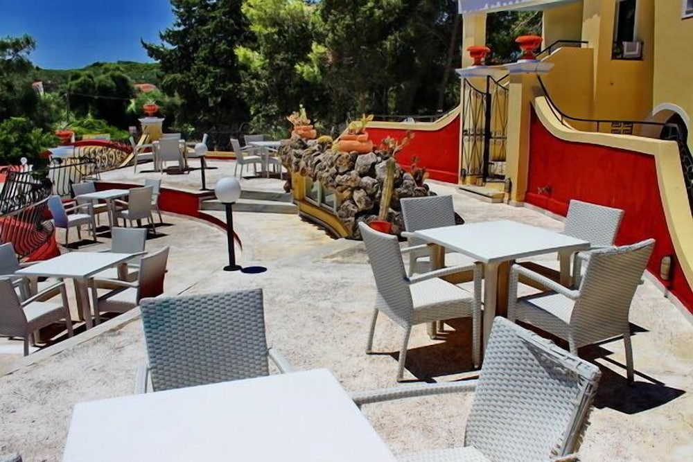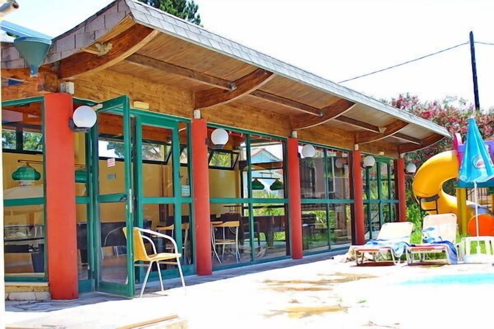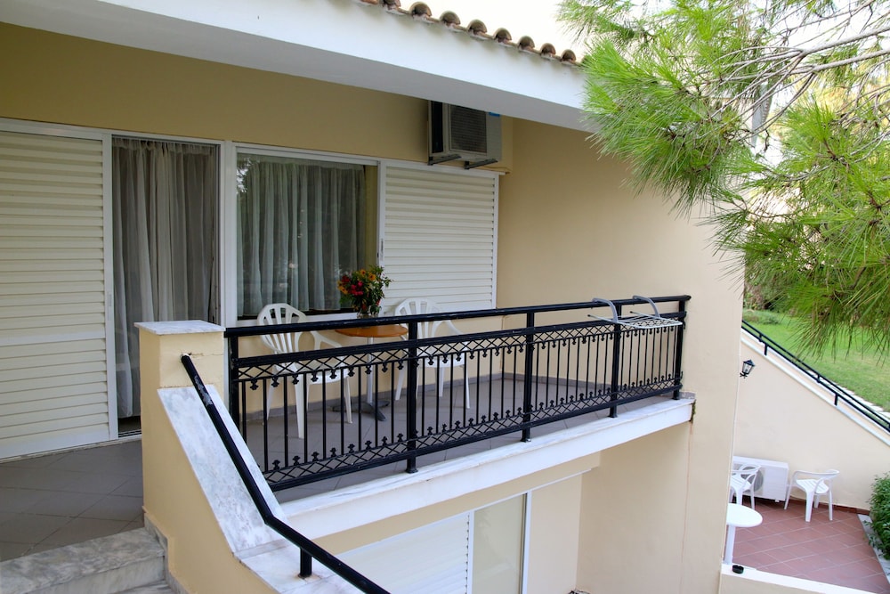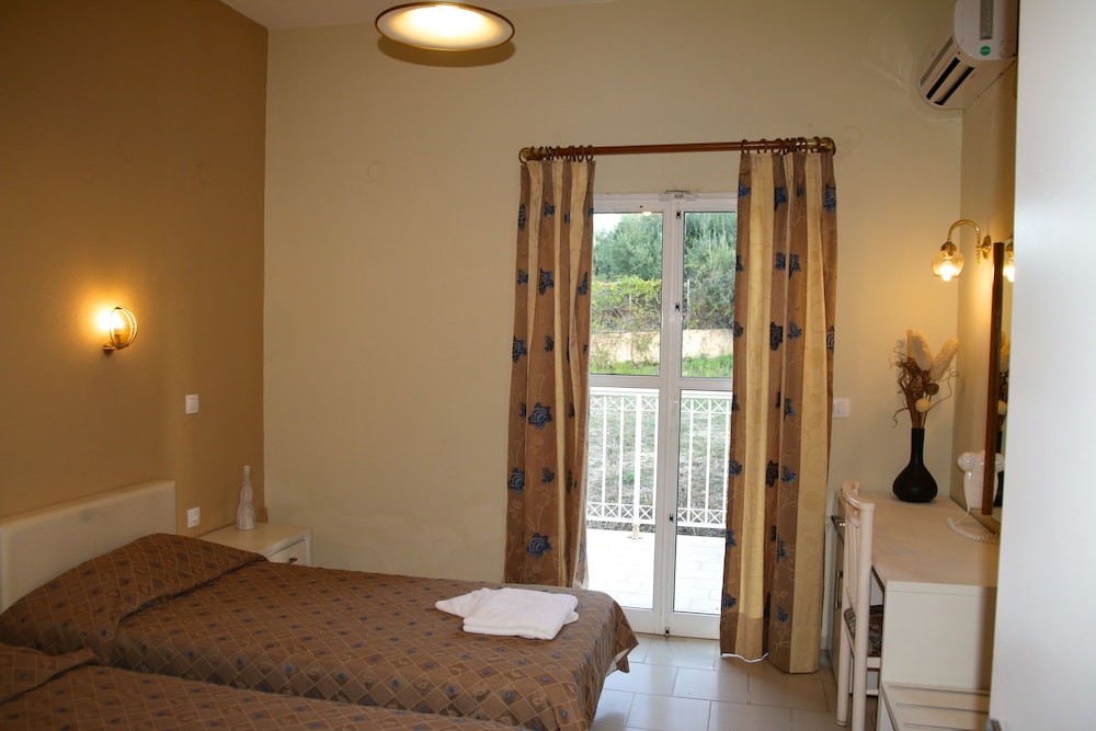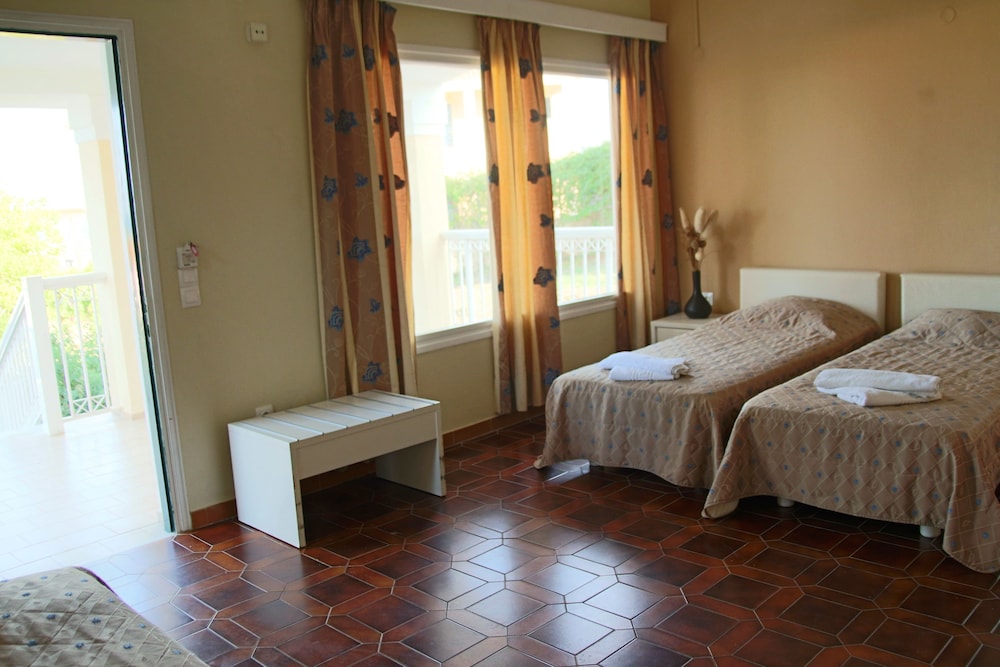 Il residence si trova sulla punta dell'isola, vicino al vivace paesino di Kavos, ma abbastanza lontano per godere la tranquillità e il riposo. È un struttura ben organizzata di appartamenti compresi di piccola cucina frigo microonde e piastre, un patio davanti e un giardino dietro dove fare colazione e se si vuole pranzare e cenare. Il giardino è ben curato e le stradine interne sono di pietra e portano nei vari appartamenti e si snodano tra le due piscine. Il ristorante è il bar (un lungo bancone che da sulla piscina all'entrata) sono sempre aperti e il cibo è ottimo, anche i cocktail sono ben fatti. Il personale è esattamente carino e gentile. Lo consiglio vivamente.