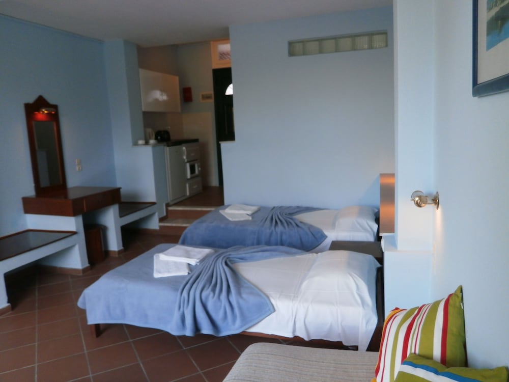 Excellent stay, the Annex room was very modern and spacious, with good access to the beach and hotel facilities. The hotel restaurant was excellent with home-cooked food and traditional Greek options available. Service could be slow at times and wasps in the eating area were an unwelcome nuisance. We stayed full board and were glad we did. Breakfast excellent. Greek theme night brilliant. Hotel seemed to be a bit under-staffed but not sufficient to spoil our stay