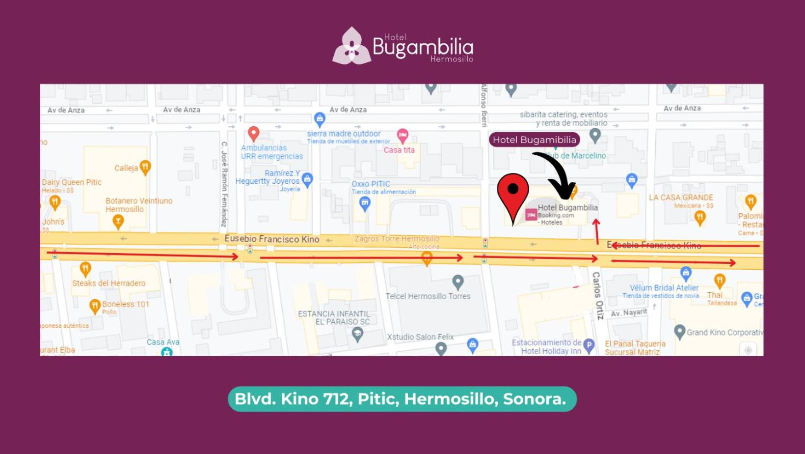 Hotel Bugambilia is strategically situated in the heart of Hermosillo's hotel area, just a short 20-minute drive from both the Expo Forum and the airport.