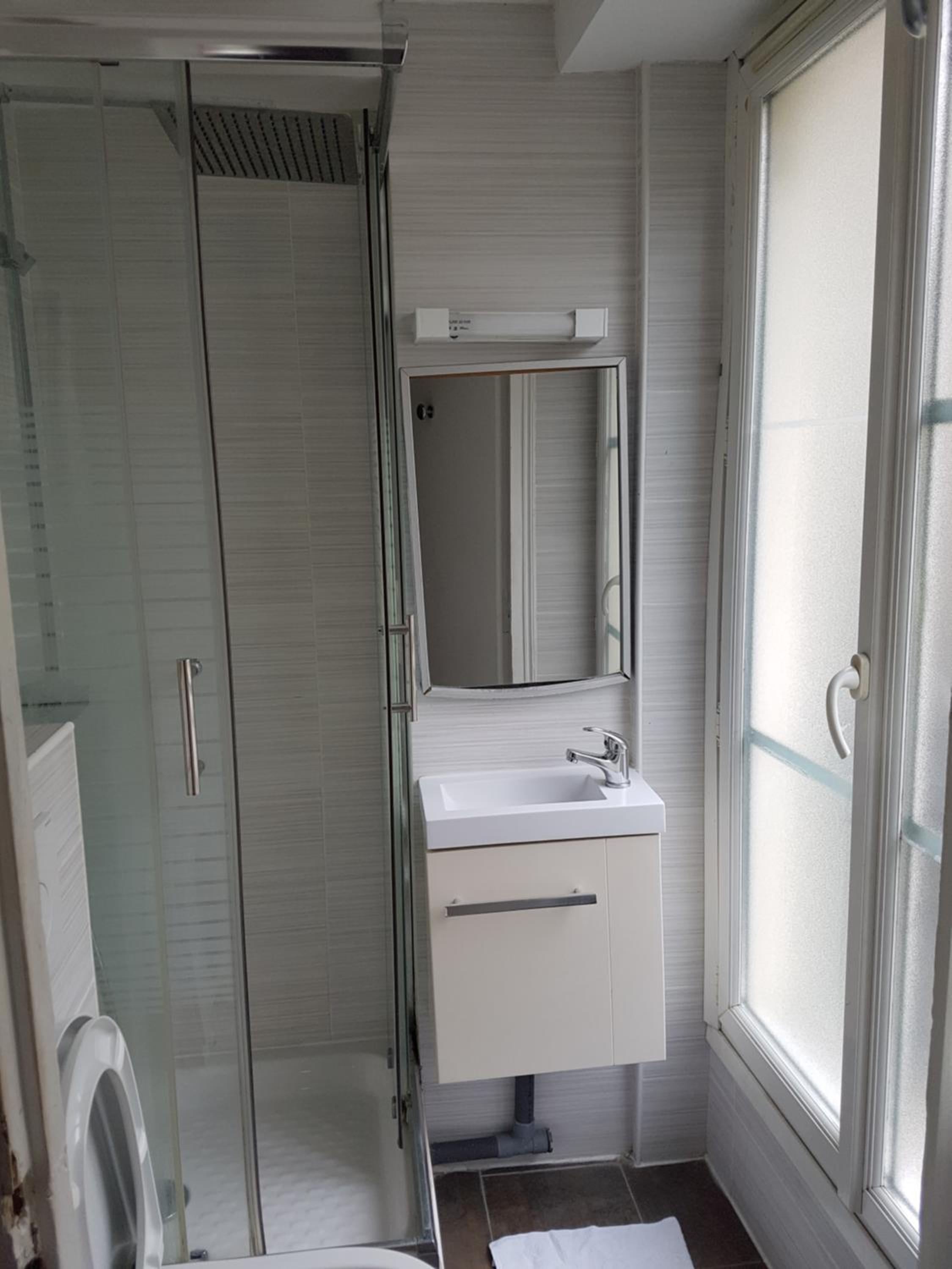 Great location close to the metro, restaurants etc. Specious and well-lit rooms.
