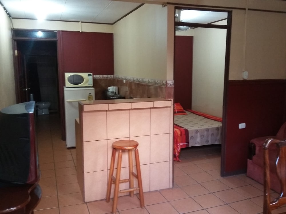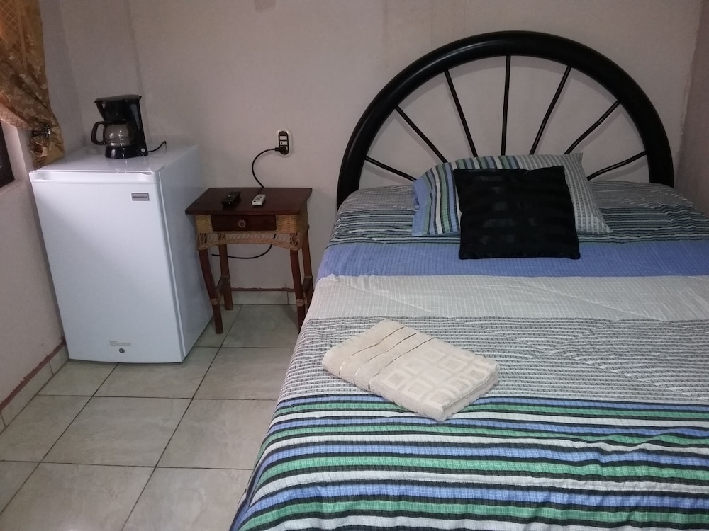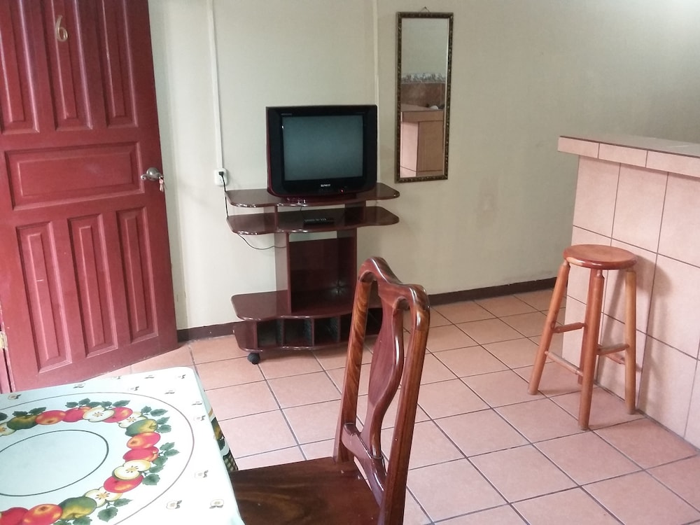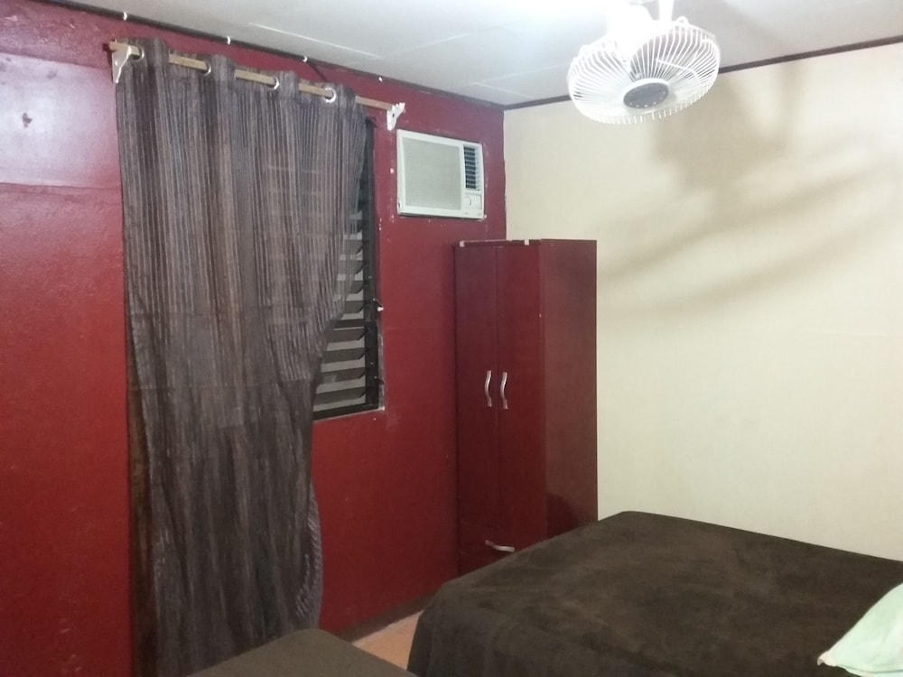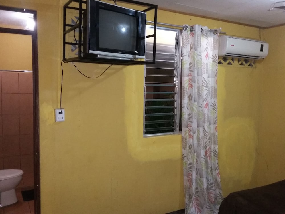 Property was easy relatively easy to find. We drove from the SJO airport. Does have air conditioner which was very necessary as it was about 100F heat index. I did not use the TV. Wifi connection was spotty. Place was quite noisy. People living on the property play their music loudly in the evening. Loud talking and laughing. Property was also right off the main road. Truck traffic added to the noise. I did not use the pool. Close to ferry. Have to operate a heavy iron gate to get car into parking area. Basic room.