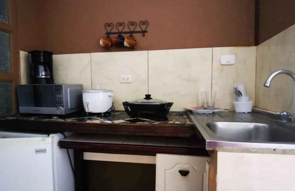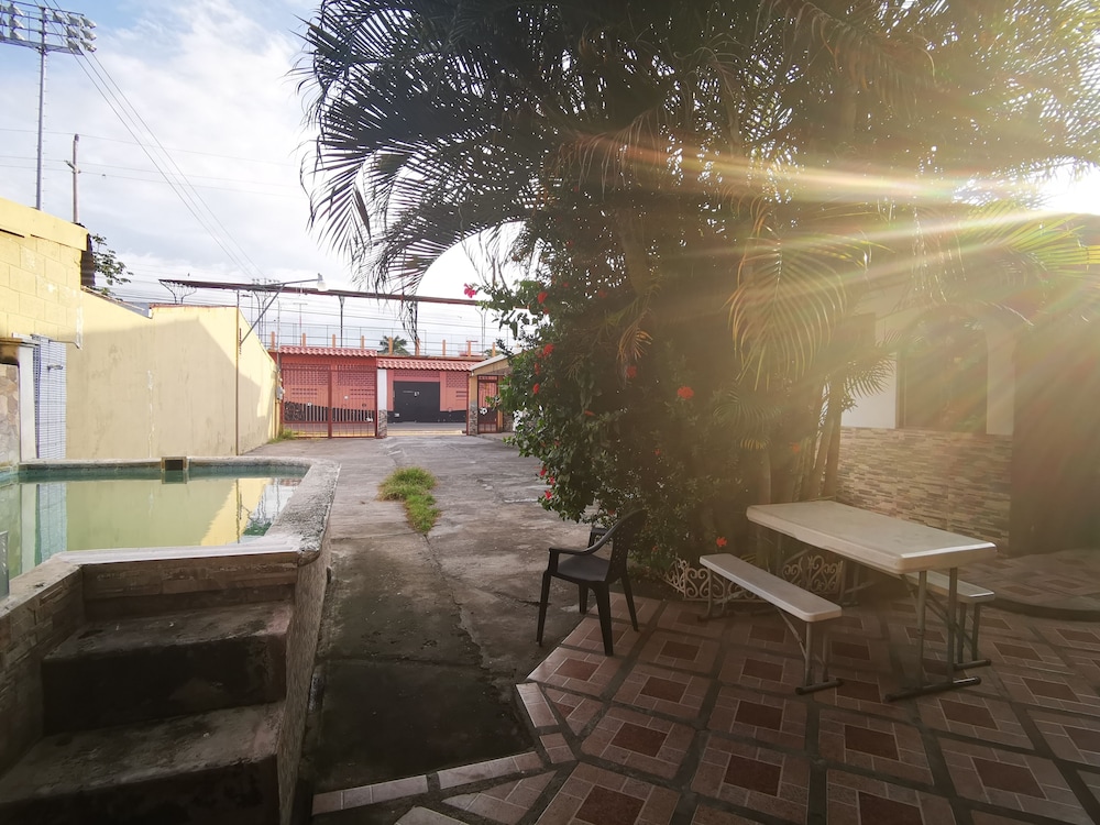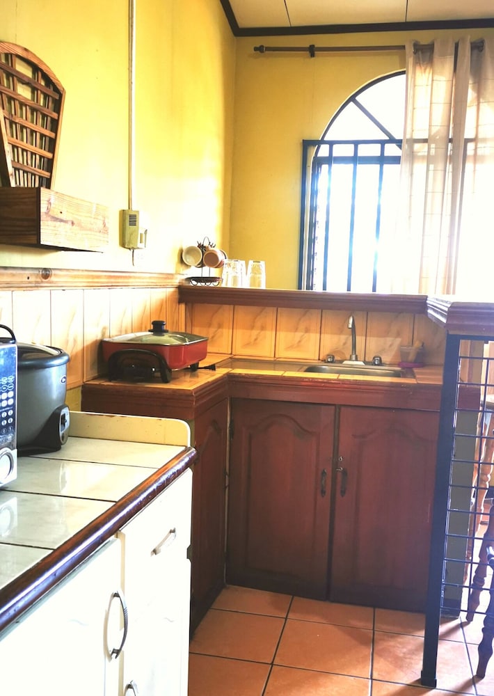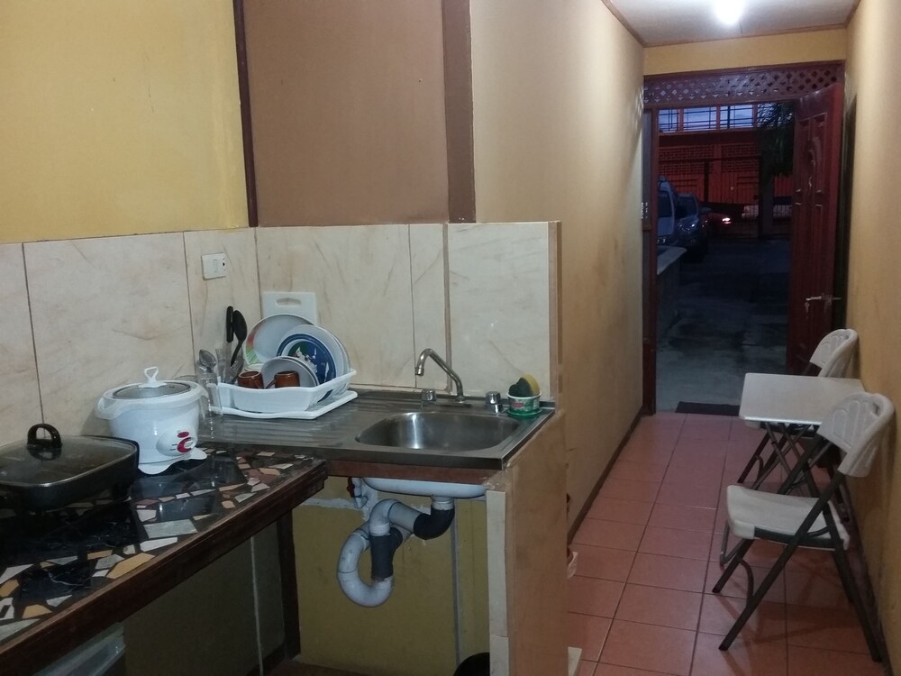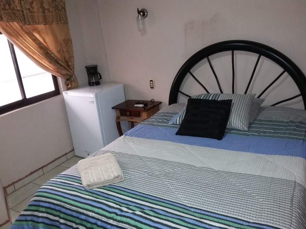 Property was easy relatively easy to find. We drove from the SJO airport. Does have air conditioner which was very necessary as it was about 100F heat index. I did not use the TV. Wifi connection was spotty. Place was quite noisy. People living on the property play their music loudly in the evening. Loud talking and laughing. Property was also right off the main road. Truck traffic added to the noise. I did not use the pool. Close to ferry. Have to operate a heavy iron gate to get car into parking area. Basic room.