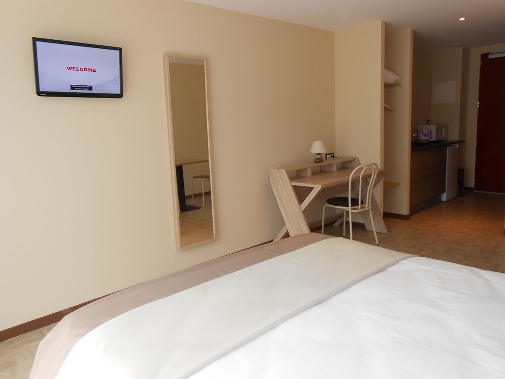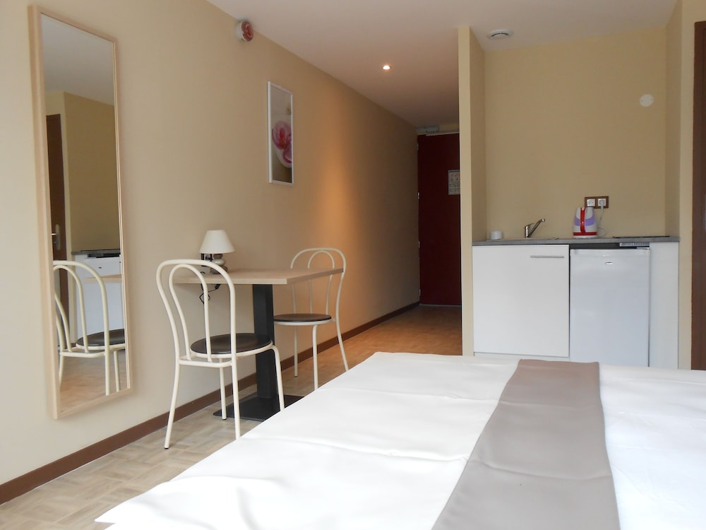This is a story rather than a review. We found a parking slot, and then we headed to reception. There was no-one there, but I learned that the 'gardien' (caretaker, I think, in English) was just coming. He literally rolled up: it was apparent that he was very drunk. He managed to take us to our apartment. This was immaculately clean and well equipped, and I put the experience of the gardien behind me. I saw that the fridge was set to zero, so I turned it on -nothing. So, off I went to the gardien. 'My fridge doesn't work'. He let out an exasperated and alcoholic gasp. 'Well, what can I do for you?' he asked. 'You'll have to get me another room.' More gasping. 'I'll have to ring the boss. I'll come to your room.' Back in the room, the fridge had started to work but no light coming on. I pointed this out to the gardien. 'None of them have lights,' he exhaled upon me. Well, the apartment was very nice. Huge bed. Unfortunately, despite 'no smoking' signs, there was a persistent whiff of cigarette smoke, much to my wife's annoyance. Next issue: despite all my efforts I could not get the electric hob to work. Oh no! Another trip to the gardien. I found him in his own apartment. More huffing and puffing. I couldn't catch all of what he said, but enough to grasp that he was extremely annoyed with me, and close to becoming insulting. The usual , 'What do you want me to do about it?' Then: ''Thank God not all the guests are like you.' At one point I think he actually said, 'if you want this sort of service then go to Campanile.' He reluctantly came to the apartment, and we did get the hob to work. By this stage, the whole thing was comical, and I just took it as an entertainment. I confess to quite enjoying it all. However, it did occur to me that if something terrible happened (a fire, for instance), then the gardien may have been useless.