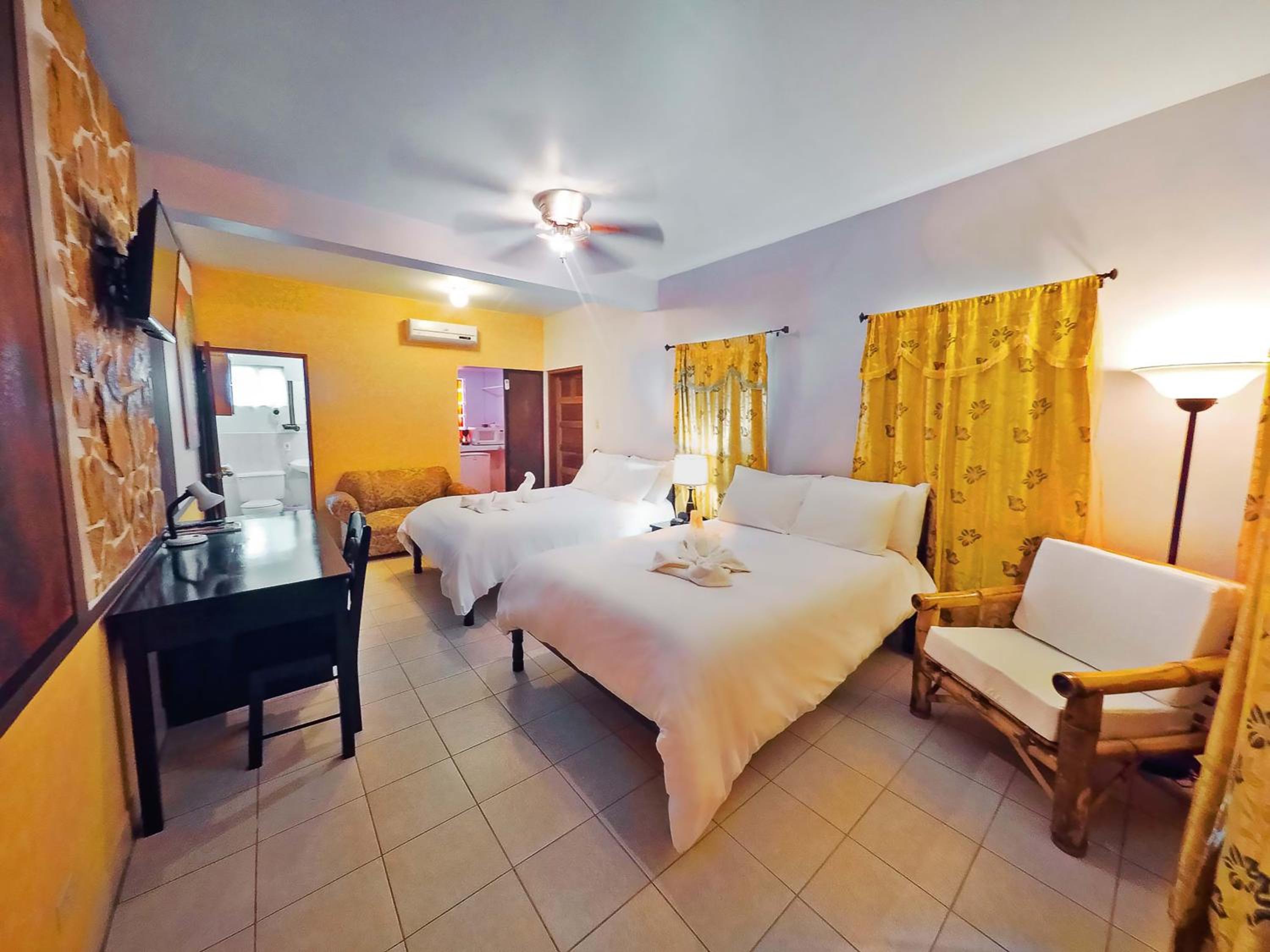 Rooms were excellent, very clean and comfortable. The staff are off the charts friendly and accommodating. The restaurant has great food and very reasonable. The resort recently changed hands and the new owner has really made some great changes. The pool area is large and also has a large kiddie pool next to it. The patio overlooks the mountains and has exceptional views. It’s 5 minutes from the Myan ruins and 10 minutes from the San Ignatio farmers market. This is definitely a place I would recommend to anyone traveling in the San Ignatio area. We loved our stay.