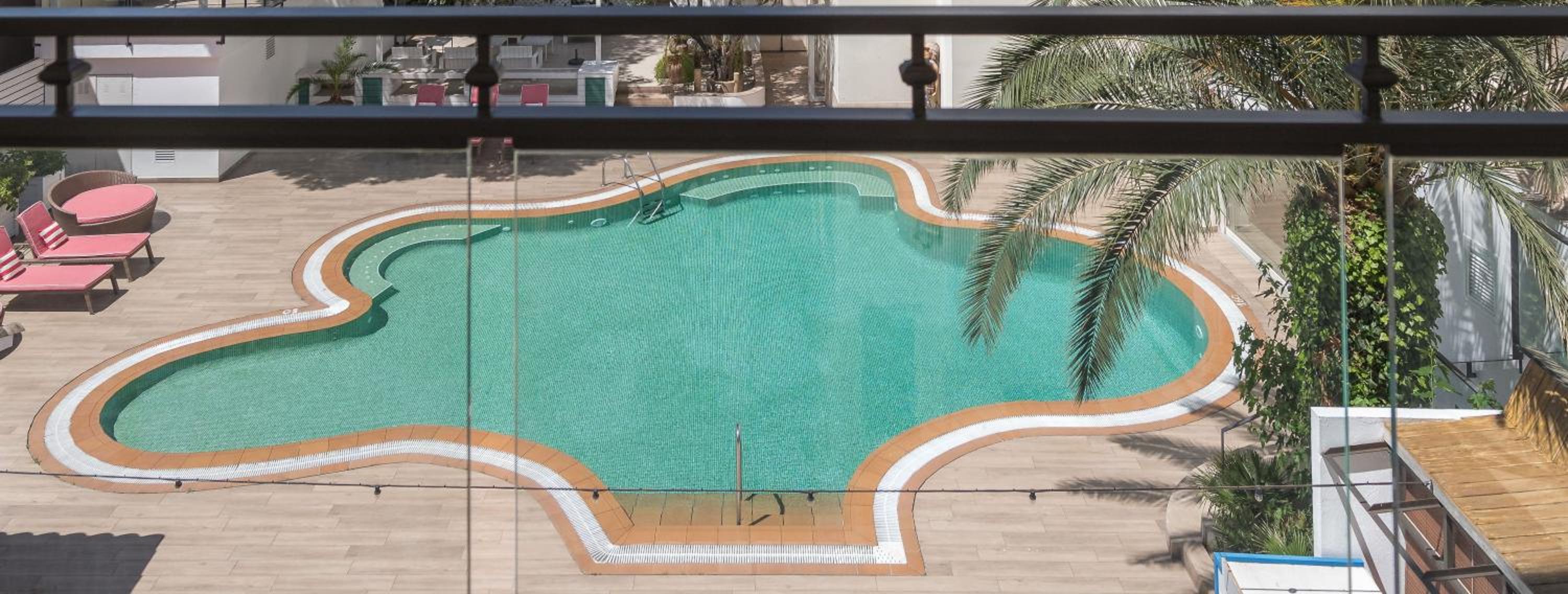 Indulge in the beautiful beachfront location of Palamós Bay and relax by the stunning outdoor pool surrounded by swaying palms.