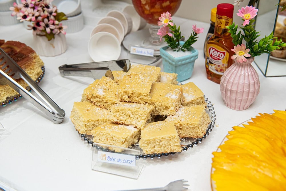 Passamos uma noite em 2 semanas diferentes e o café da manhã deixa a desejar, na primeira estadia tinha uma funcionária p atender e na segunda semana 2 funcionários, no entanto nas duas semanas faltou planejamento com as quantidades ofertadas, a variedade é pouca e o atendimento ruim.