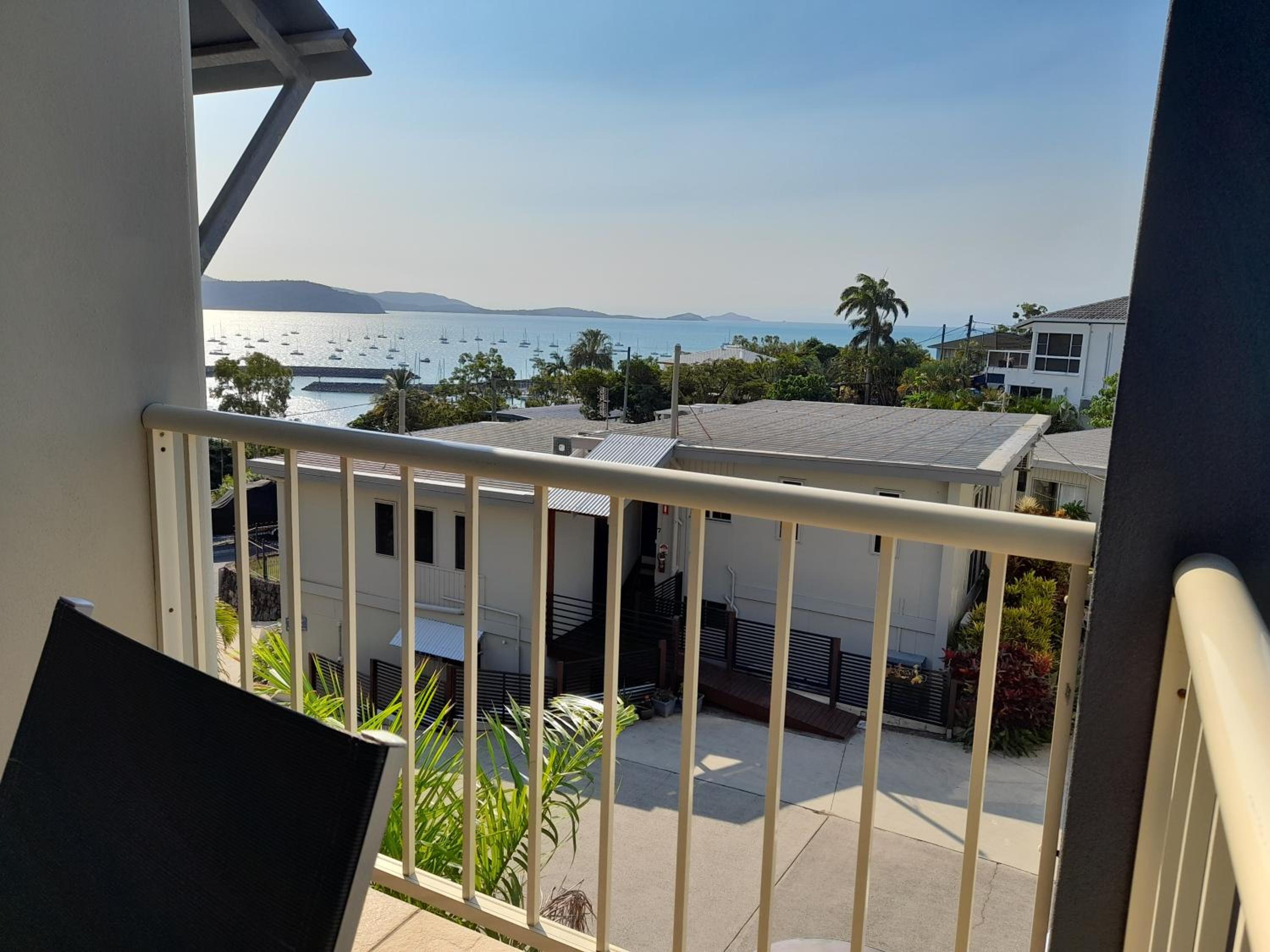 Apatment 7 has large balcony overlooking the Whitsundays. Beautiful sunsets.