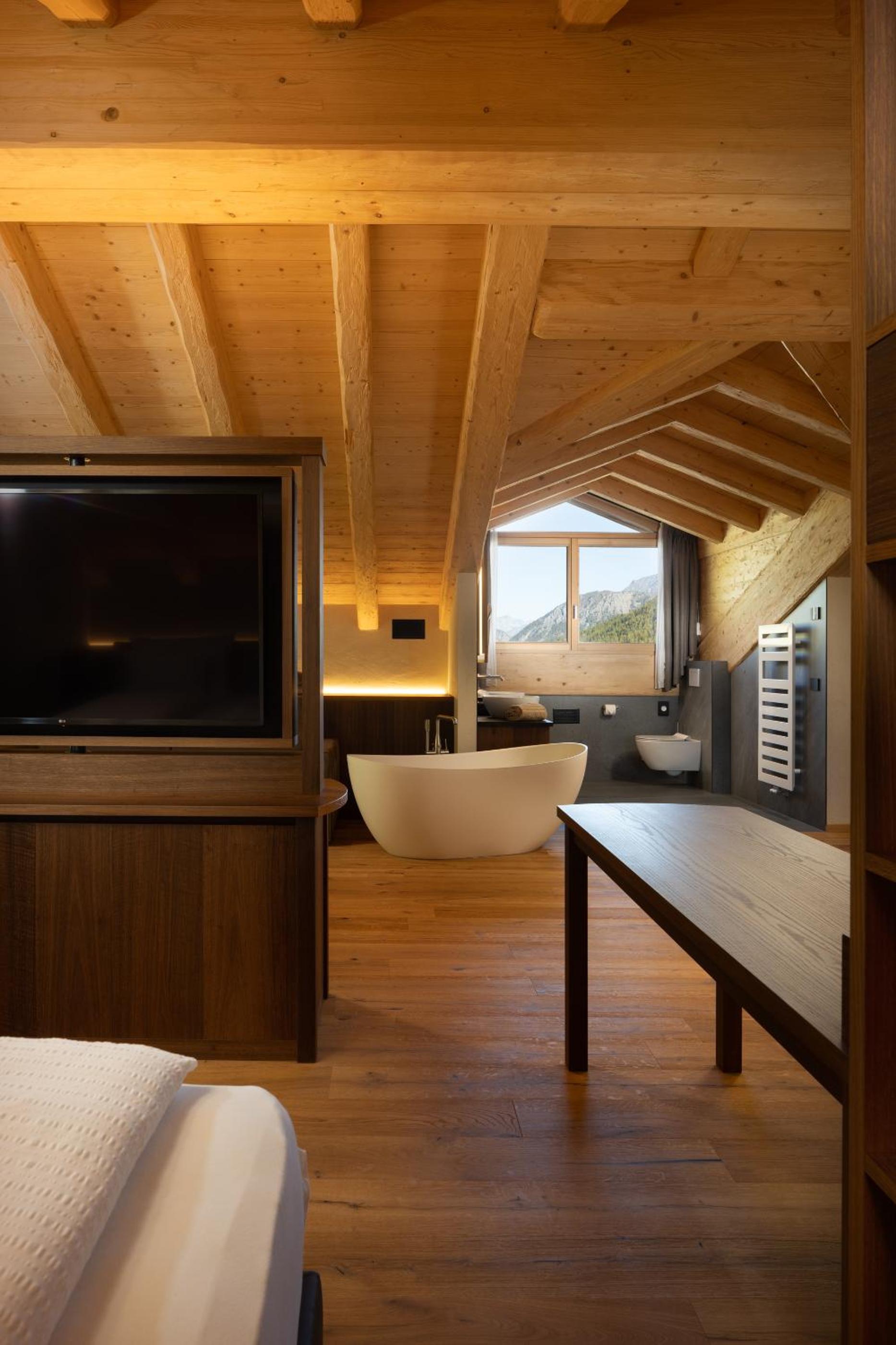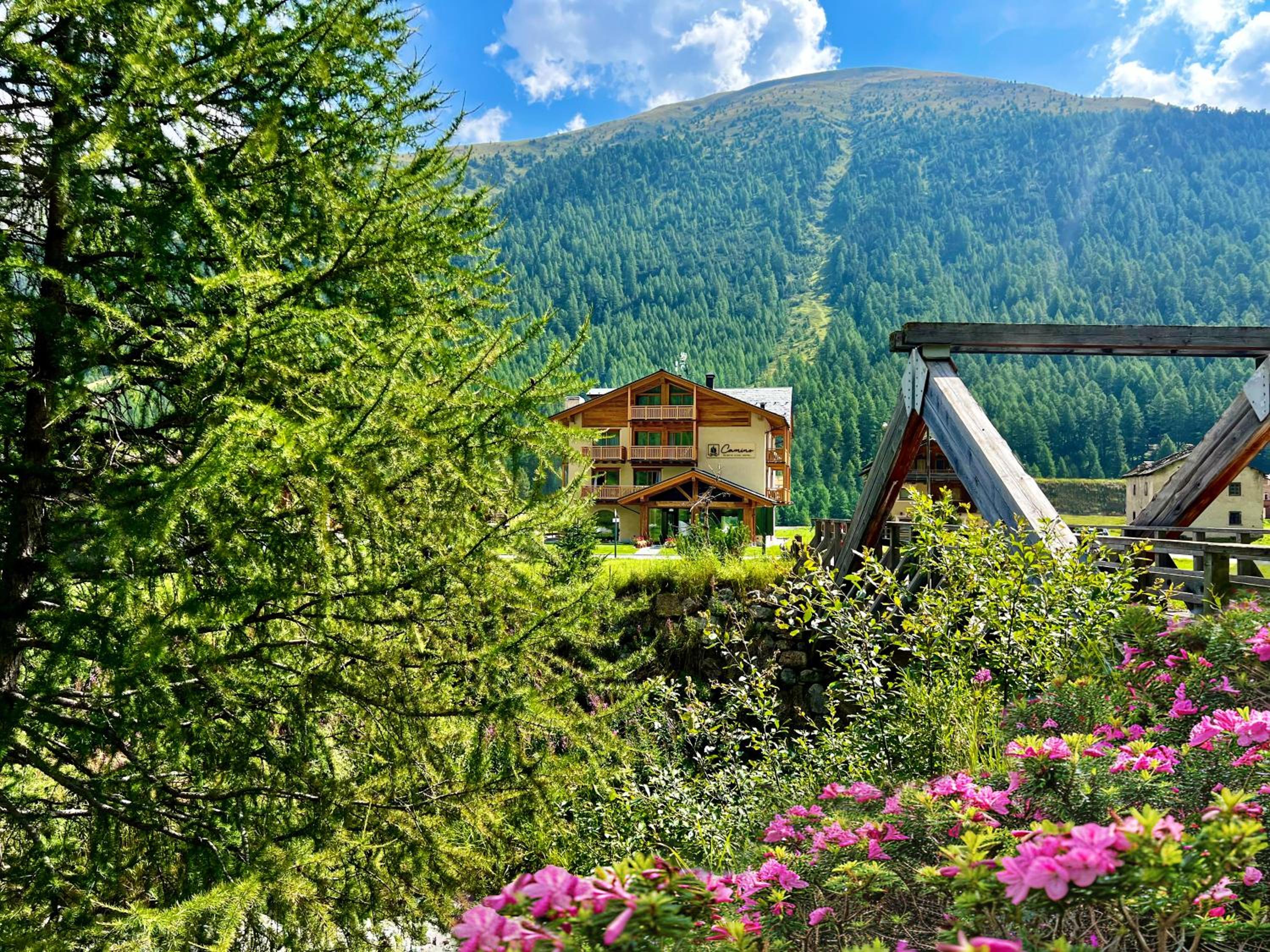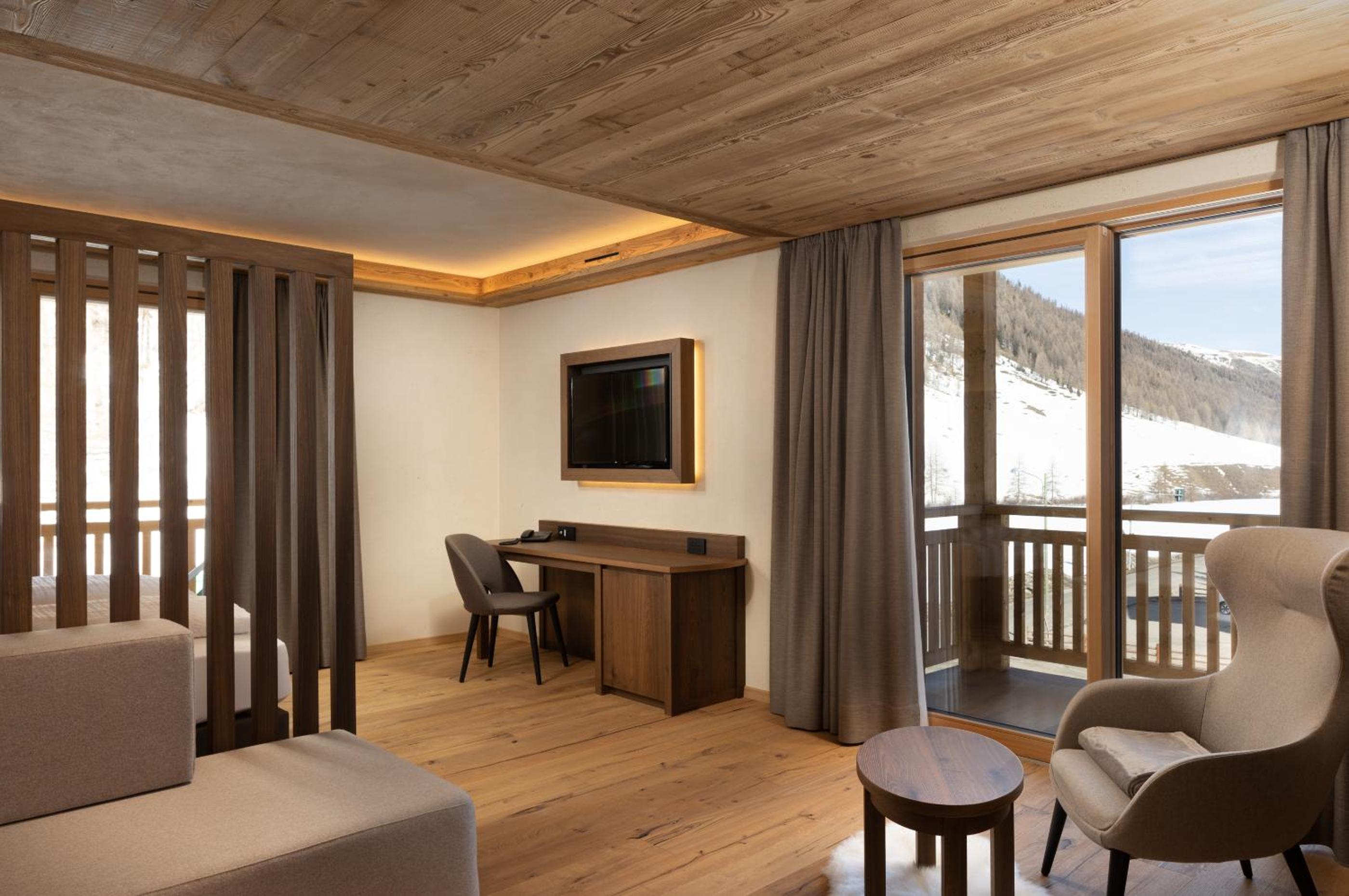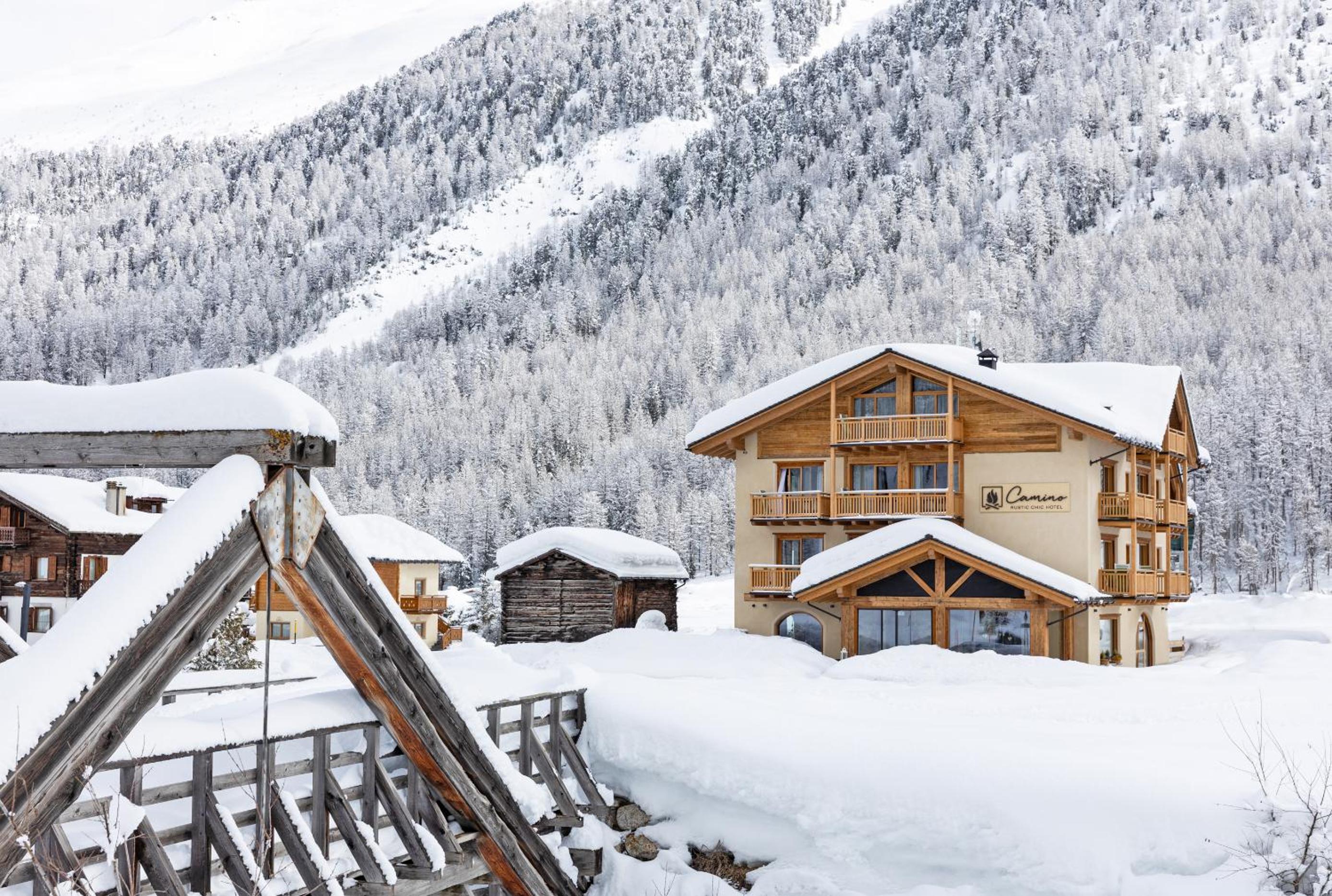 Discover the charm of Camino Rustic Chic Hotel in Livigno, offering elegant 4-star accommodation with breathtaking mountain views. Each room is equipped with modern amenities including a flat-screen TV, minibar, and a private bathroom for a comfortable stay.
