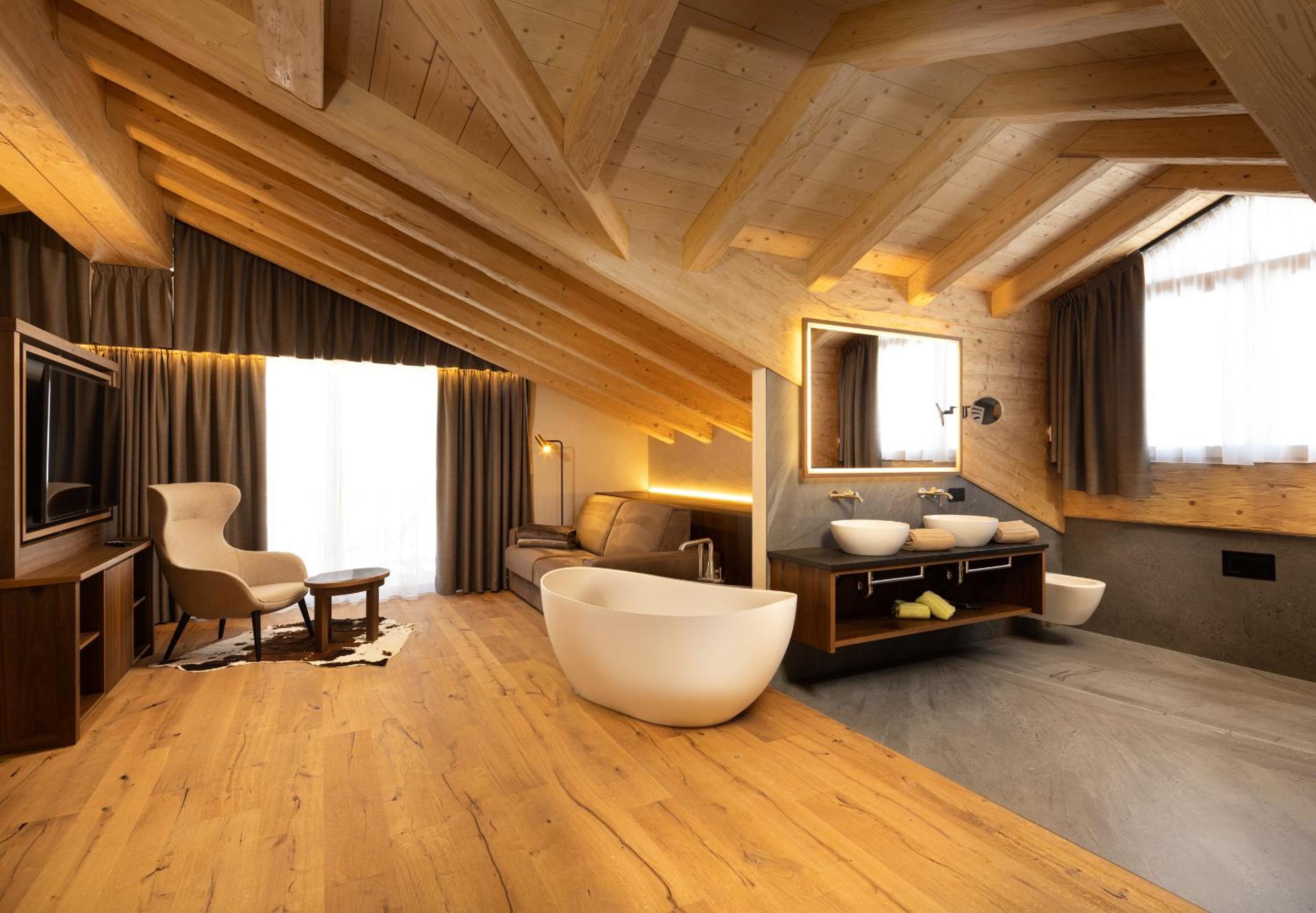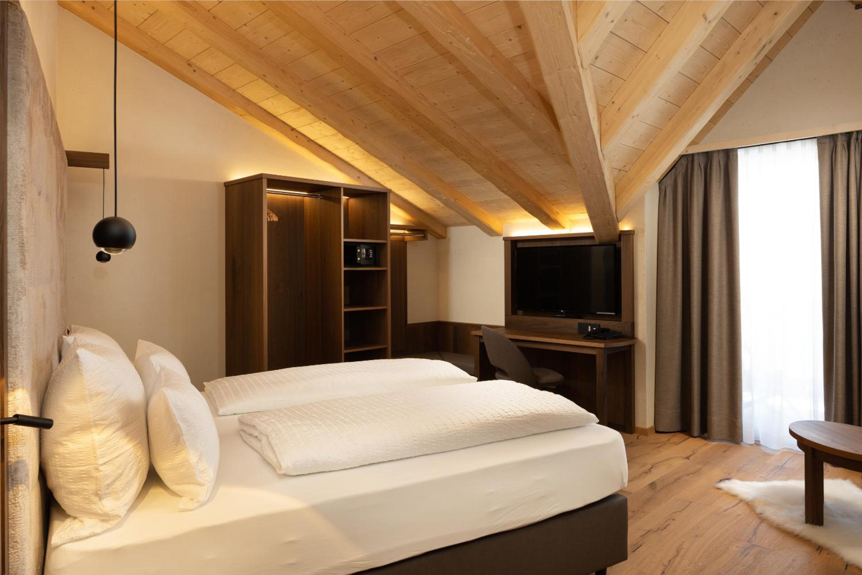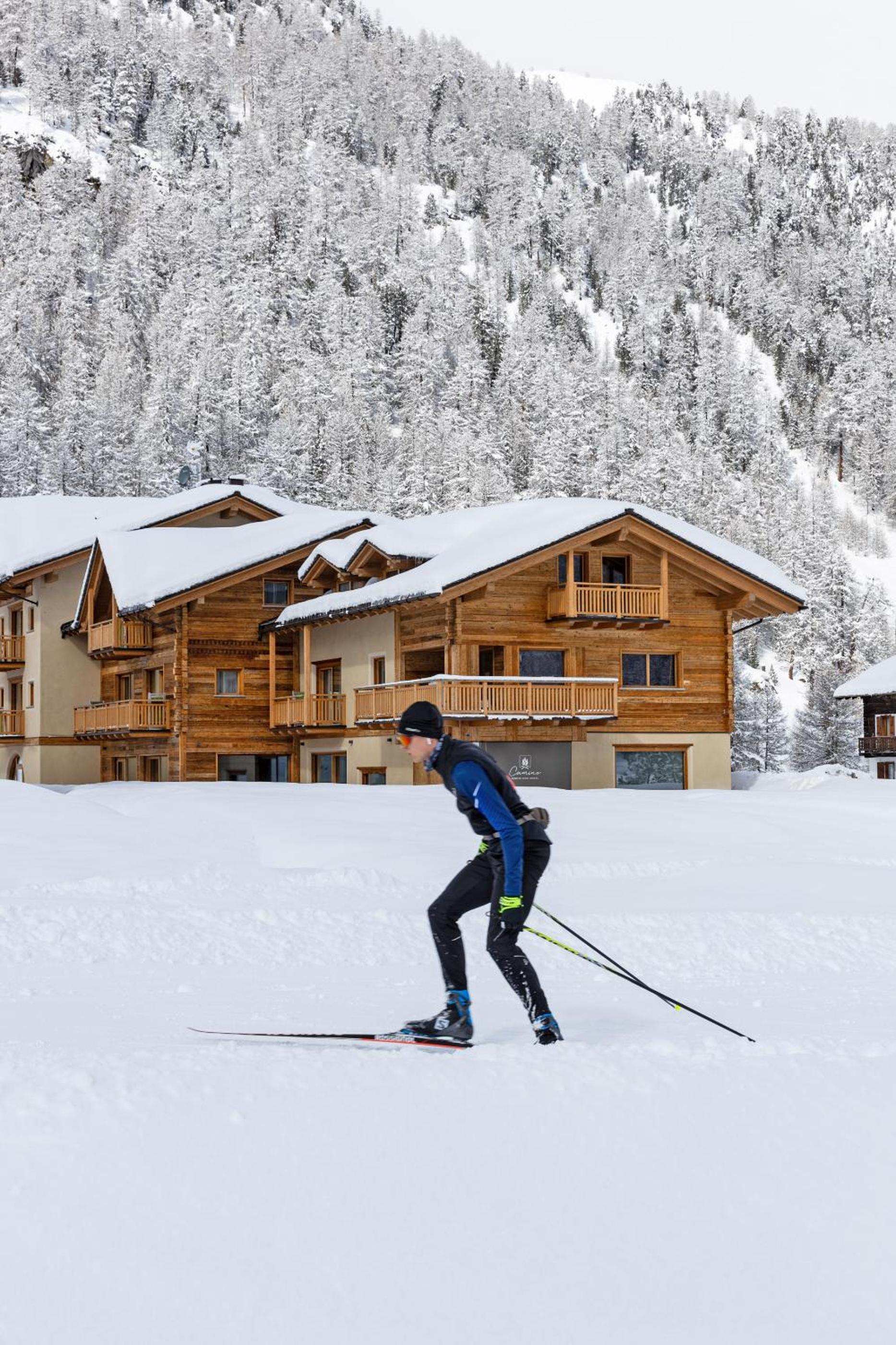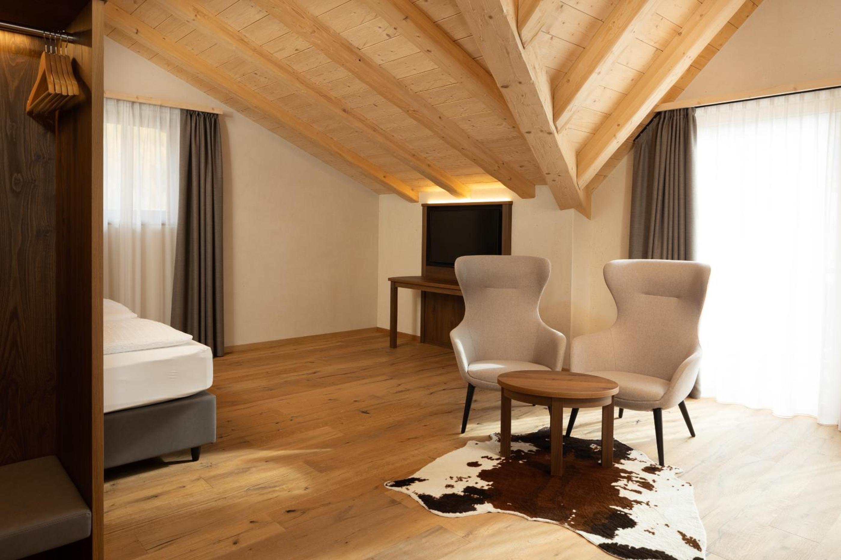 Discover the charm of Camino Rustic Chic Hotel in Livigno, offering elegant 4-star accommodation with breathtaking mountain views. Each room is equipped with modern amenities including a flat-screen TV, minibar, and a private bathroom for a comfortable stay.